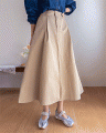 Biella A字褶裥后背松紧带口袋半身裙 [尺码:F (55~66.5)]