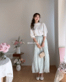 어깨 쪽에는 셔링을 잡아 볼륨을 주고,