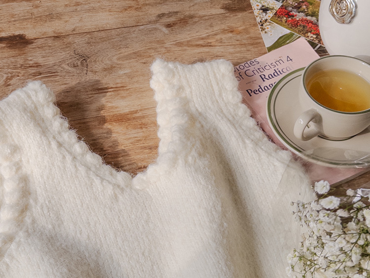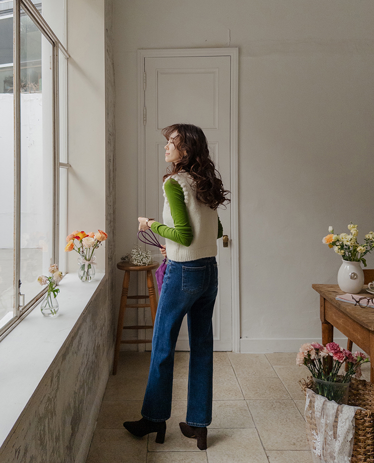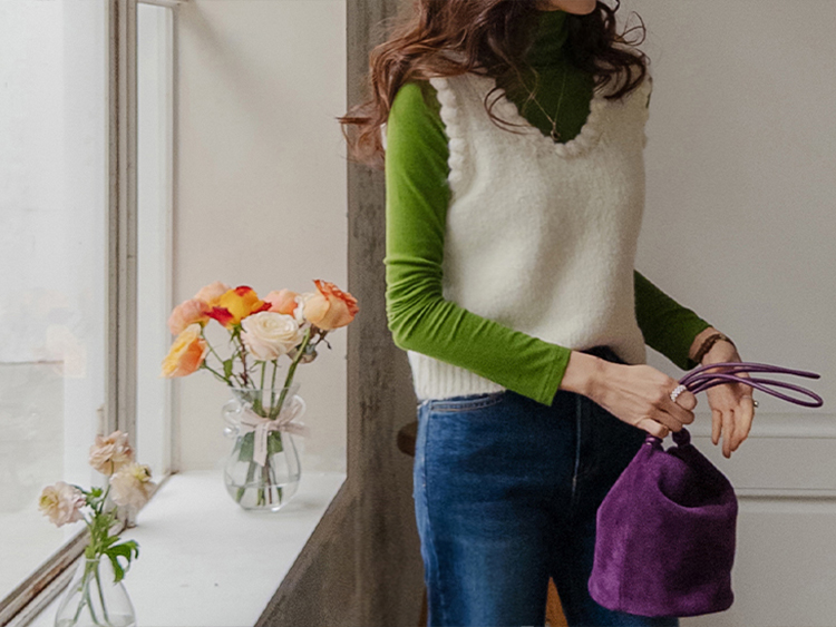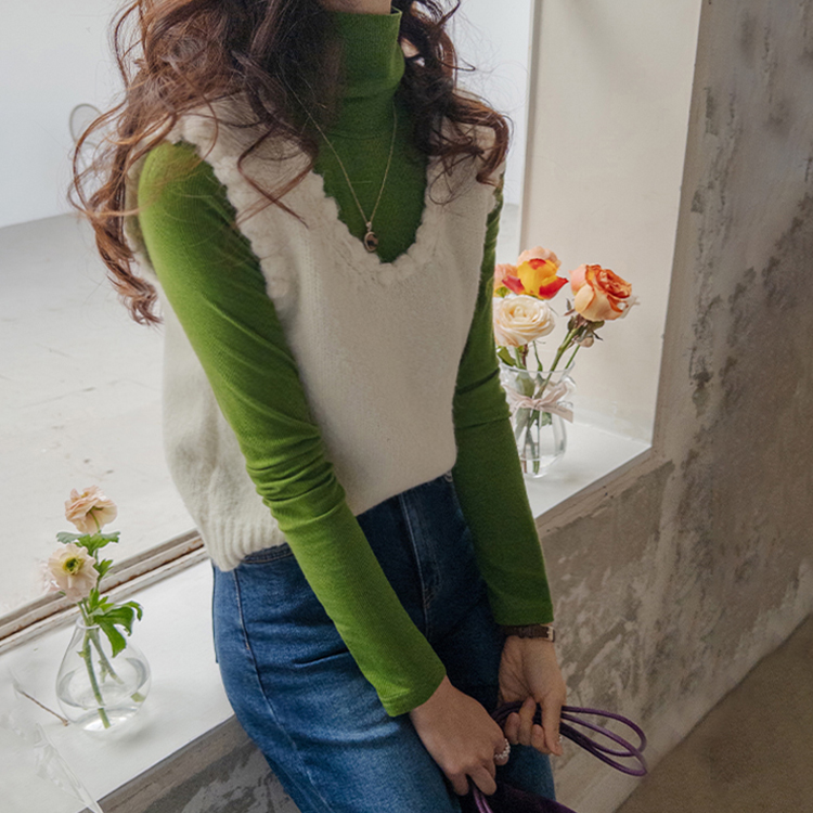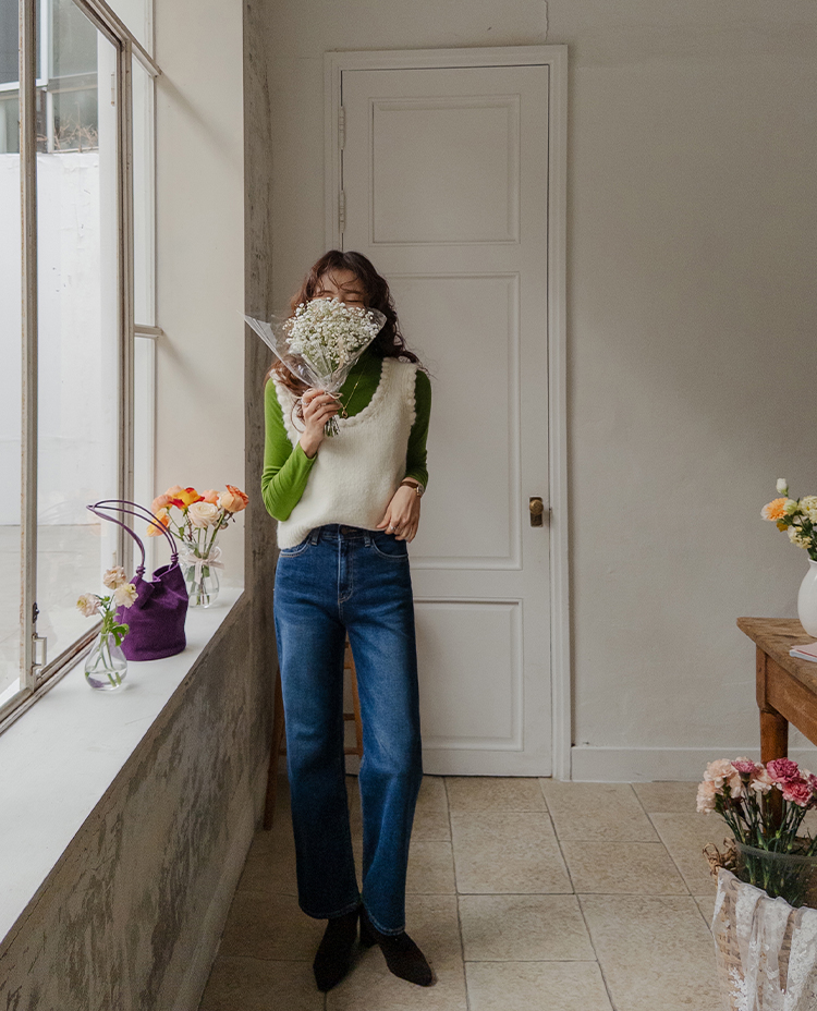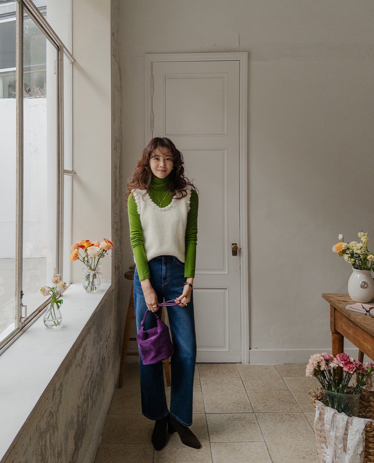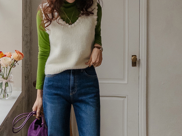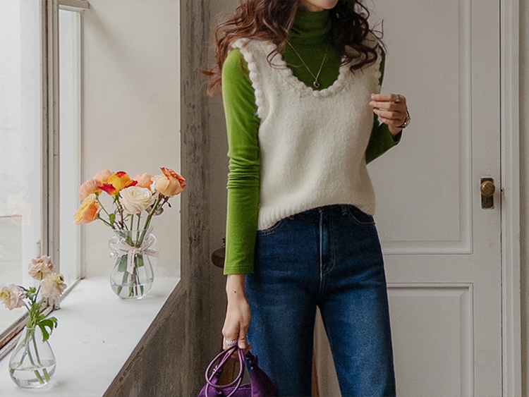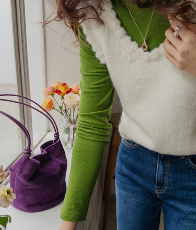 몽글몽글~ 넥&암홀부분에 마치 구름같이 넘 귀엽고 사랑스런 무드의 입체적인 물결쉐입이 포인트로 예쁜 니트 베스트 보여드려요! 요 니트는 램스울&알파카 혼방 원단으로 특유의 헤어감도 느껴지구요~ 끝단 디테일이 넘 예쁘고 유니크해서 레이어드코디로 정말 추천드리고 싶은 아이에요ㅎㅎ 넥라인이 살짝 내려와서 기본 티셔츠 안에 톡! 입어주시면 꾸민듯 자연스러운 무드로 연출되구요 모델언니처럼 롱한 길이감의 목걸이와 코디해도 넘 예쁜..♥ 폭닥한 터치감으로 겨울시즌에 찰떡으로 어울리구요 유니크한 디자인으로 요 베스트 하나로 스타일리쉬한 코디가 가능해서 레이어드템으로 하나쯤 소장하시길 강추드려요*.*