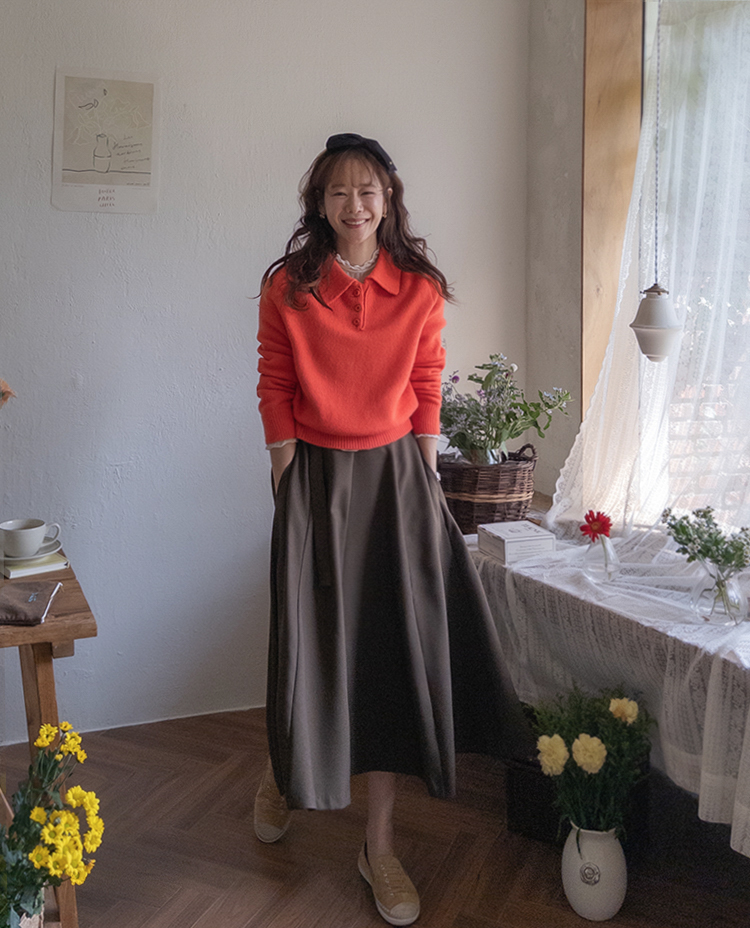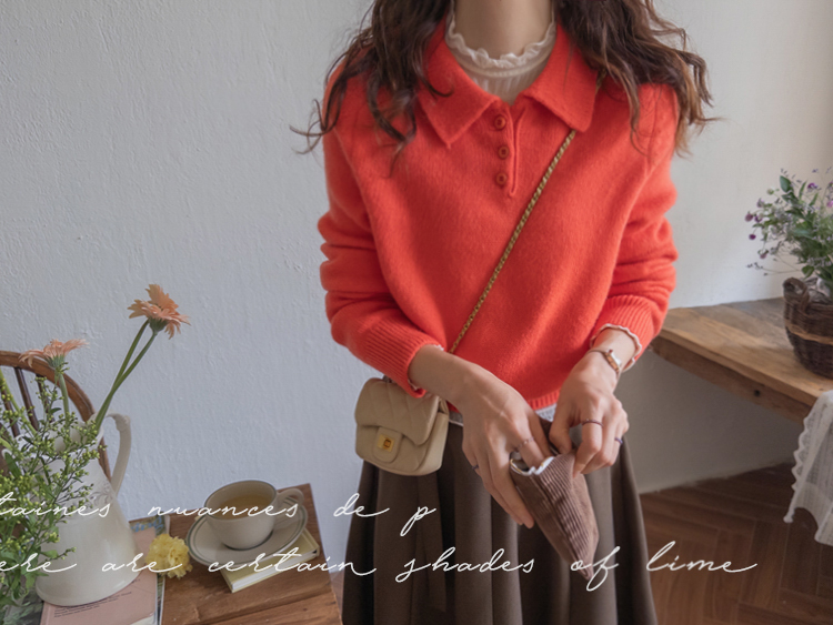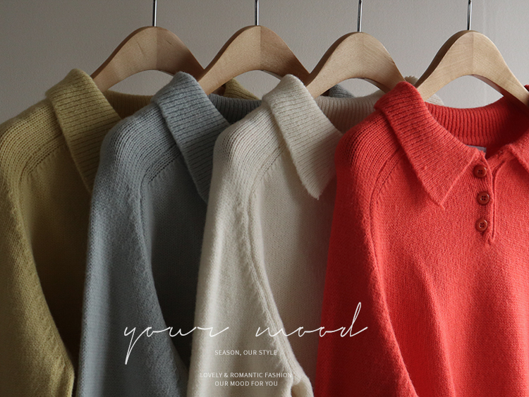 어디에나 잘 어울리는 데일리한 무드의 니트 소개해드려요~ 카라 네크라인에 버튼으로 디테일을 살려 완성도 있는 아웃핏이 완성된답니다! 유연하고 따수운 울 함유 소재로 겨울시즌까지 쭉 즐기기 좋아요! 적당히 루즈한 핏으로 누구나 편하게 입기 좋아 추천드려요~♥