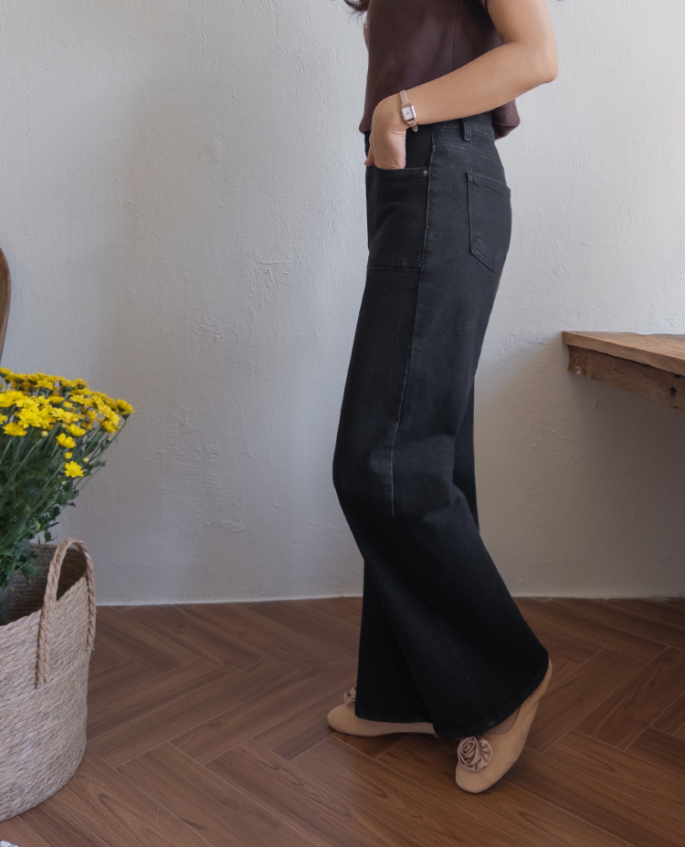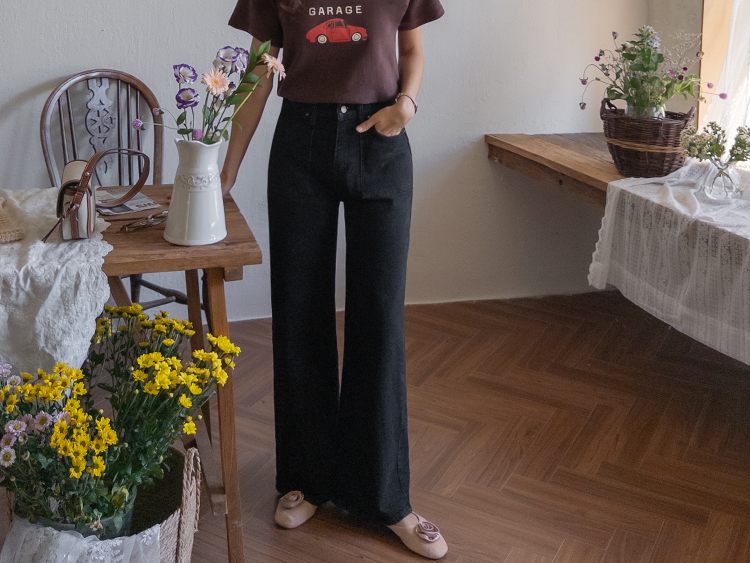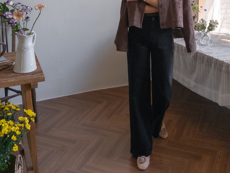 누구나 잘 어울리는 일자 와이드 실루엣의 팬츠 소개드려요~♥ 길고 곧게 떨어지는 실루엣으로 다리가 정말 길어보이는 매직 팬츠 -!! 사각 포켓으로 흔하지 않게 유니크한 포인트로 바지 하나만으로 은근한 포인트 완성 :) 쭉-쭉 늘어나는 사방텐션으로 하루종일 입어도 편안함 *.* 나만 아는 편안함, 히든밴딩까지!! 굿초이스 해주세요~♥