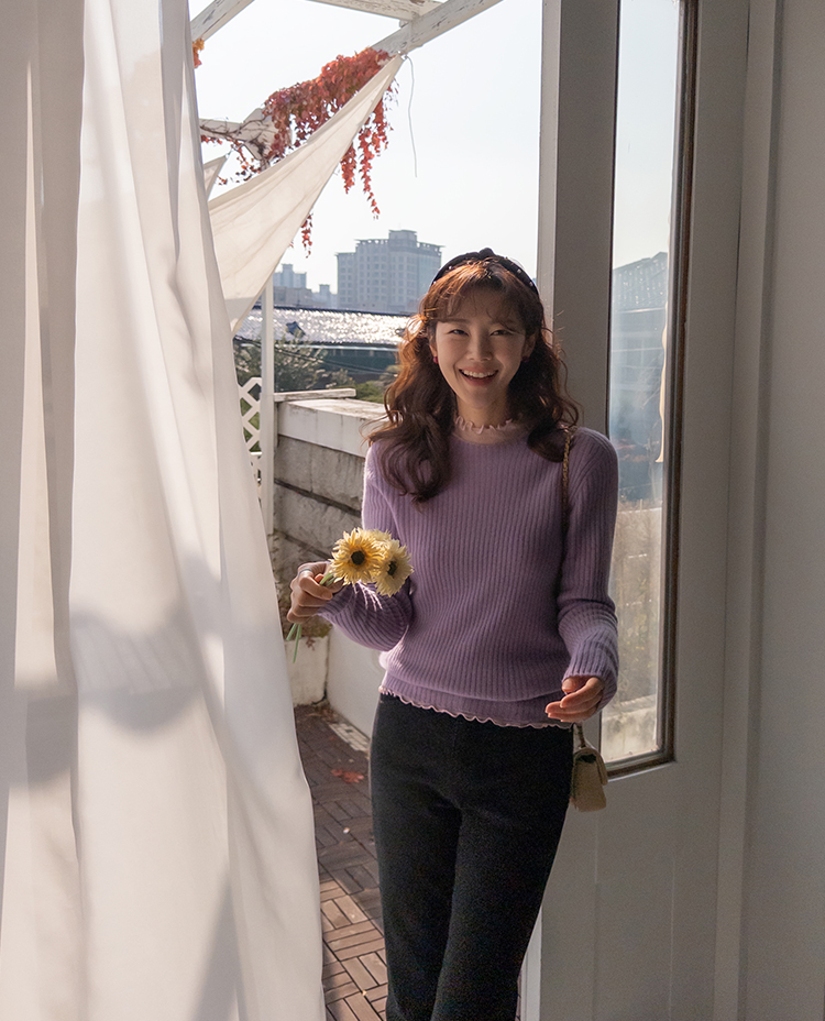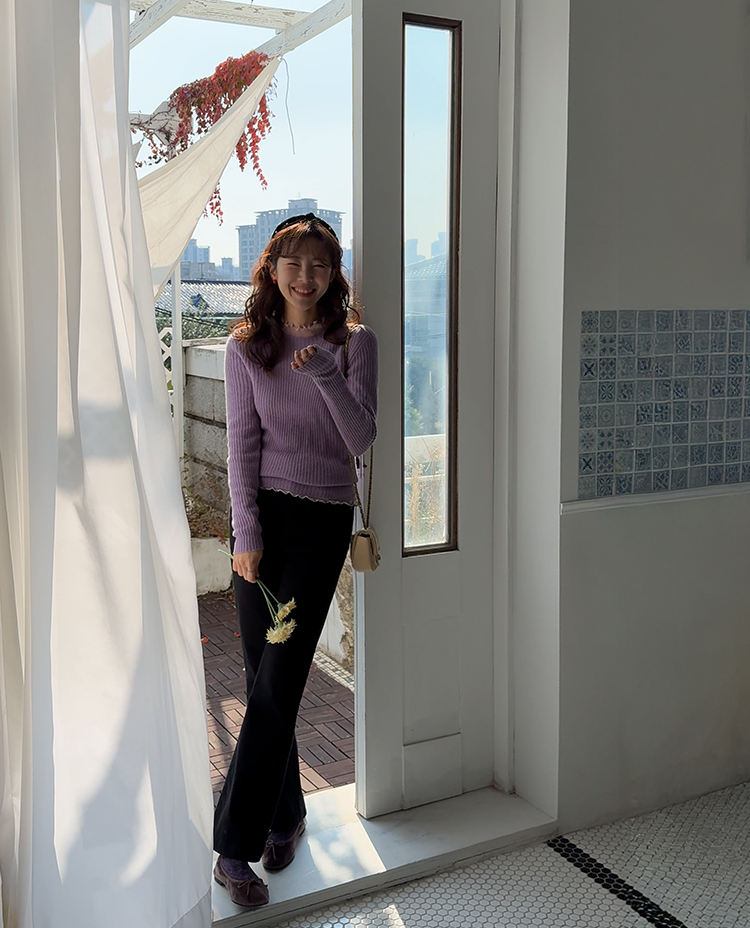 프릴이 더해진 타이가 함께 SET-!! 페미닌한 무드와 러블리가 함께 느껴지는 니트 소개드려요^^ 베이직한 디자인에 프릴 타이로 여성스러운 분위기 UP-! 보트넥 스타일로 부담스럽지 않게 넓은 넥라인이 쇄골라인을 자연스럽게 보여주어 더욱 여리~여리해보이는 포인트! 안정감있게 잡아주는 시보리와 밑단 포인트로 베이직한 디자인이지만 심심하지 않고 은은~하게 포인트를 주어요 :) 여유있는 품으로 미운 군살들을 다 가려주는 고마운 니트! 굿초이스해주세요~♥