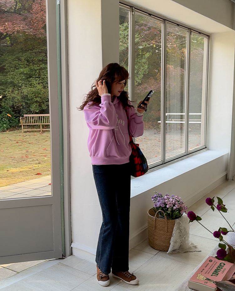 부드런 쿠션쭈리 원단에 프론트 벨벳 터치감의 레터링이 더해져서 겨울시즌 데일리로 활용도 높은 후드티 보여드려요~! 요런 후드티셔츠는 하나 소장하시면 데일리는 물론 꾸안꾸룩으로 다양하게 활용도가 높은데요 후드까지 더해져서 더욱 귀여우면서 캐주얼한 무드로 매일 휘뚜루 마뚜루 착용하기 좋은 아이템이에요:) 끝단은 시보리로 안정감있는 아웃핏으로 연출되구요 요 후드티의 포인트! 바로 벨벳 터치감의 패치를 더해주어서 지금시즌에 즐기기 좋답니다ㅎㅎ 하나 소장하시면 다양한 룩에 이지하게 매치하기 좋아서 사심담아 추천드리니 눈여겨 봐주세요~!