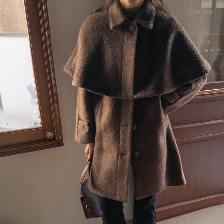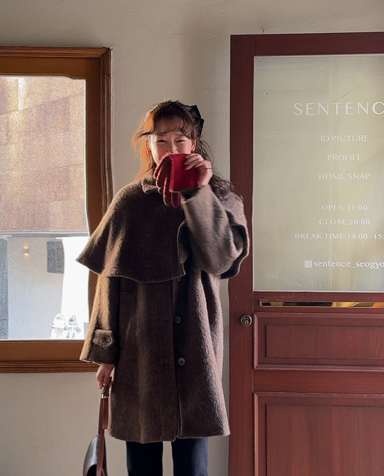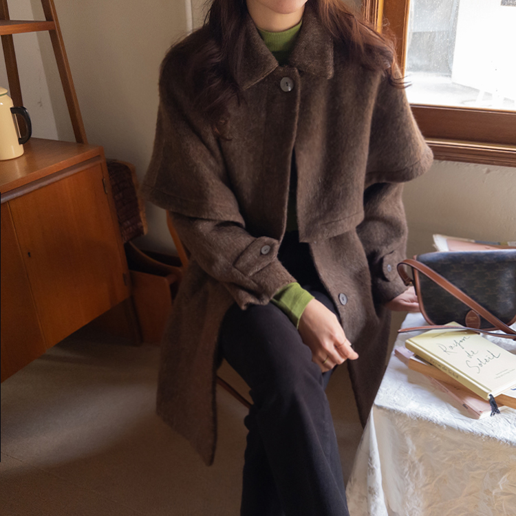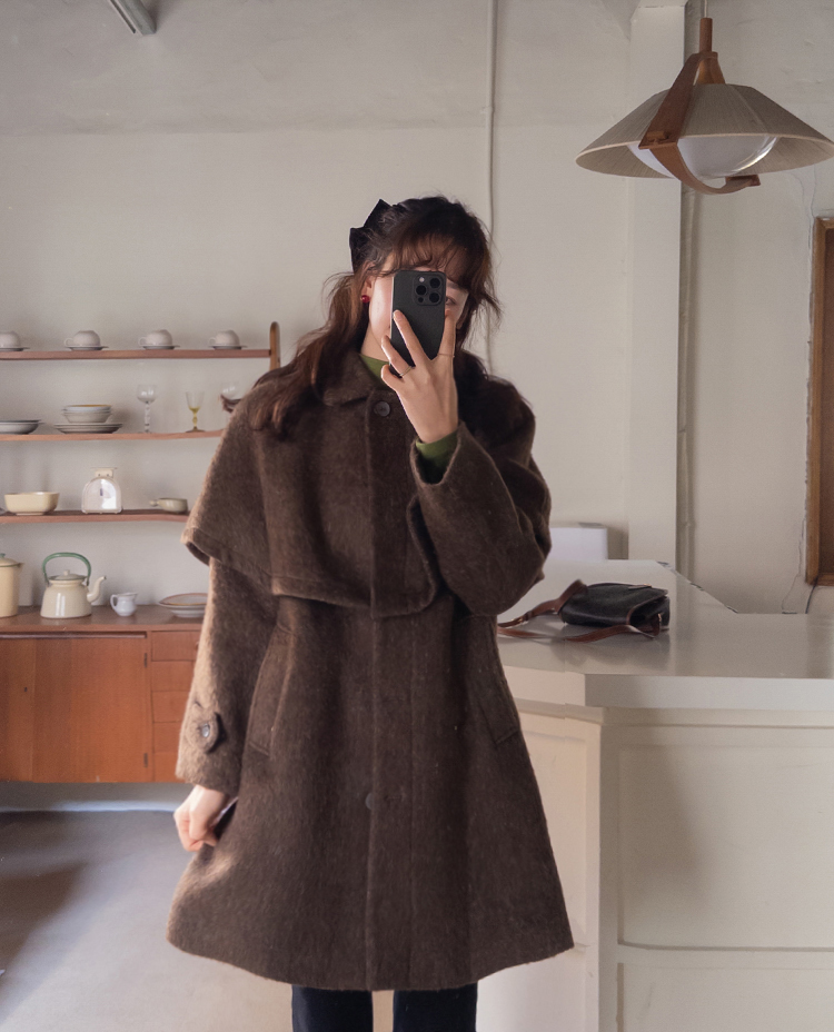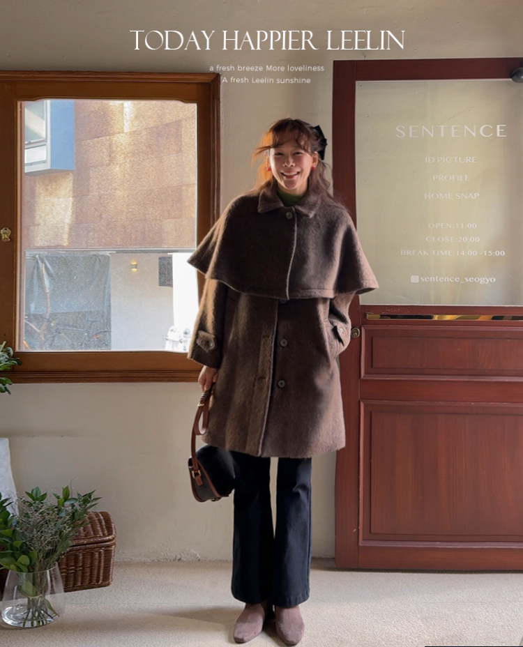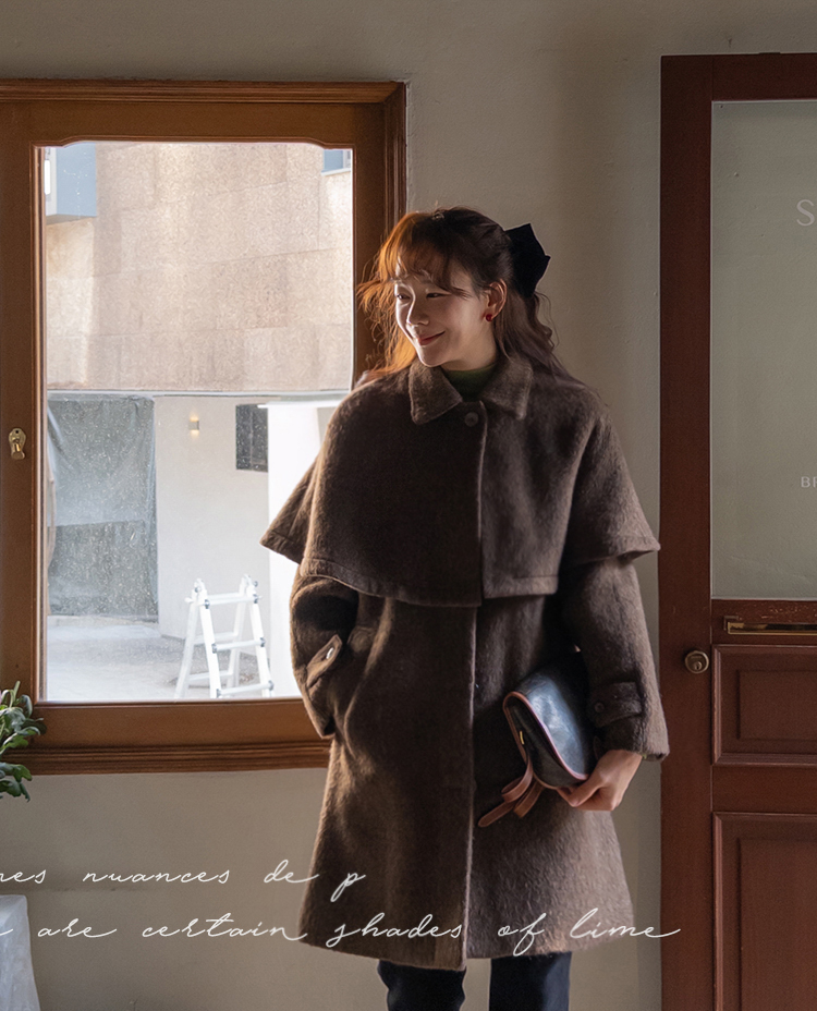 겨울시즌에 하나쯤은 꼬옥 소장해야할 아이템! 바로 망토인데요 ㅎㅎ 리린에서 기획한 넘 예쁜 케이프 소개할게요~! 요 케이프, 헤어감있는 소재의 울 50% 블랜딩 원단으로 원단부터 정말 예쁜데요 컬러가 믹스되어 살짝 보카시 느낌의 컬러로 색상부터 매력있는건 물론이구요 헤어리한 소재감이라 터치감도 부드러워서 착용하시면 겨울느낌 낭낭~한 그런 아이템이랍니다ㅎㅎ 어깨라인을 따라 자연스레 퍼지는 플레어 디자인으로 여성스러운 실루엣으로 연출되구요 티셔츠나 니트는 물론이구요 아우터 위에 톡! 걸쳐주셔도 룩에 확실한 포인트가 되어줄 아이템이라 꼬옥~추천드릴게요-♡