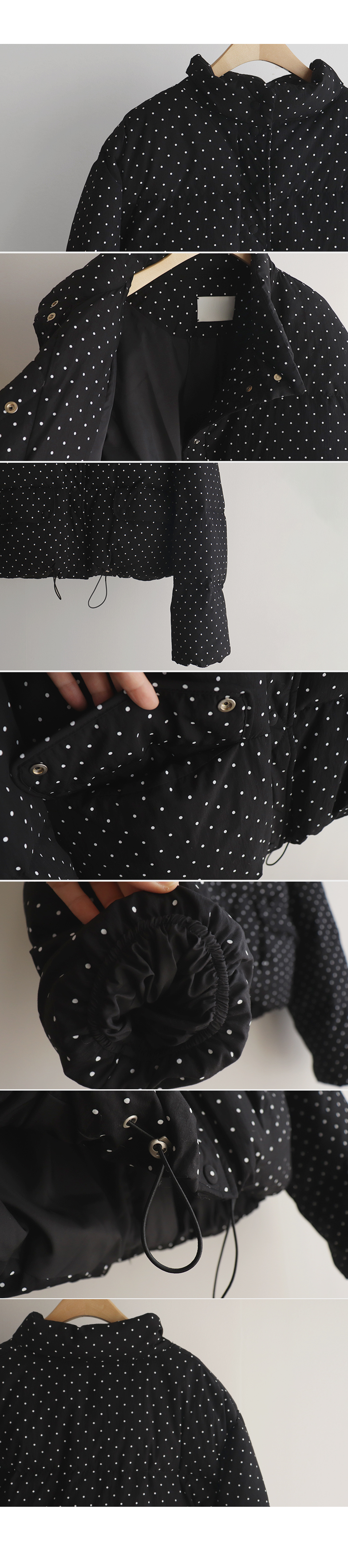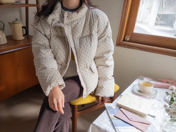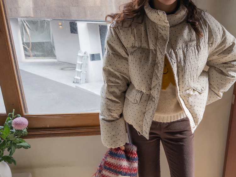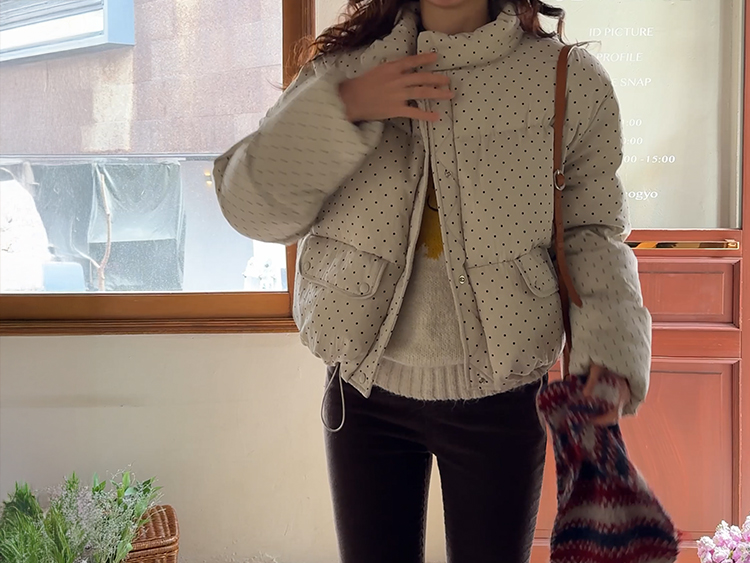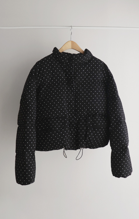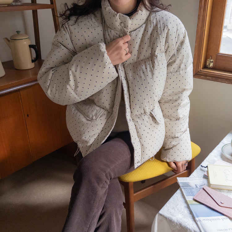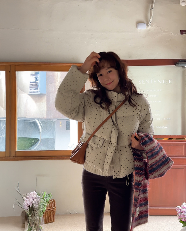 귀여운 도트가 콕콕~♥박혀있어 입는 순간 러블리함 UP!! 리린만의 러블리 감성을 가득~ 담은 도트패딩이에요 :) 트렌디한 숏기장감과 귀여운 도트 패턴으로 겨울에도 발랄하고 사랑스러운 코디가 가능해요~♡ 단조로운 이너에 이 패딩 하나만 걸쳐주면 캐주얼한 꾸안꾸룩 완성!! 밑단 스트링으로 체형에 맞는 조절과 함께 보온까지 챙겼구요~ 짱짱한 소매 밴딩으로 흘러내릴 걱정 없는 실용성까지!! 숏패딩은 잘못 입으면 둔해보이고 투박해보이기 쉬운데 보온성은 물론 톡톡 튀는 스타일링을 원한다면 요 아이템이 딱이에요~>.<