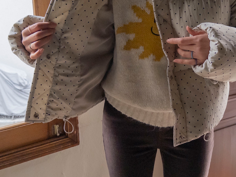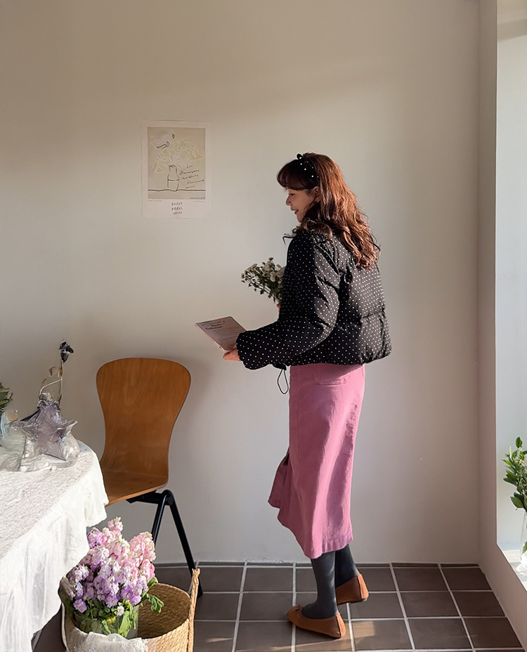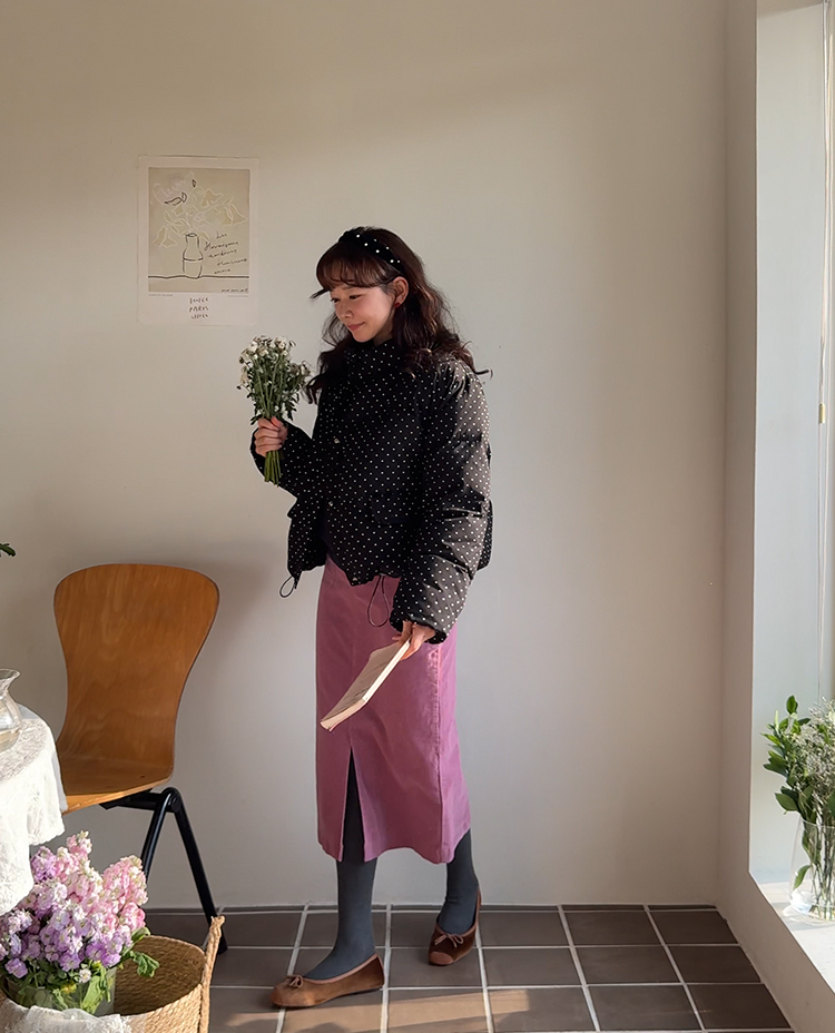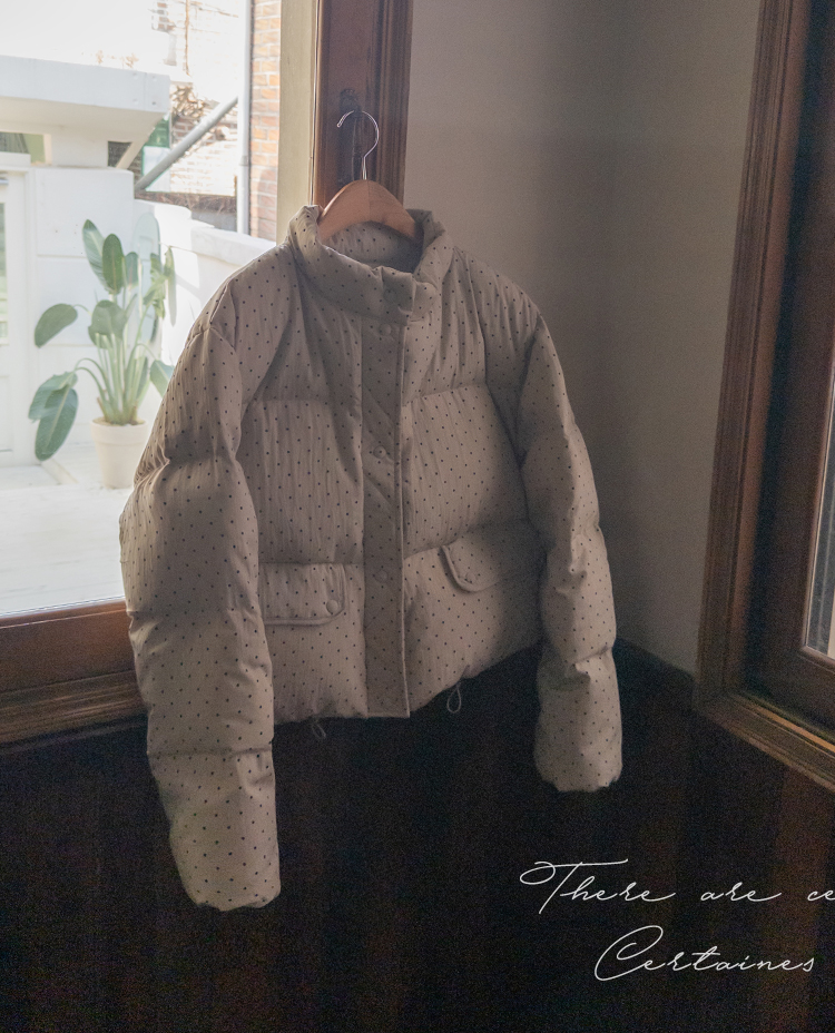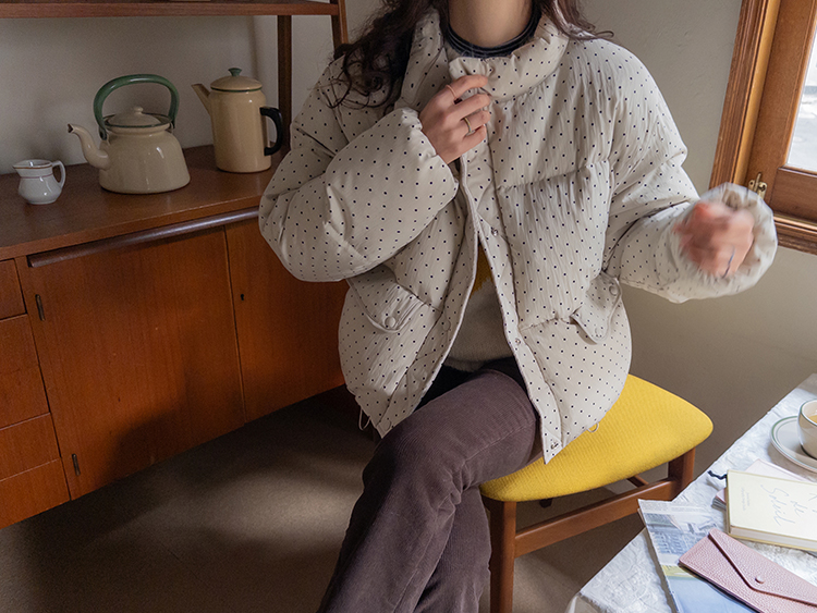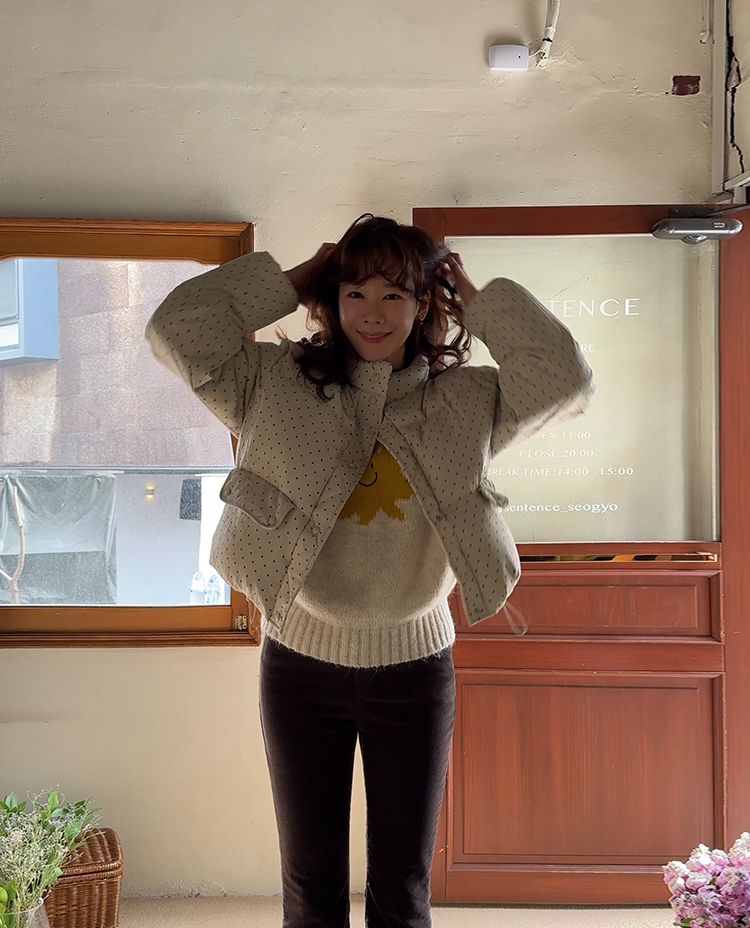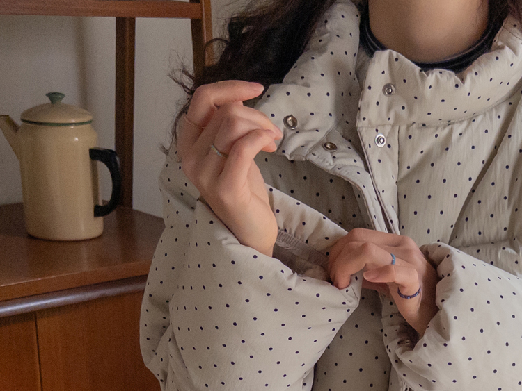 귀여운 도트가 콕콕~♥박혀있어 입는 순간 러블리함 UP!! 리린만의 러블리 감성을 가득~ 담은 도트패딩이에요 :) 트렌디한 숏기장감과 귀여운 도트 패턴으로 겨울에도 발랄하고 사랑스러운 코디가 가능해요~♡ 단조로운 이너에 이 패딩 하나만 걸쳐주면 캐주얼한 꾸안꾸룩 완성!! 밑단 스트링으로 체형에 맞는 조절과 함께 보온까지 챙겼구요~ 짱짱한 소매 밴딩으로 흘러내릴 걱정 없는 실용성까지!! 숏패딩은 잘못 입으면 둔해보이고 투박해보이기 쉬운데 보온성은 물론 톡톡 튀는 스타일링을 원한다면 요 아이템이 딱이에요~>.<