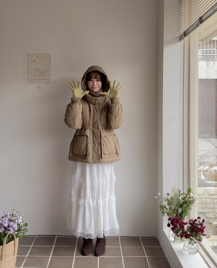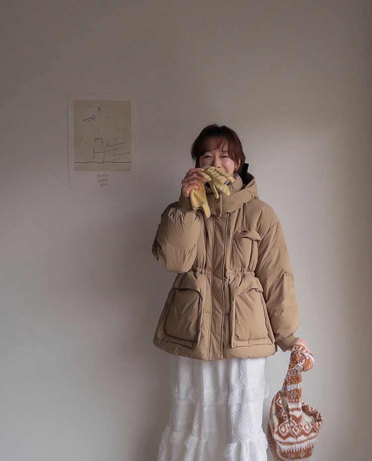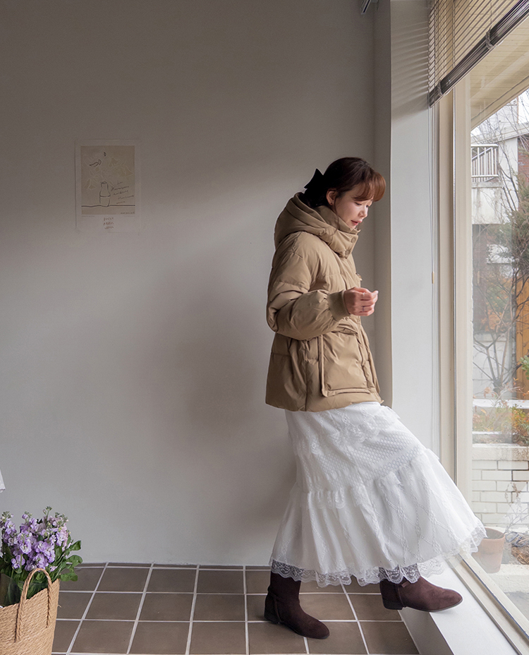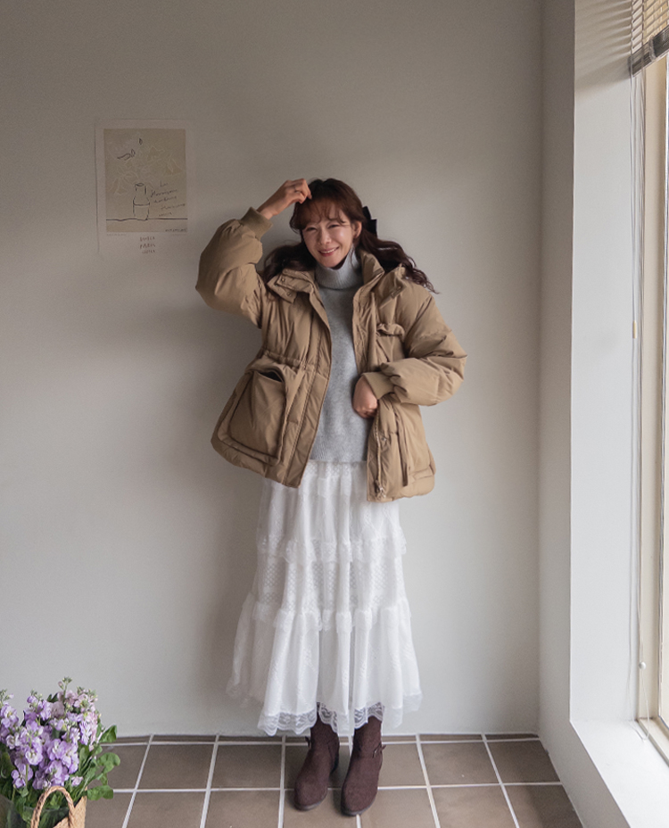 오리털이 빵빵!하게 들어가 한겨울 한파도 끄떡없는 패딩이에요 :) 오리털 쪼금~넣고 과장하는 게 아니라 요 아이템은 오리털이 100% 들어간 찐!!오리털 패딩이랍니다*.* 올 겨울 추위 걱정 날려드릴 아이템이에요~☃️💕 하이넥 디자인과 이중버튼 잠금 디테일로 온기가 빠져나갈 틈이 없답니다♨️ 숏기장이지만 엉덩이를 살짝 덮는 기장감으로 너무 길어 투박해보이지 않고 스타일리쉬 하답니다^.^ 특히, 허리 스트링 조절이 가능하여 패딩이지만 더욱 날씬한 실루엣으로 여성스러운 분위기가 물씬 살아나요~💕 올 겨울 리린에서 강력 추천드리는 아이템이니 굿 초이스 해주세요~♡