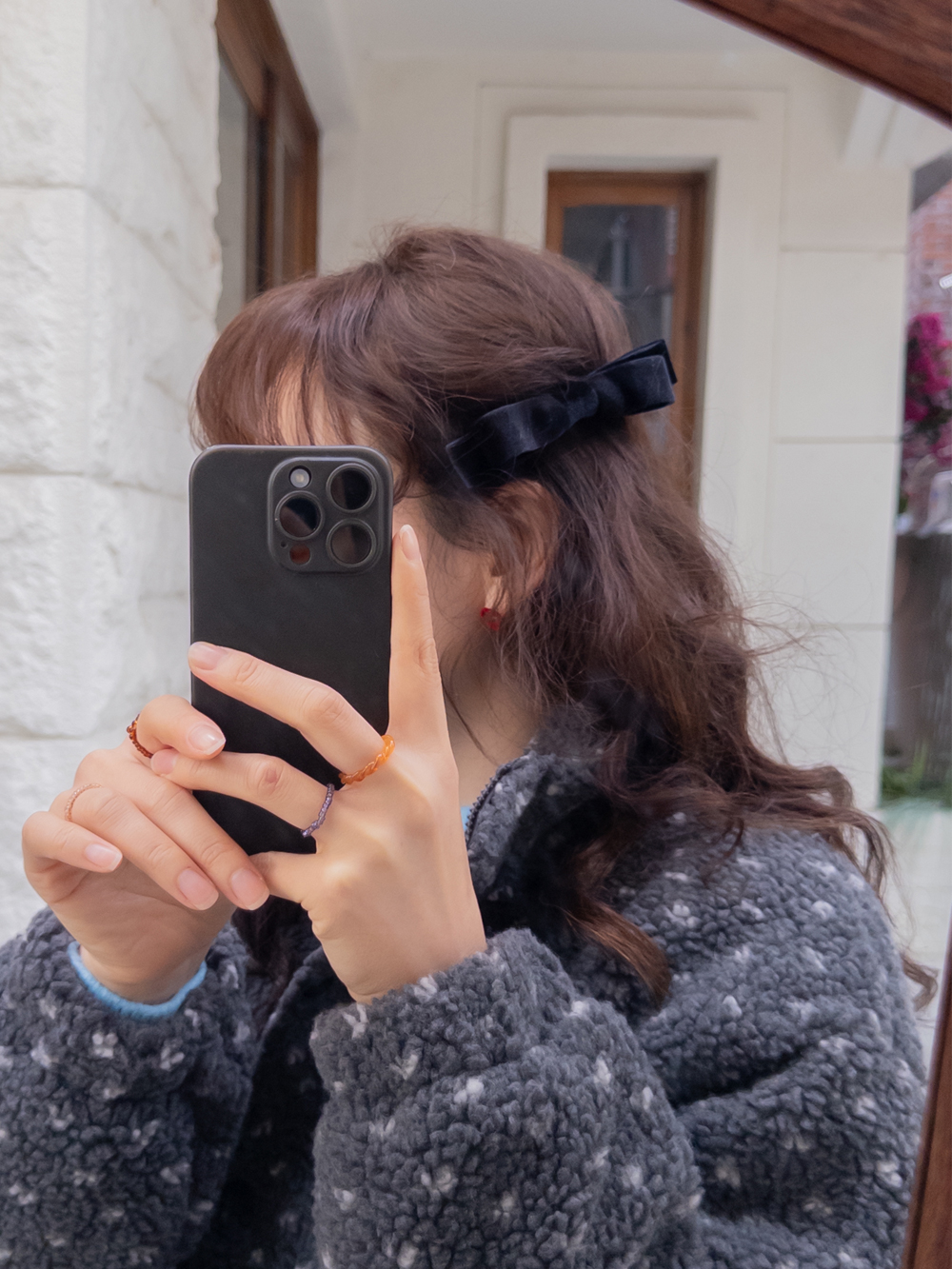 따뜻한 분위기를 만들어주는 부드러운 벨벳 소재로 계절감에 설렘을 가져다 줄 리본 헤어핀 보여 드려요~ 앞머리를 고정하거나 옆 볼륨을 살짝 주기에도 좋고, 적당한 포인트가 되어줄 아이템*.* 착용하는 순간 단아하고 로맨틱한 무드 완성~! 리린과 함께 더 예뻐져요~♥