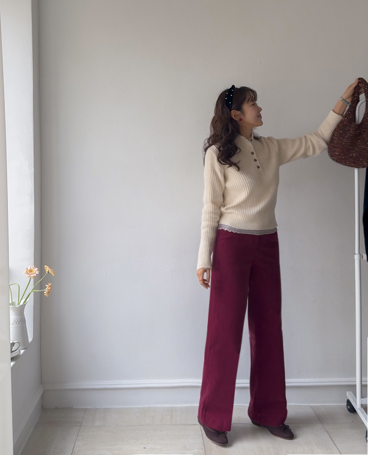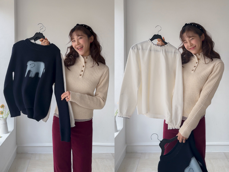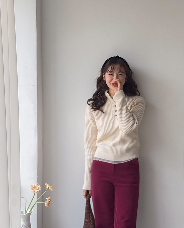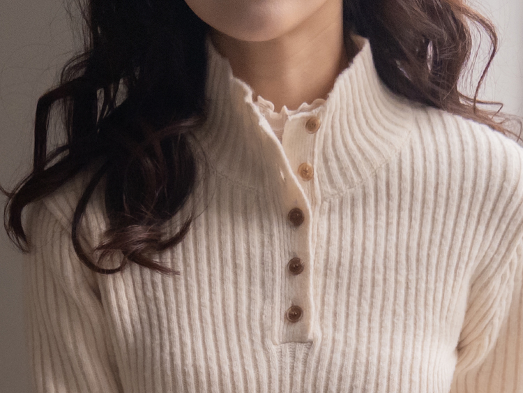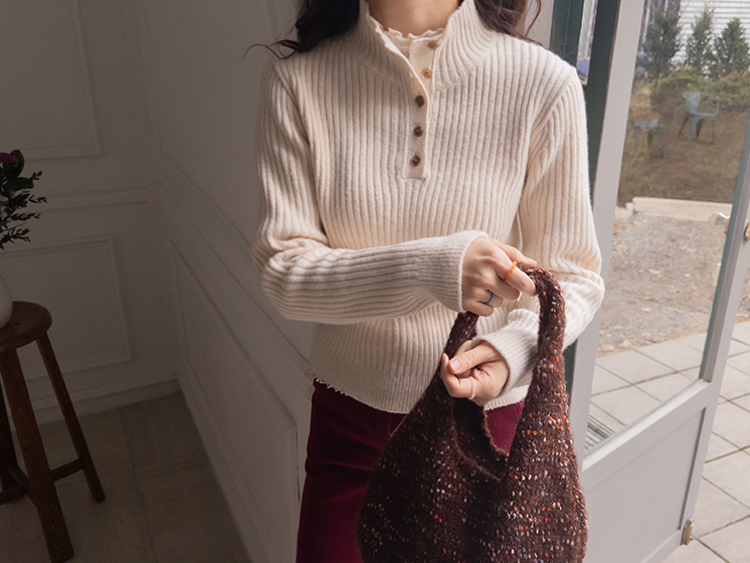 보들~보들한 촉감의 포근함이 느껴지는 울블랜드 니트예요~ 입는 순간 폭닥한 소재로 따뜻함이 느껴지는 겨울 데일리룩 필수템이랍니다^^ 세로 골지 짜임이 바디라인을 슬림하게 정돈해줘 더욱 날씬한 실루엣이 살아나구요~ 목선을 감싸주는 하프 하이넥 디자인으로 하이넥 특유의 답답함 없이 따뜻함과 편안함을 동시에 챙길 수 있답니다!^^ 소매가 살짝 길게 내려와 여리여리한 무드 UP!! 차분하면서도 포근한 감성 가득~ 느껴지는 요 아이템 굿 초이스 해주세요~♥