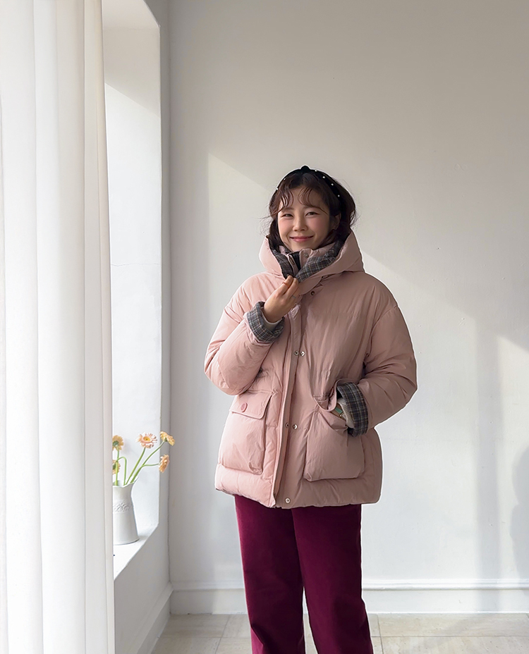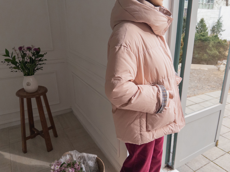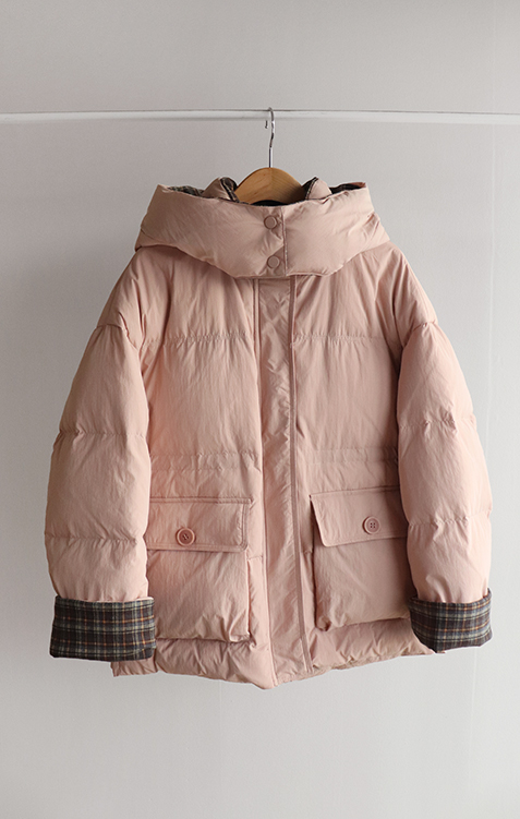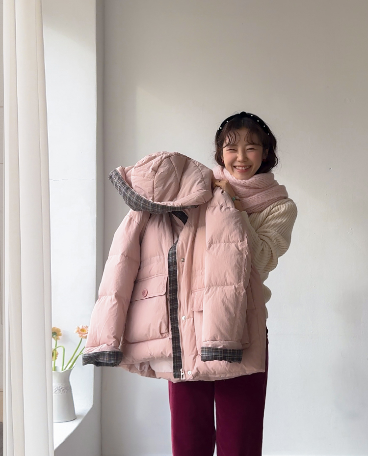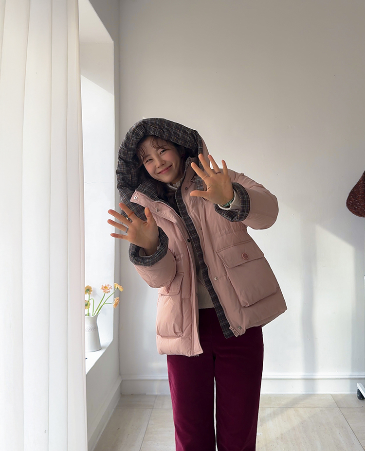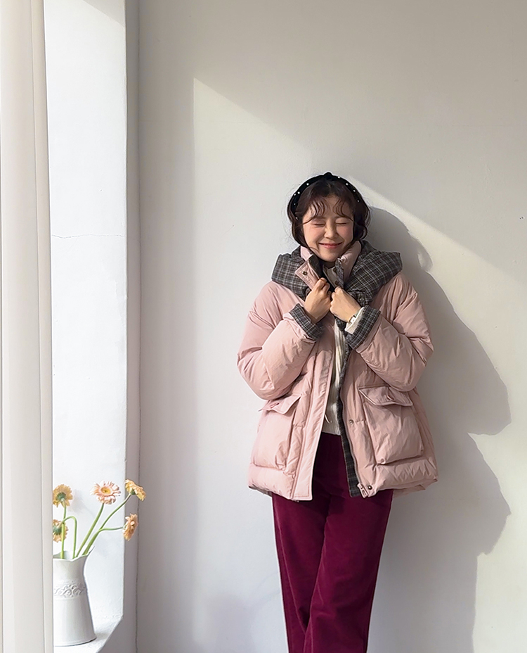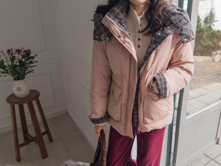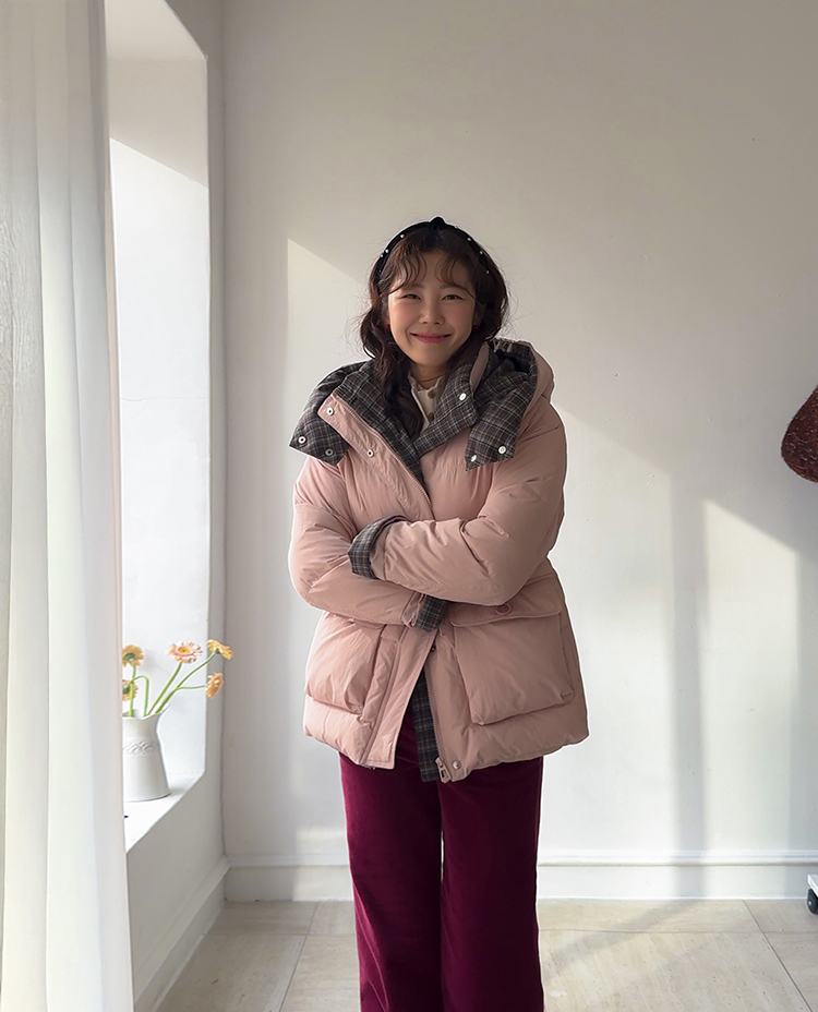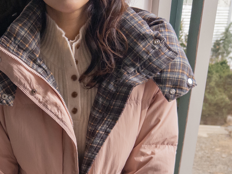 소매, 후드, 안감에 들어간 체크 배색이 톡톡한 귀여움을 더해줘서