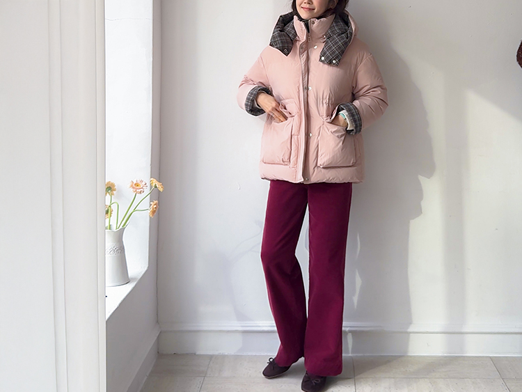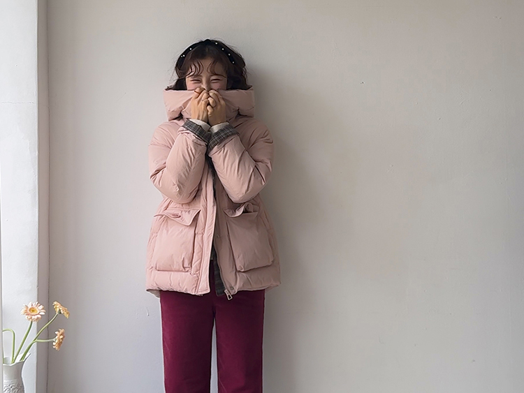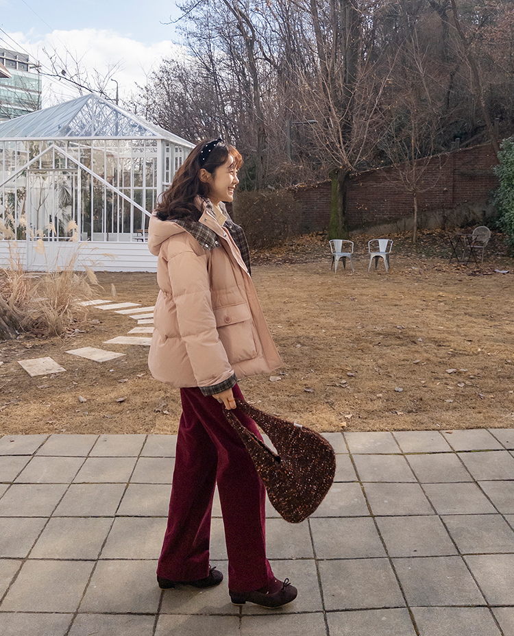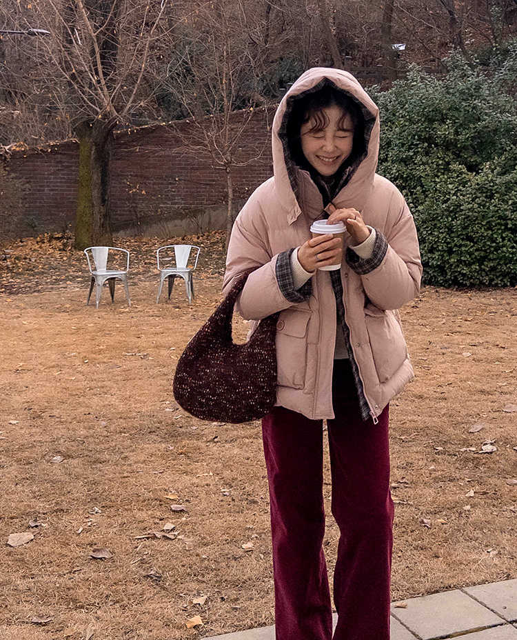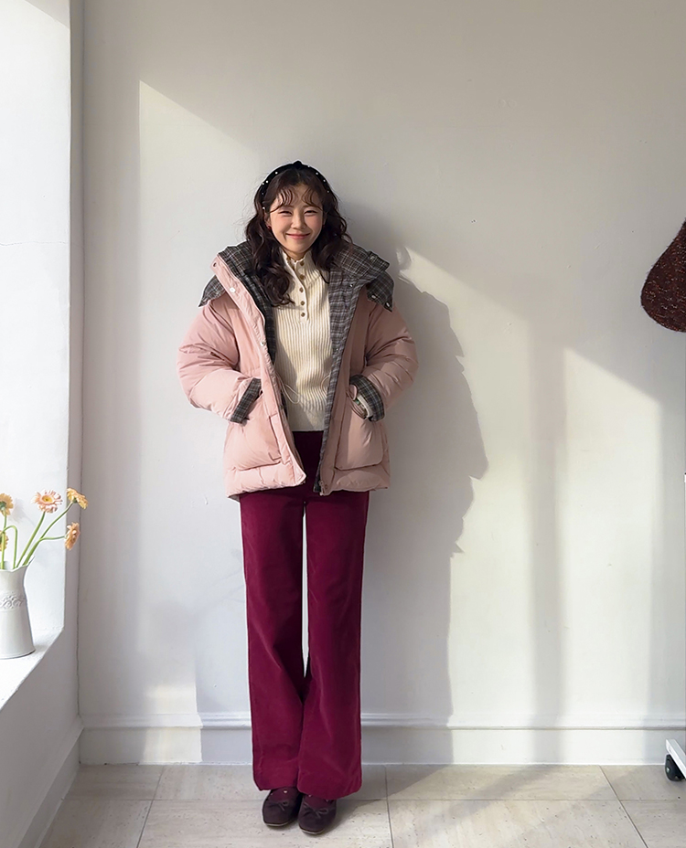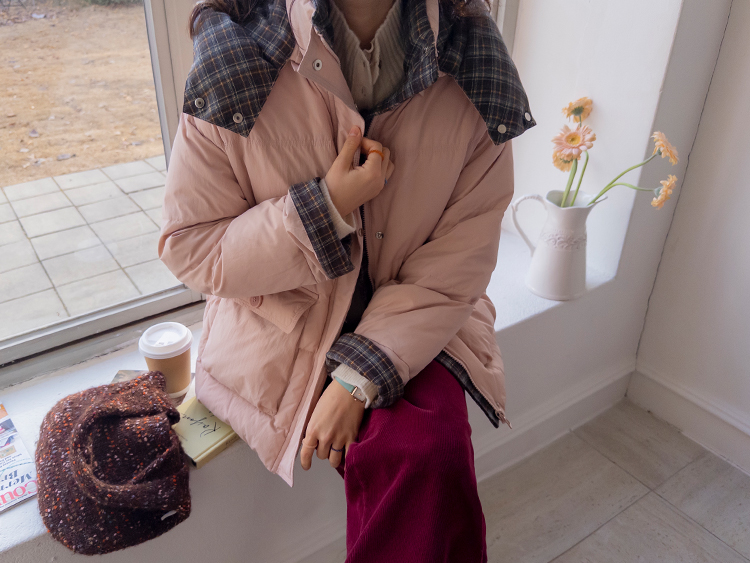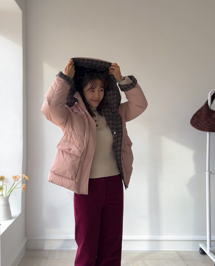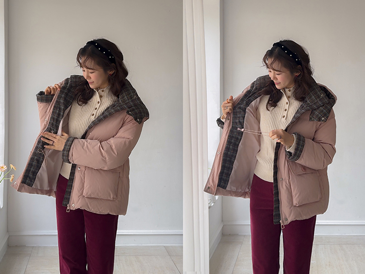 소매, 후드, 안감에 들어간 체크 배색이 톡톡한 귀여움을 더해줘서
