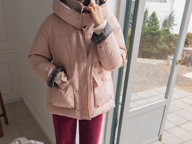 首页 > 新 7%DC > [鸭绒100%] Lemoen 可爱格子配色羽绒服夹克[尺码:F(55~66)]