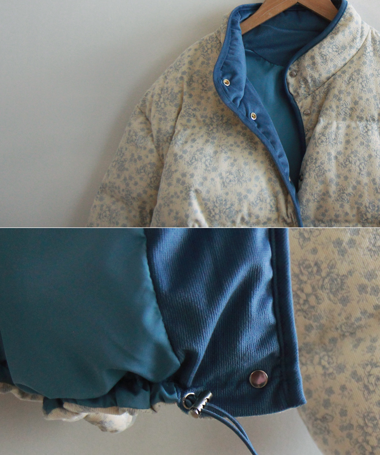 덕다운으로 가볍고 따스하구요 가볍고 따스해서 한파에도 거뜬해요~ 블루 꽃 나염이 세련된 러블리함으로~ 청바지 면바지 치마 다 이쁘게 코디하기 좋으시답니다 안감 넥 부드러운 따스한 원단으로 따로 폴라를 입지 않으셔도 따스함이 온전히 전해지는 아우터였어요~ 사이즈 프리로 55-66까지 좋으시구요` 이런 나염 원단들은 브랜드 들에서도 흔하게 찾아보기 힘든 아이라` 더 소중한것 같아요~ 아랫단 스트링 끈으로 끈 조절 하시면 바람 잘 막아주구요~ 핏이 너무 이쁜 아우터로` 진심 사심을 담뿍이 담아 강추 강추 드려요~