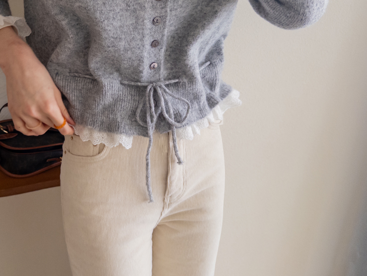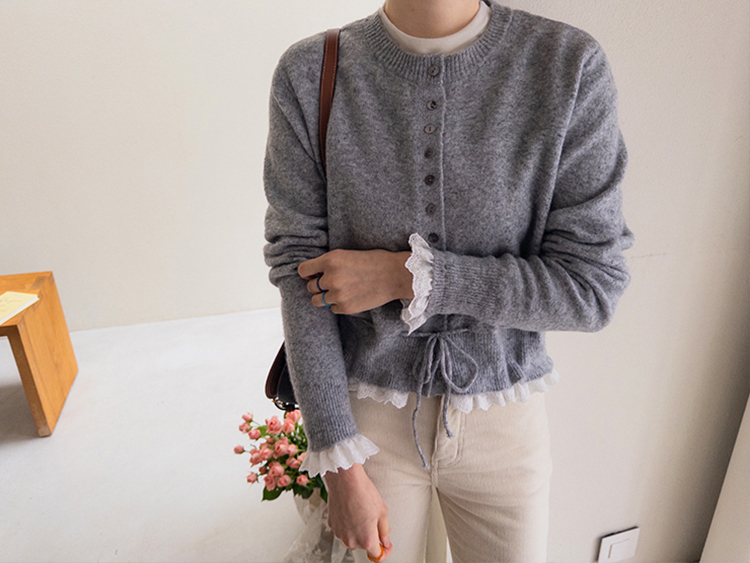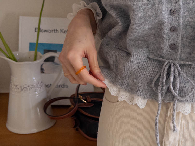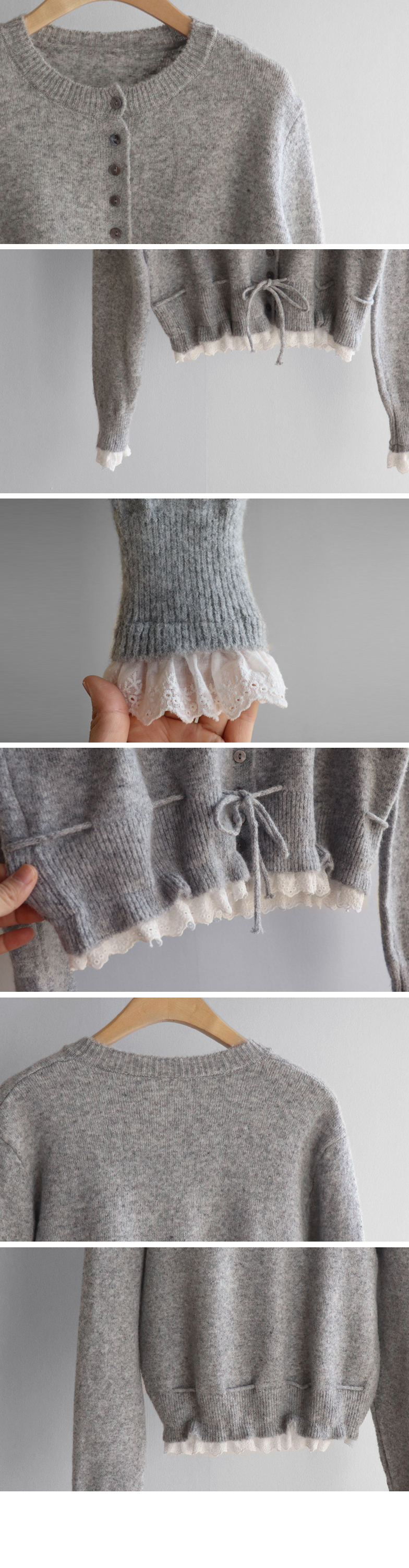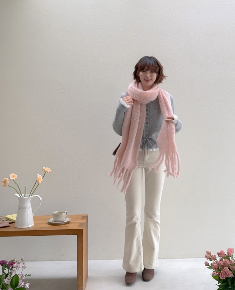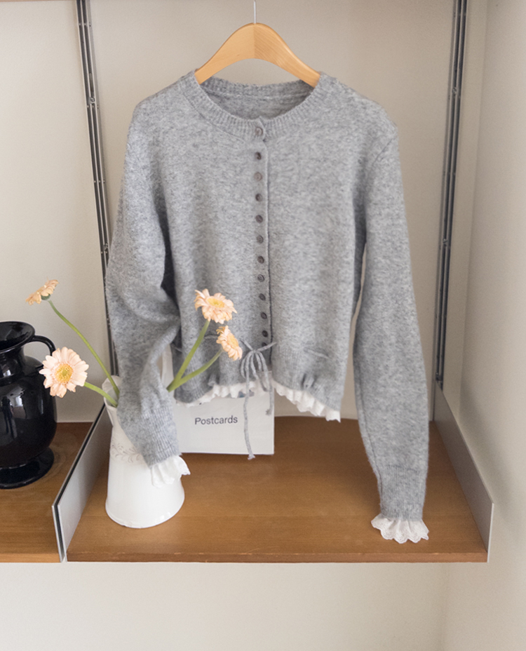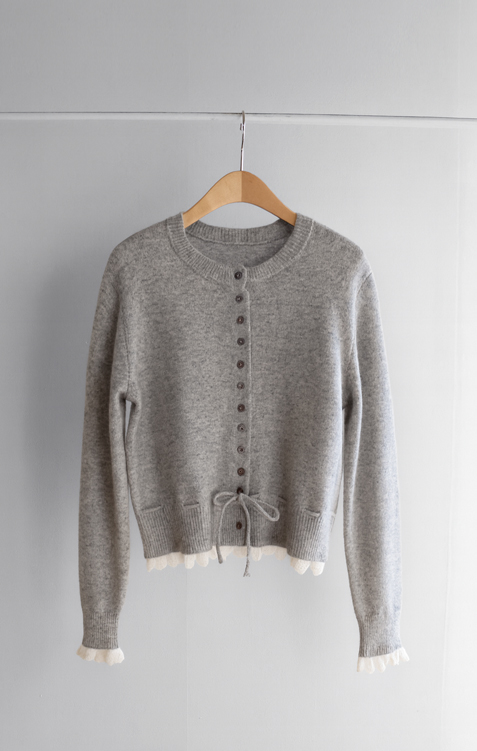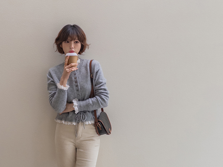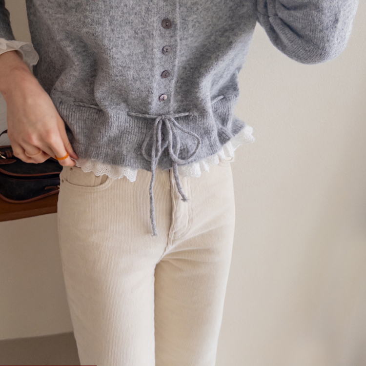 보는 순간 페미닌하고 러블리한 감성이 가~득 느껴지는 니트 가디건 이에요~^^💕 소매와 밑단에 더해진 프릴 디테일이 러블리하면서도 여성스러운 분위기를 연출해준답니다! 허리 끈 디테일이 있어 부해보임 없이 라인을 살려 더욱 여성스러운 실루엣 완성♡ 울블랜드 소재로 부드럽고 포근한 터치감이구요~☁️ 두껍지 않은 원단이라 겨울에도 가볍게 툭 걸치기 좋아서 데일리룩부터 데이트룩까지 활용도 GOOD~♥*.*♥ 러블리한 포인트들로 단독으로 입어도 예쁘고 이너와 함께 레이어드 해도 분위기가 살아나는 아이템이랍니다!^^