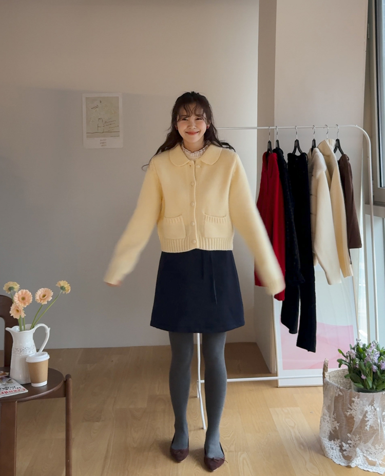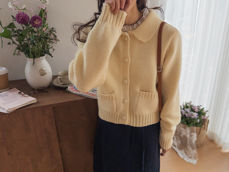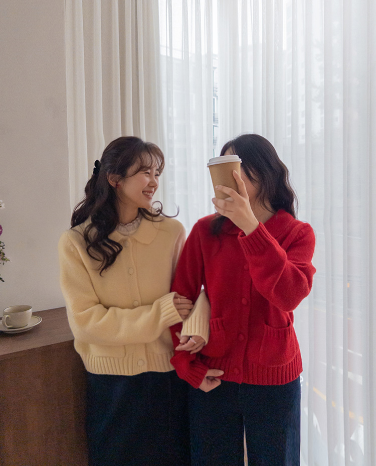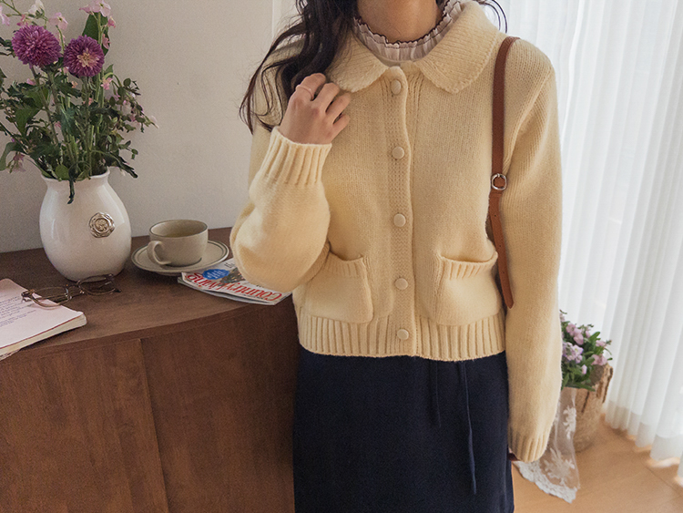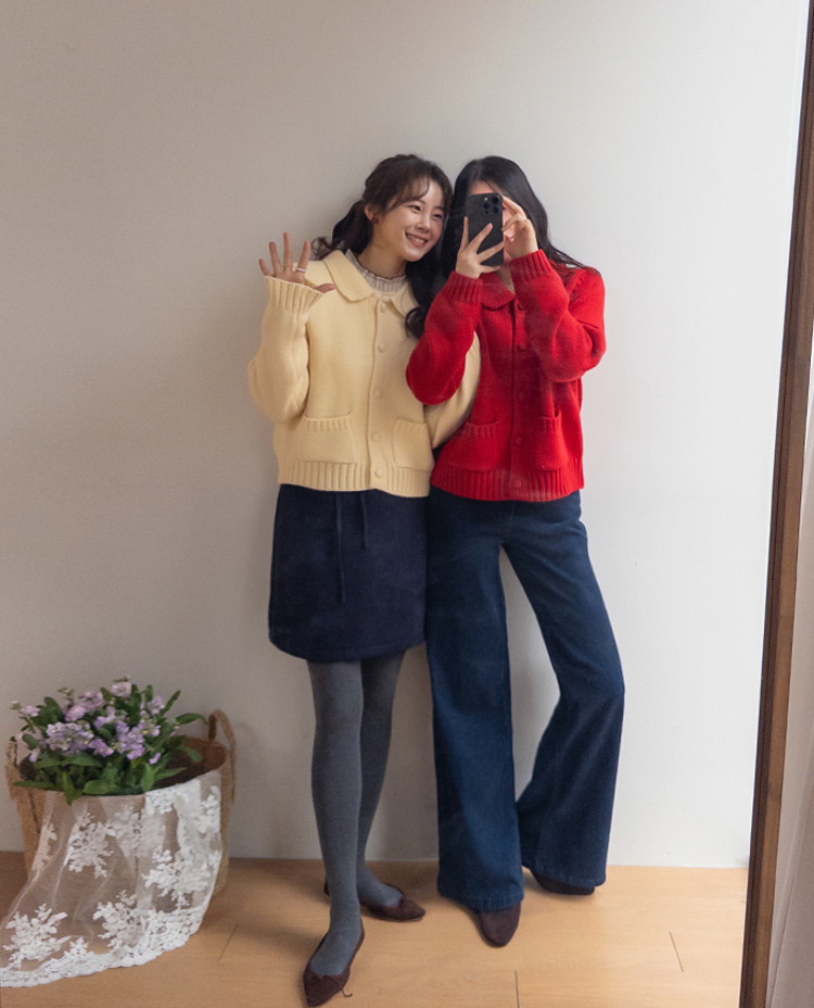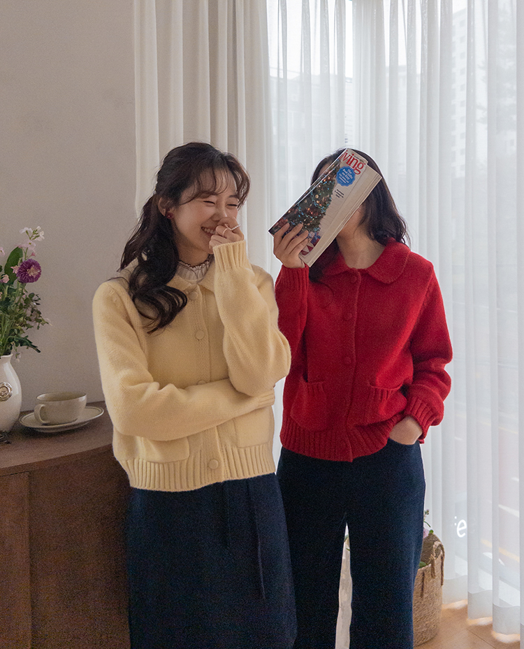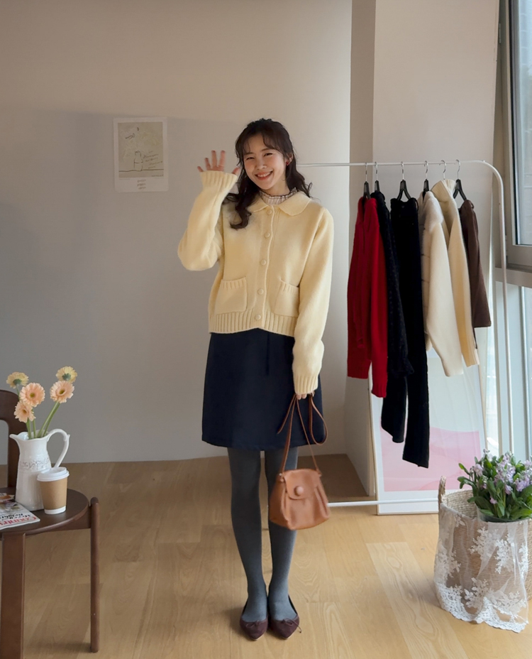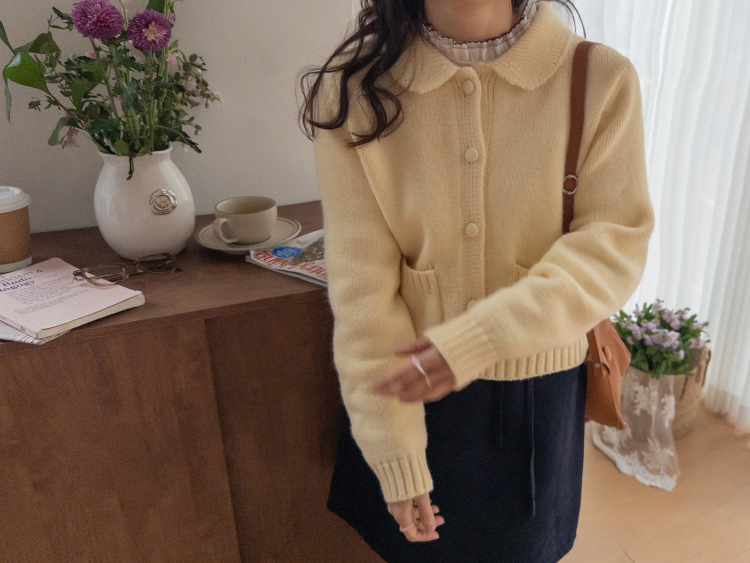 울 20%가 함유되어 부드럽고 포근한 착용감이 느껴지는 니트 가디건이에요 :) 동글동글한 버튼과 귀여운 카라 디테일이 더해져 전체적으로 러블리한 무드 가득~♥ 살짝 아방한 핏과 포근한 디자인으로 귀엽게 연출되는 실루엣이구요~ 이너와 레이어드해서 입기에도 좋고 버튼 모두 잠가 단독 니트처럼, 오픈해서 아우터로도 좋아 다양하게 활용 가능해요!*.* 귀엽고러블리하면서 활용성 좋은 니트 가디건 찾으신다면 요 아이템 어떠실까요~?♡