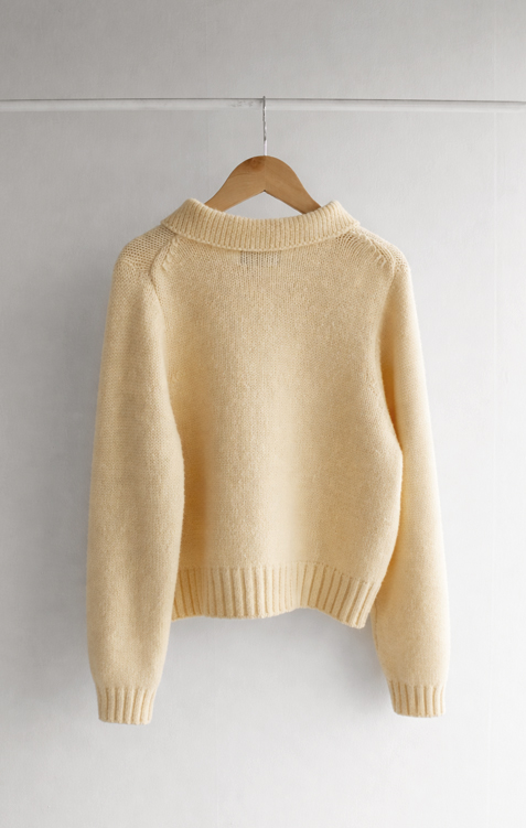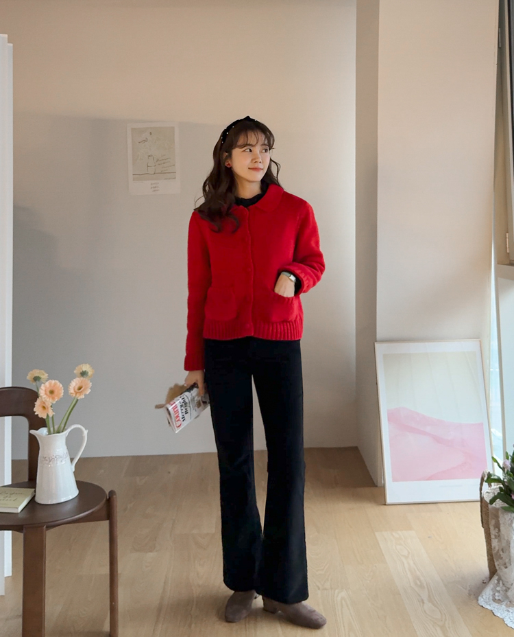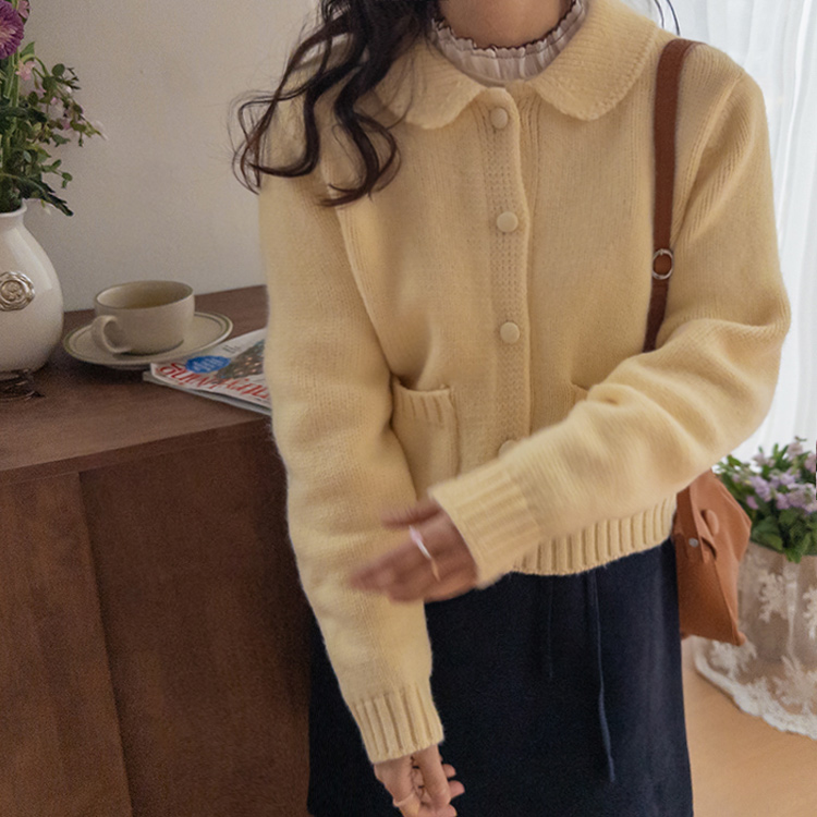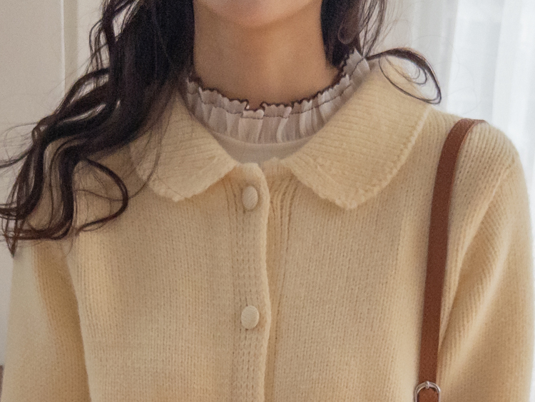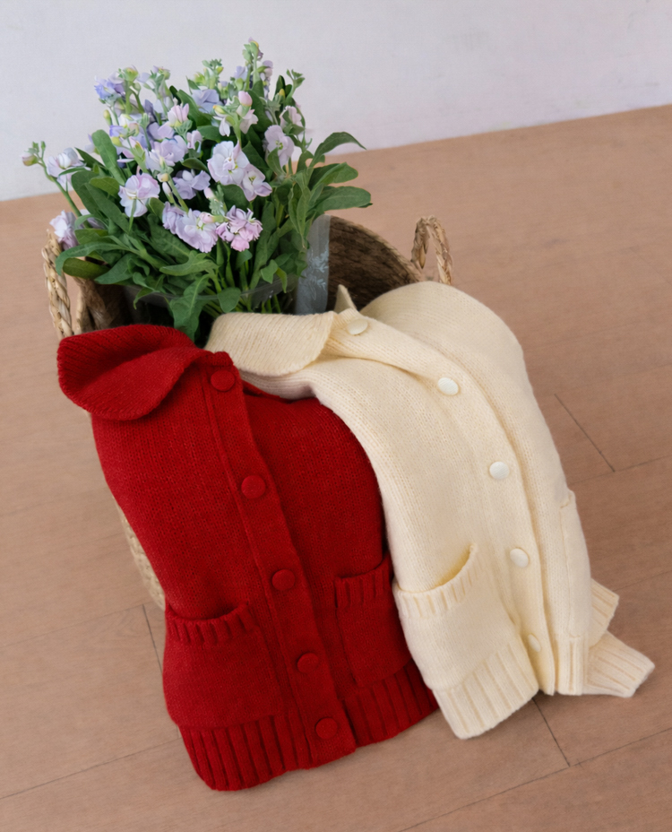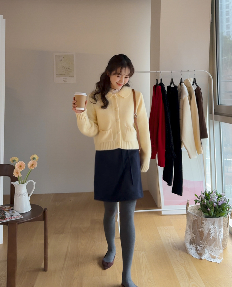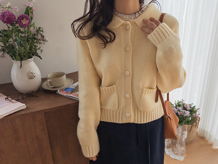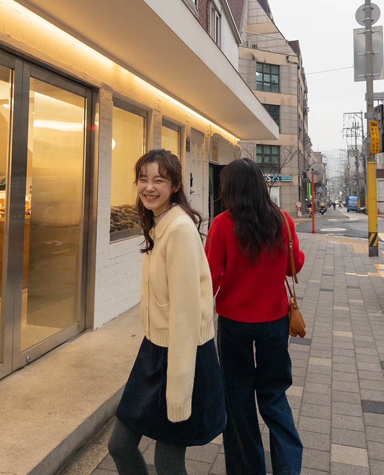 울 20%가 함유되어 부드럽고 포근한 착용감이 느껴지는 니트 가디건이에요 :) 동글동글한 버튼과 귀여운 카라 디테일이 더해져 전체적으로 러블리한 무드 가득~♥ 살짝 아방한 핏과 포근한 디자인으로 귀엽게 연출되는 실루엣이구요~ 이너와 레이어드해서 입기에도 좋고 버튼 모두 잠가 단독 니트처럼, 오픈해서 아우터로도 좋아 다양하게 활용 가능해요!*.* 귀엽고러블리하면서 활용성 좋은 니트 가디건 찾으신다면 요 아이템 어떠실까요~?♡