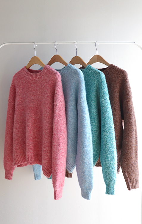 콕콕~ 보카시 원단으로 오묘한 컬러감이 넘 예쁜 니트에요! 단색 니트보다 더 오묘하게 예쁜 보카시 니트라 좀 더 포인트있게 입어주기 좋답니다 :) 두툼한 두께감이라 한겨울에도 OK!! 하나만 입어도 따숩게 입기 좋은 니트에요~ 울 10% 함유되어 보온성도 좋구요~ 기장감이나 품도 여유로워서 편하게 입어주기 좋아요 ^^ 겨울엔 톤다운된 컬러들이 넘 많은데~ 컬러감도 파스텔하면서 컬러풀해서 포인트 니트로 넘 상큼하게 이쁘더라구요~ 다양한 룩에 사랑스럽게 함께 해주세요♥
