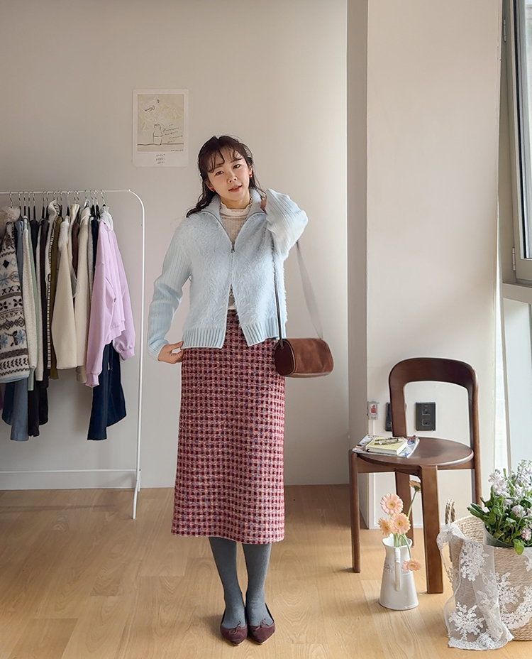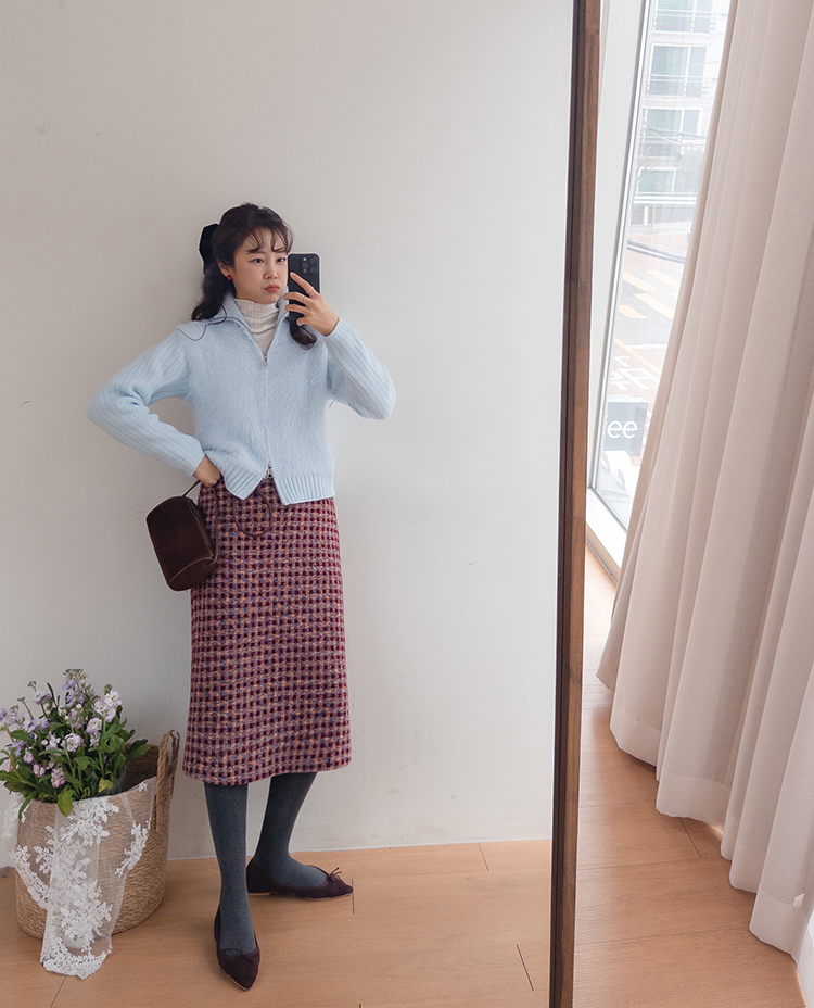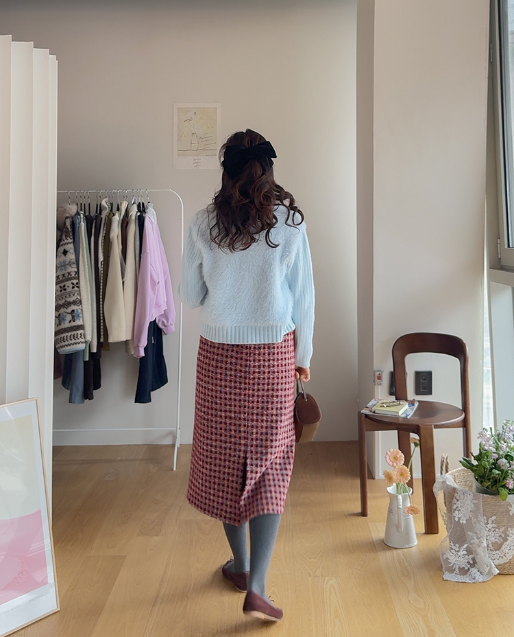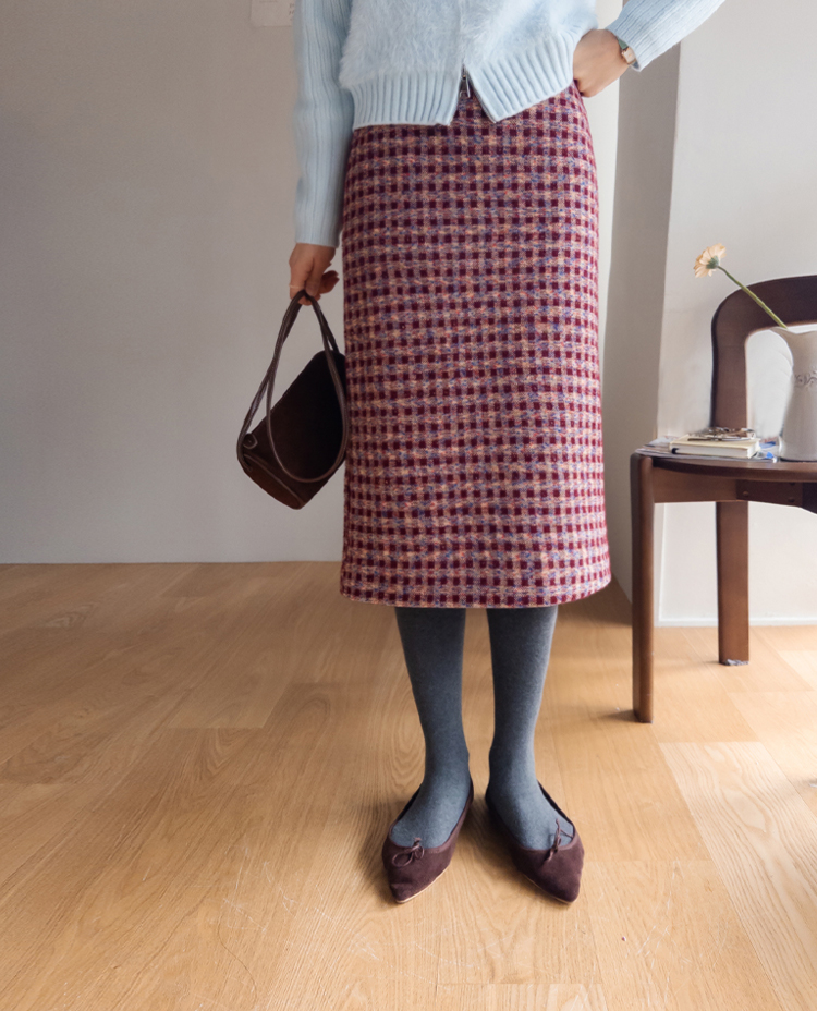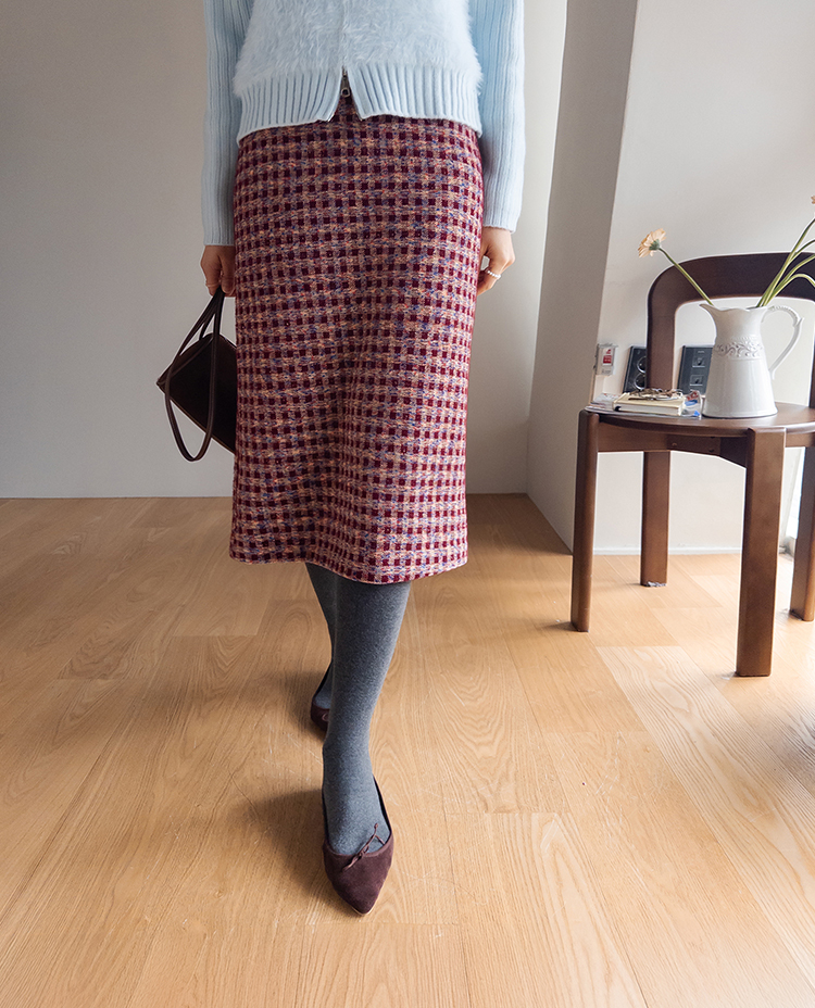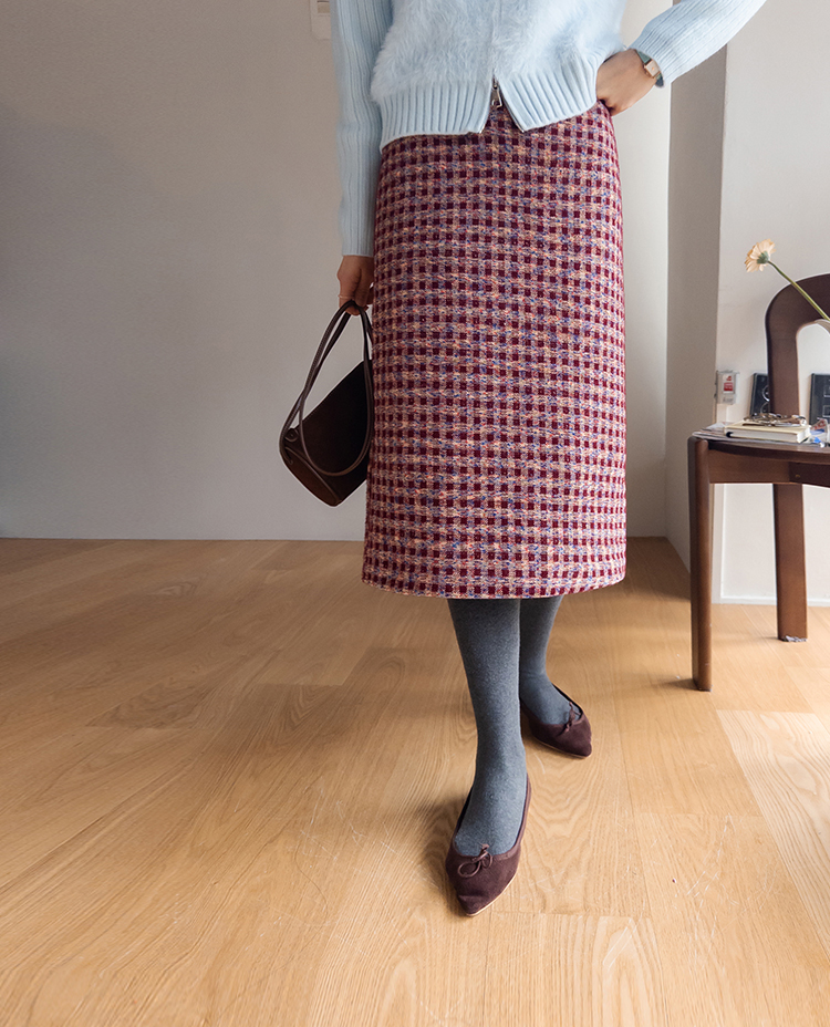 트위드 소재감에 톡톡 튀는 컬러 배색이 더해져 소장가치 가득~한 스커트 보여드려요! 중요한 모임이나 자리가 많아지는 연말, 연초 시즌에 특별하게 즐기기 좋은 스커트 찾으셨다면 정말 추천드리고 싶은데요~! 깔끔하게 떨어지는 H라인 실루엣으로 여성스러운 매력이 돋보이구요 원단도 트위드인데 원단 자체에 기모끼가 느껴지는 소재라서 터치감도 부드럽고 도톰한 소재감이라 FW시즌에 활용도 높으실거에요:) 배색도 넘 예뻐서 컬러감 자체만으로도 룩에 포인트를 주기 좋은 아이인데다 허리 뒷밴딩으로 편하기까지 하니 소장하셔서 데일리는 물론! 중요한 자리에도 함께해주세요*.*