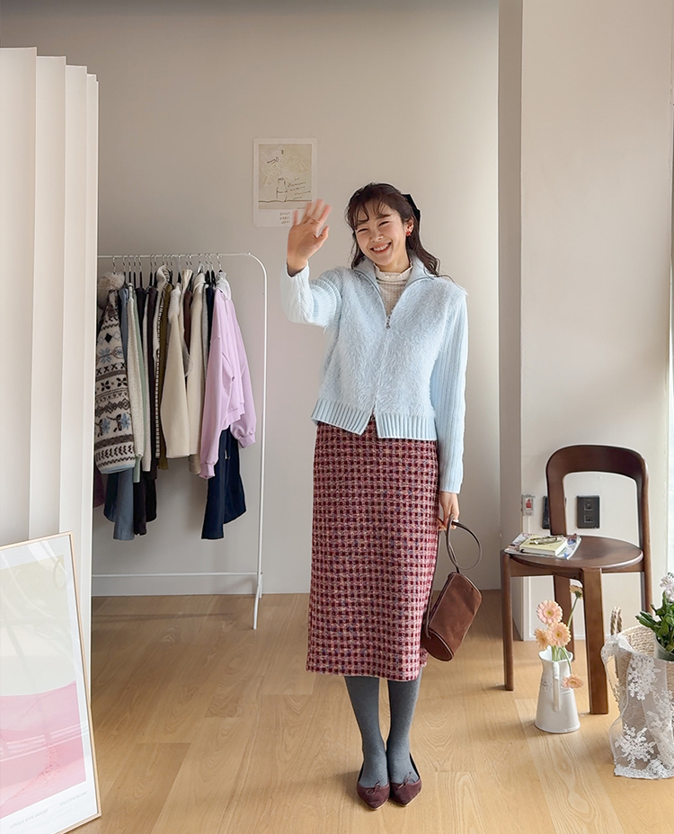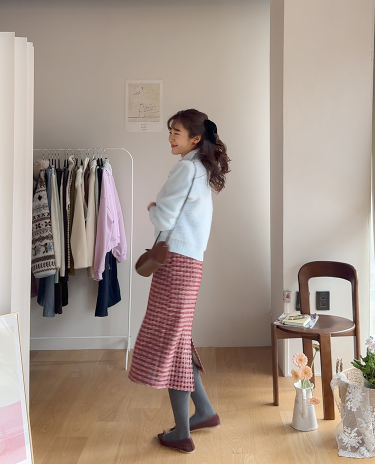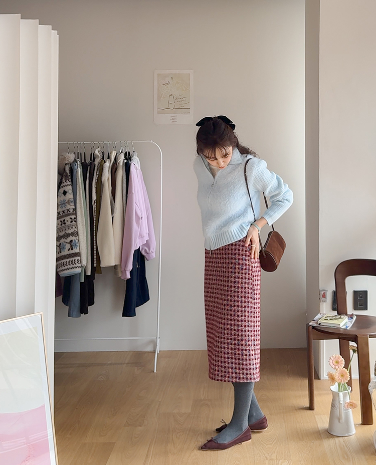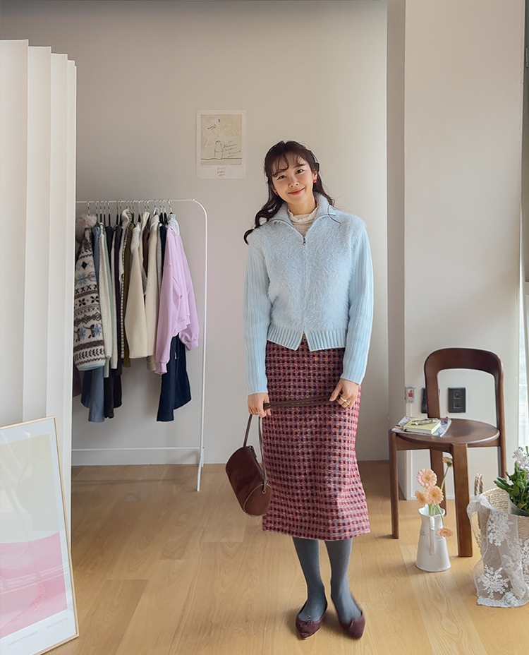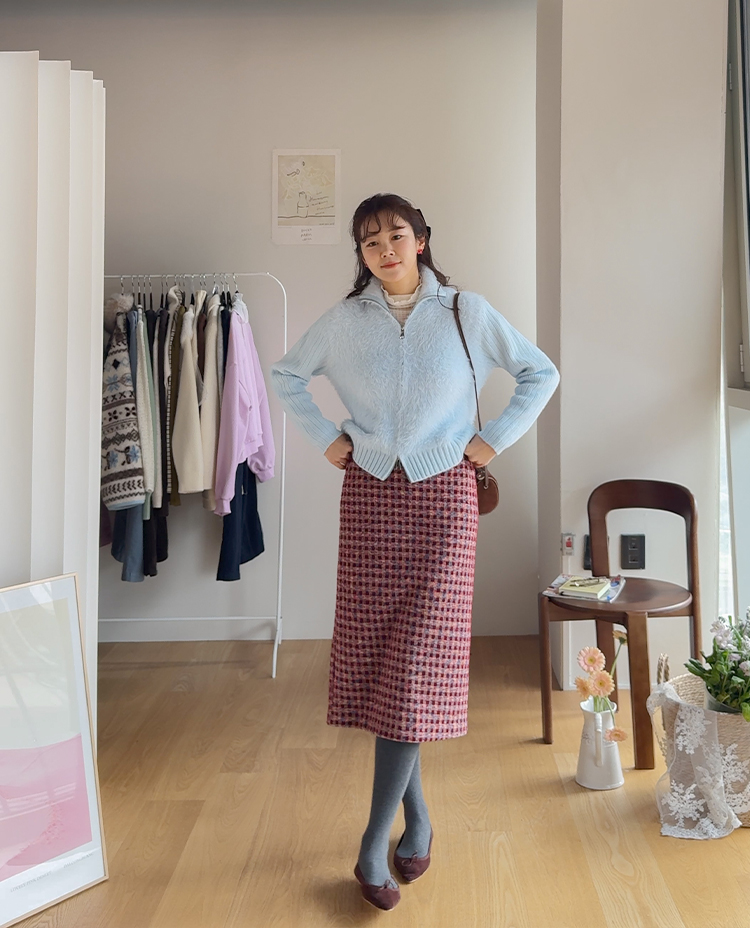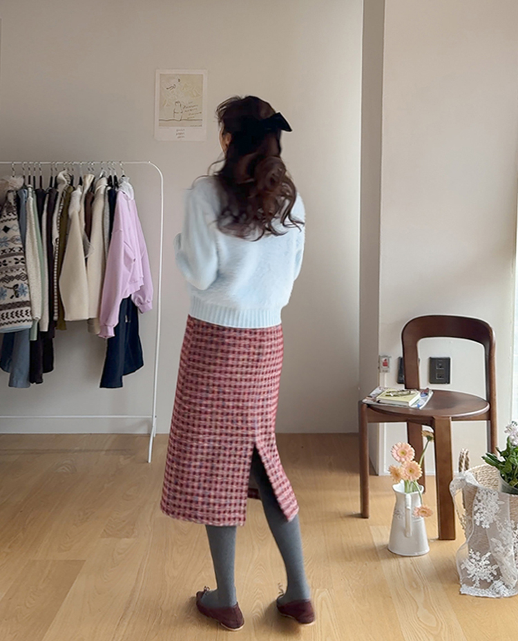 트위드 소재감에 톡톡 튀는 컬러 배색이 더해져 소장가치 가득~한 스커트 보여드려요! 중요한 모임이나 자리가 많아지는 연말, 연초 시즌에 특별하게 즐기기 좋은 스커트 찾으셨다면 정말 추천드리고 싶은데요~! 깔끔하게 떨어지는 H라인 실루엣으로 여성스러운 매력이 돋보이구요 원단도 트위드인데 원단 자체에 기모끼가 느껴지는 소재라서 터치감도 부드럽고 도톰한 소재감이라 FW시즌에 활용도 높으실거에요:) 배색도 넘 예뻐서 컬러감 자체만으로도 룩에 포인트를 주기 좋은 아이인데다 허리 뒷밴딩으로 편하기까지 하니 소장하셔서 데일리는 물론! 중요한 자리에도 함께해주세요*.*