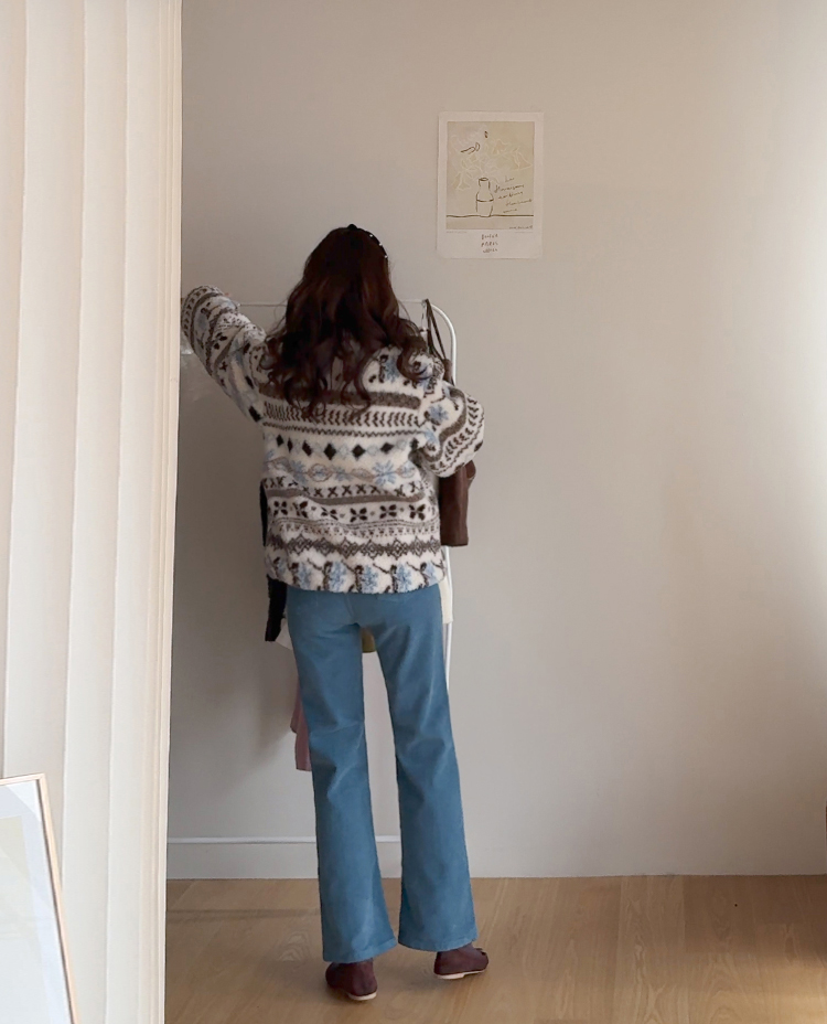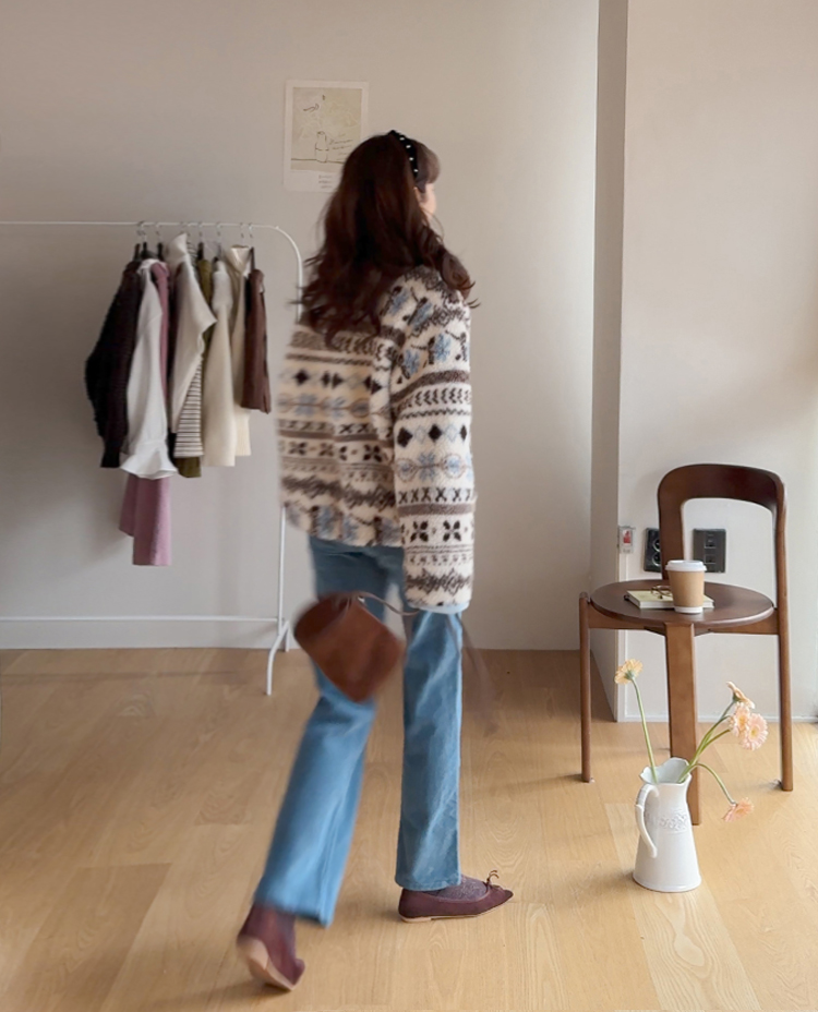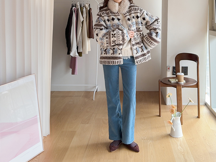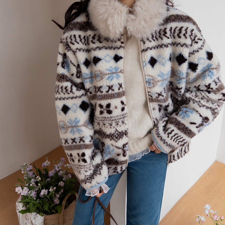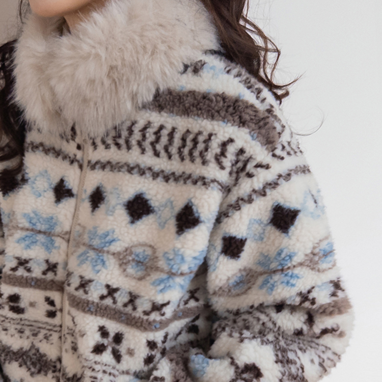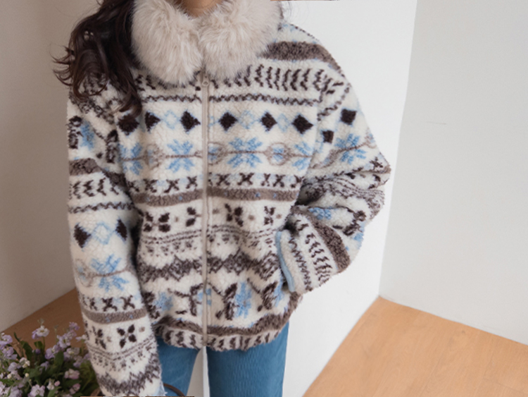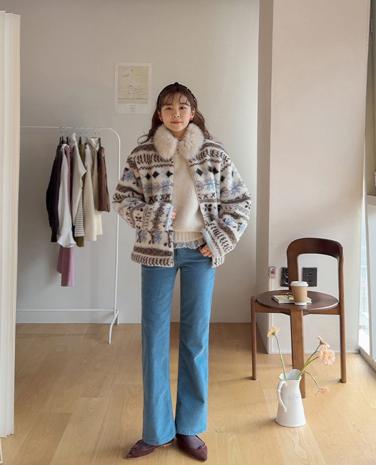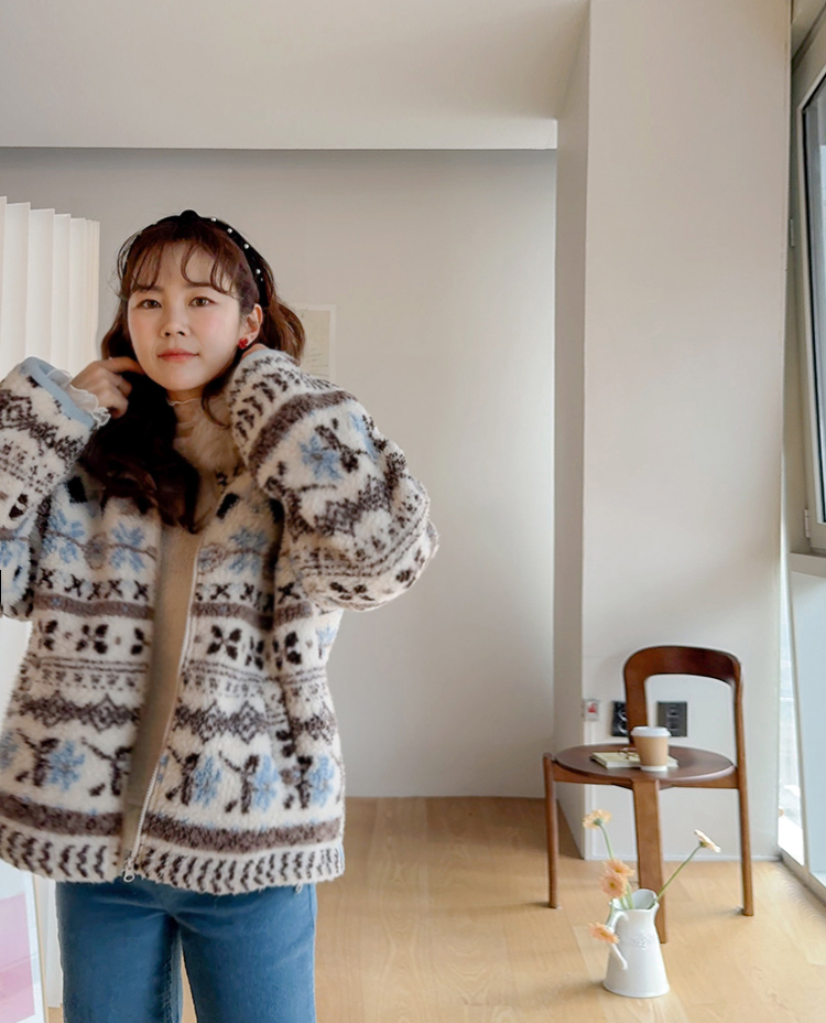 몽글~몽글 포근함이 가득 느껴지는 플리스 점퍼 보여드릴게요~^.^ 퍼 카라는 탈부착이 가능해서 두가지 연출이 가능하다는 점이 너무 좋았어요! 겨울 분위기를 맘껏 느껴볼 수 있는 노르딕 패턴으로 스타일리시함은 UP~! 살짝 여유로운 실루엣으로 도톰한 이너와도 부담없이 편안하게 즐길 수 있어요ㅎㅎ 데일리는 물론, 따뜻하게 포인트 주고 싶은 날 플리스 점퍼로 스타일리시한 룩 완성해 보아요~♡
