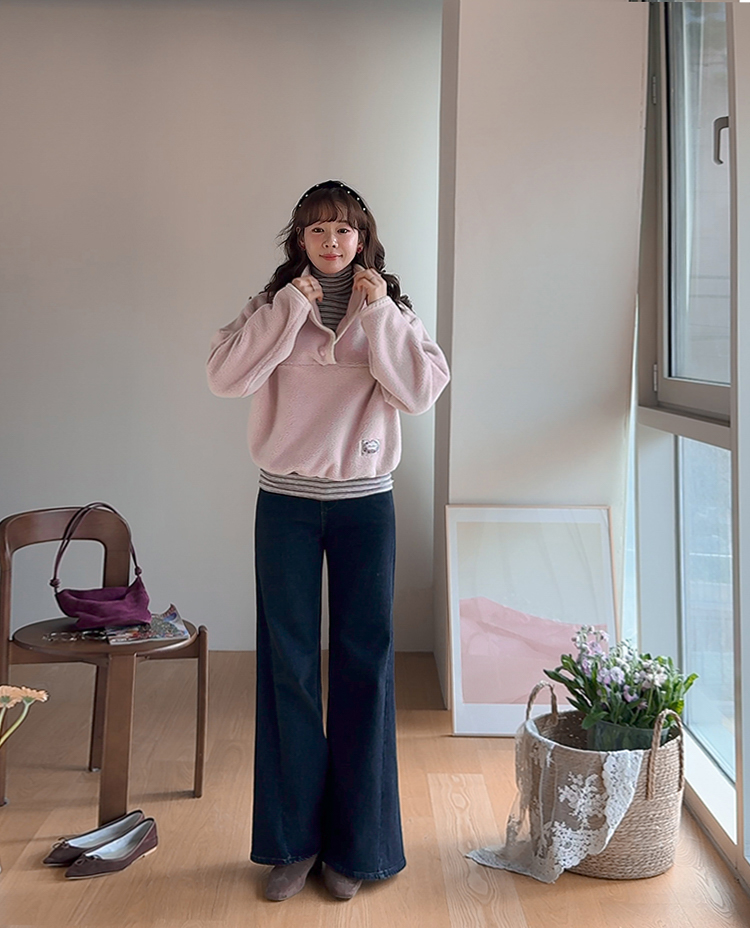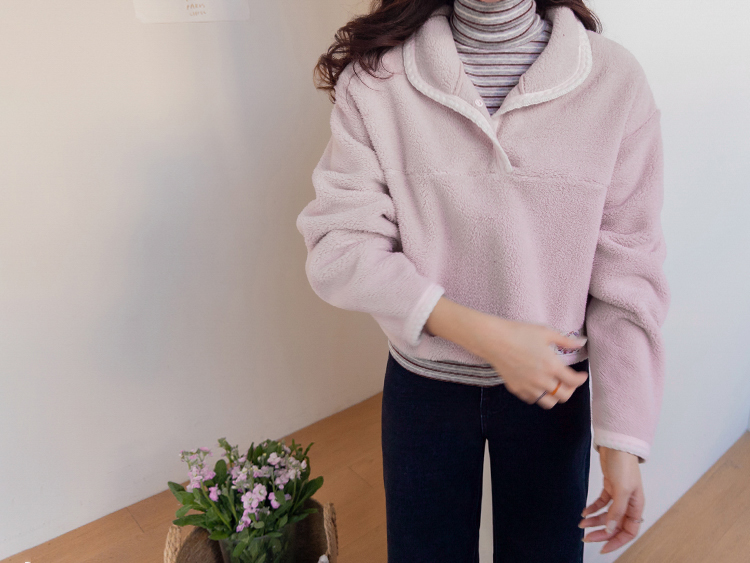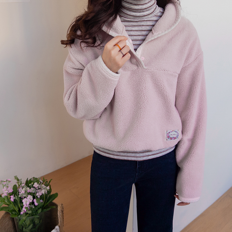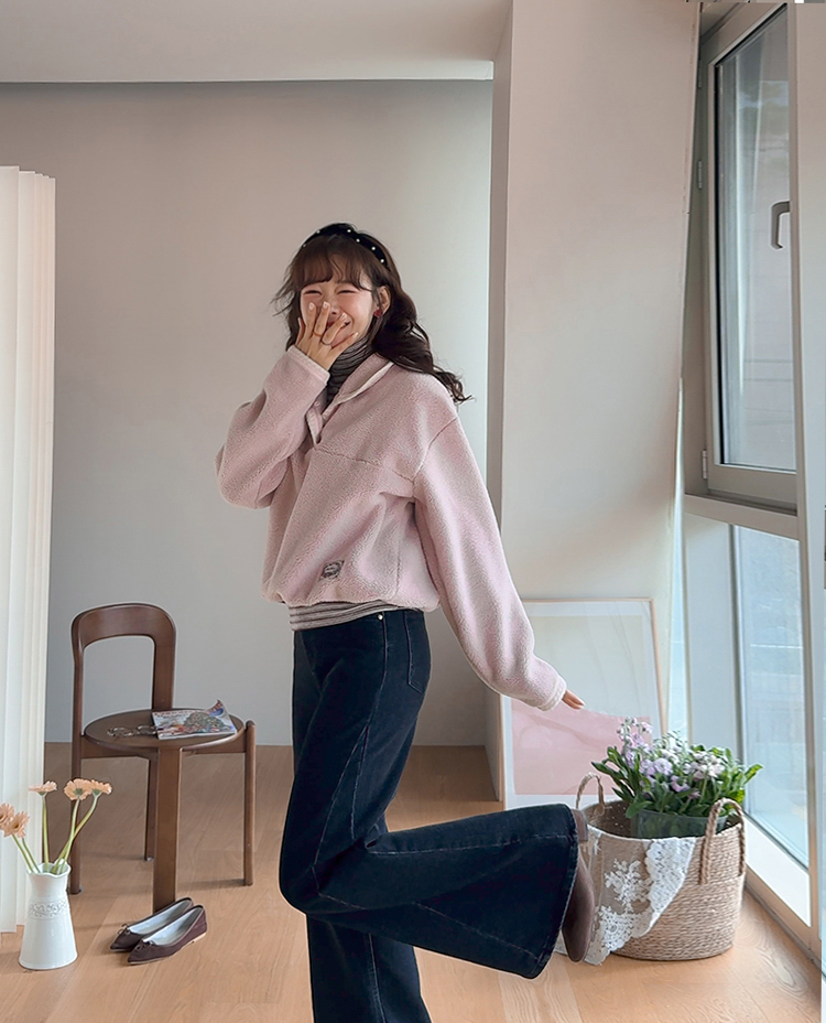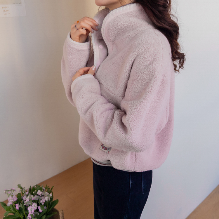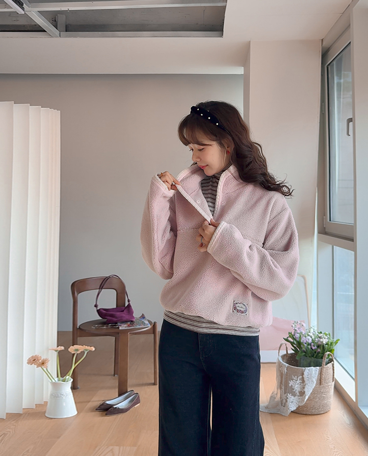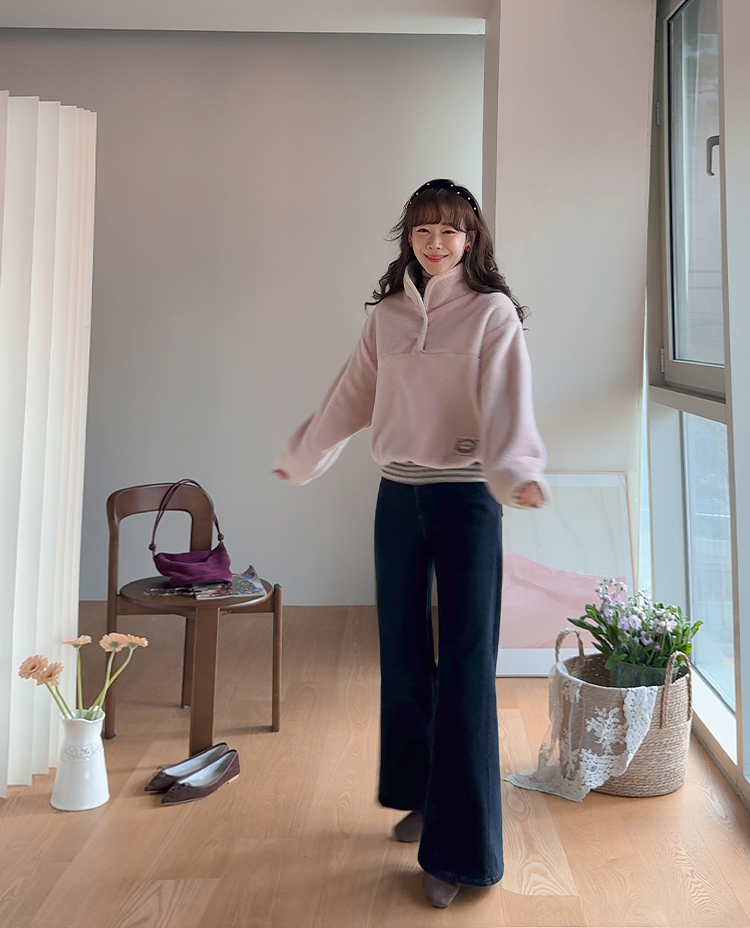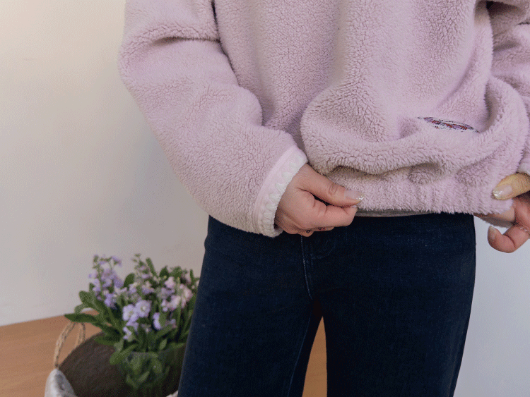보들보들~ 넘 보드랍고 도톰한 플리스 소재로 겨울내내 귀엽고 따듯하게 착용될 반집업 후리스 보여드려요ㅎㅎ 요 아이, 겨울에 뭘 입어도 추우셨던 분들에게 정말 추천드리고 싶어요~ 도톰한 두께감의 후리스 원단에 보드라운 터치감까지 더해져서 넘 편하고 귀여운 그런 반집업 맨투맨이에요! 원단도 좋지만 디자인도 정말 귀여운데요 둥근 카라 디자인에 반집업 형식인데요 버튼도 컬러를 맞춰주어서 사랑스럽고 귀여운 포인트가 되어주고 똑딱이 버튼으로 달아주어서 간편한 오픈클로징이 가능해요:) 또 카라부분에 자수 트리밍을 더해주어서 사랑스러운 디테일도 챙겨주었답니다! 밑단은 밴딩으로 되어있어서 핏을 봉봉하게 잡아주어 루즈한 실루엣으로 연출되고 꾸안꾸룩이나 마실룩으로도 좋은데다 홈웨어로도 좋아서 사심 가득~담아 추천드릴게요-♡