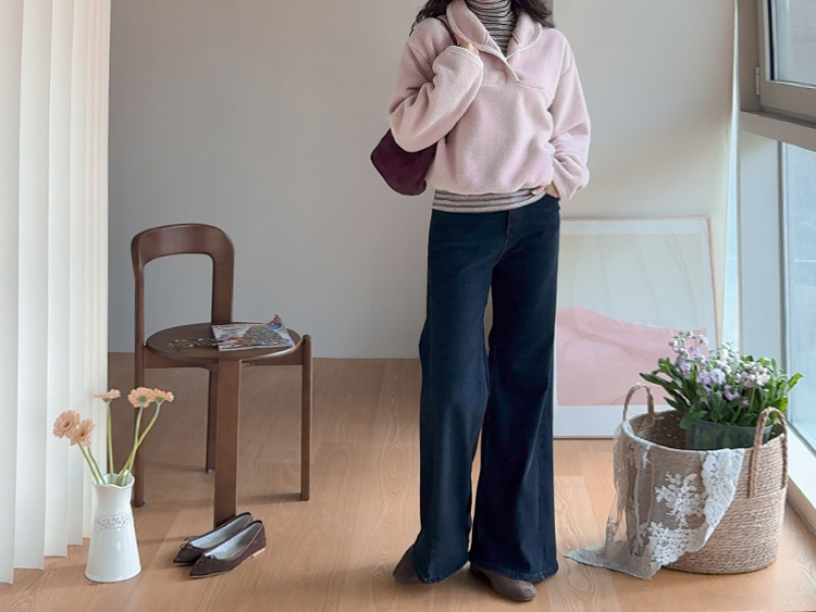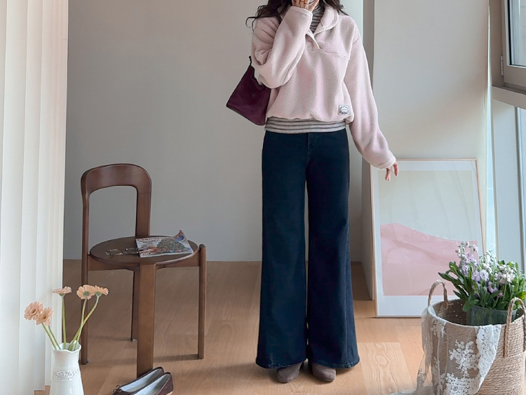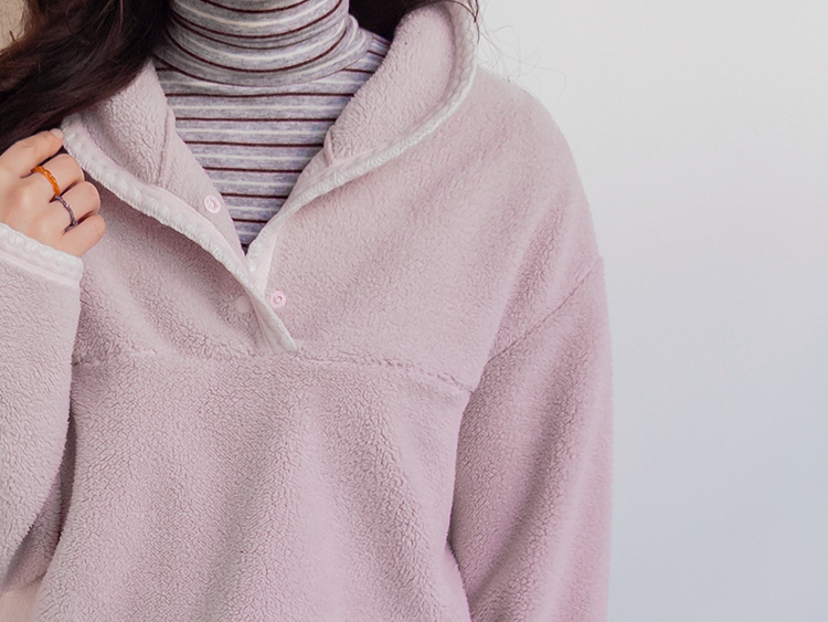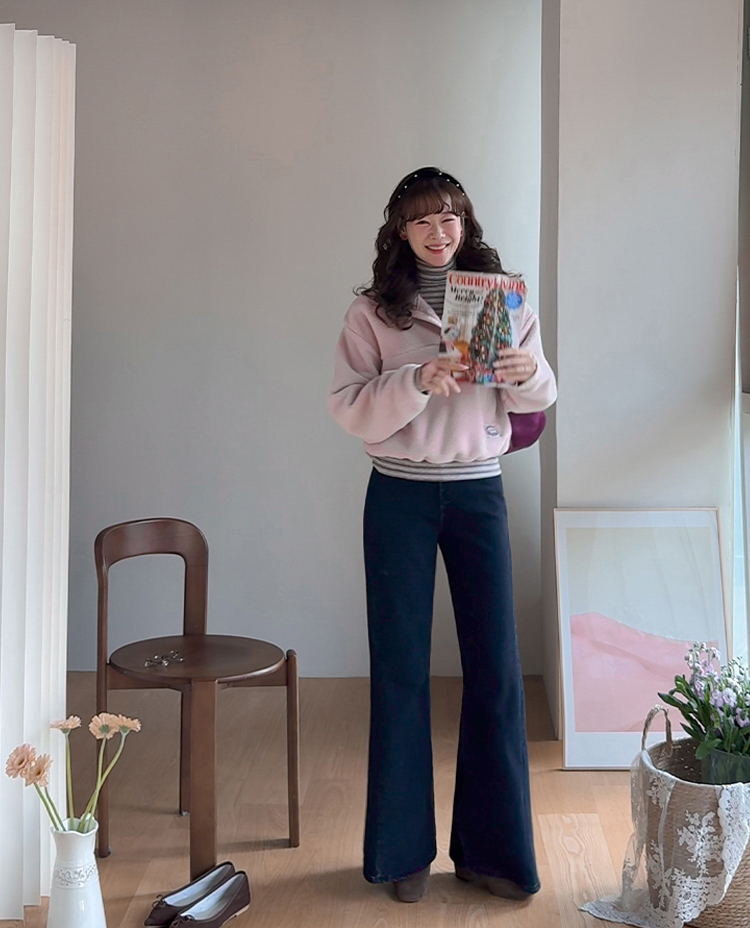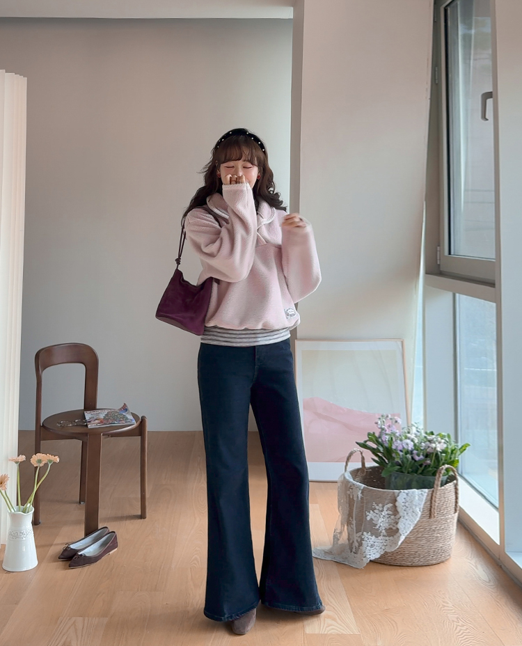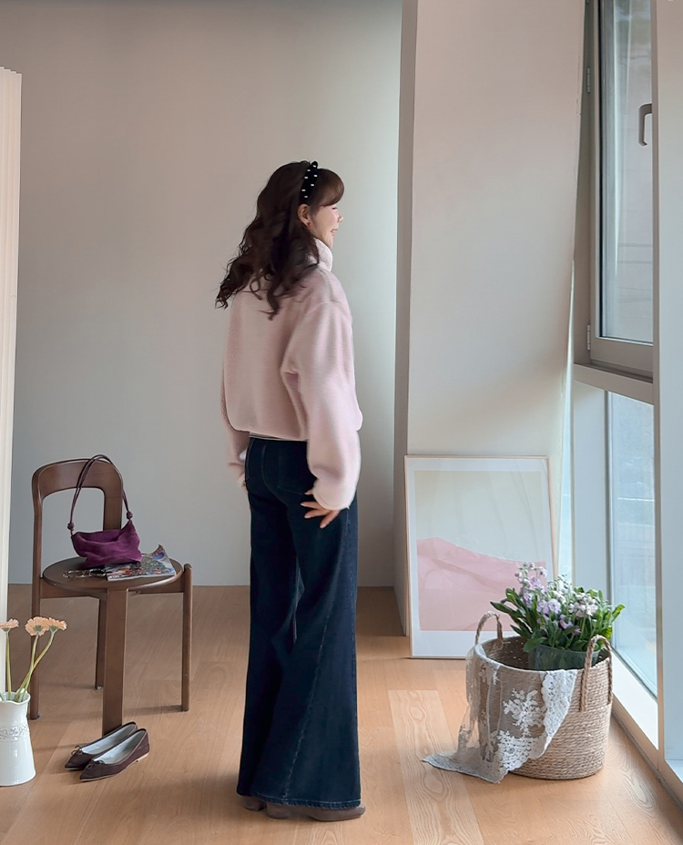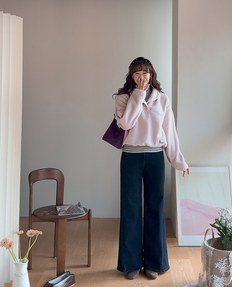 보들보들~ 넘 보드랍고 도톰한 플리스 소재로 겨울내내 귀엽고 따듯하게 착용될 반집업 후리스 보여드려요ㅎㅎ 요 아이, 겨울에 뭘 입어도 추우셨던 분들에게 정말 추천드리고 싶어요~ 도톰한 두께감의 후리스 원단에 보드라운 터치감까지 더해져서 넘 편하고 귀여운 그런 반집업 맨투맨이에요! 원단도 좋지만 디자인도 정말 귀여운데요 둥근 카라 디자인에 반집업 형식인데요 버튼도 컬러를 맞춰주어서 사랑스럽고 귀여운 포인트가 되어주고 똑딱이 버튼으로 달아주어서 간편한 오픈클로징이 가능해요:) 또 카라부분에 자수 트리밍을 더해주어서 사랑스러운 디테일도 챙겨주었답니다! 밑단은 밴딩으로 되어있어서 핏을 봉봉하게 잡아주어 루즈한 실루엣으로 연출되고 꾸안꾸룩이나 마실룩으로도 좋은데다 홈웨어로도 좋아서 사심 가득~담아 추천드릴게요-♡