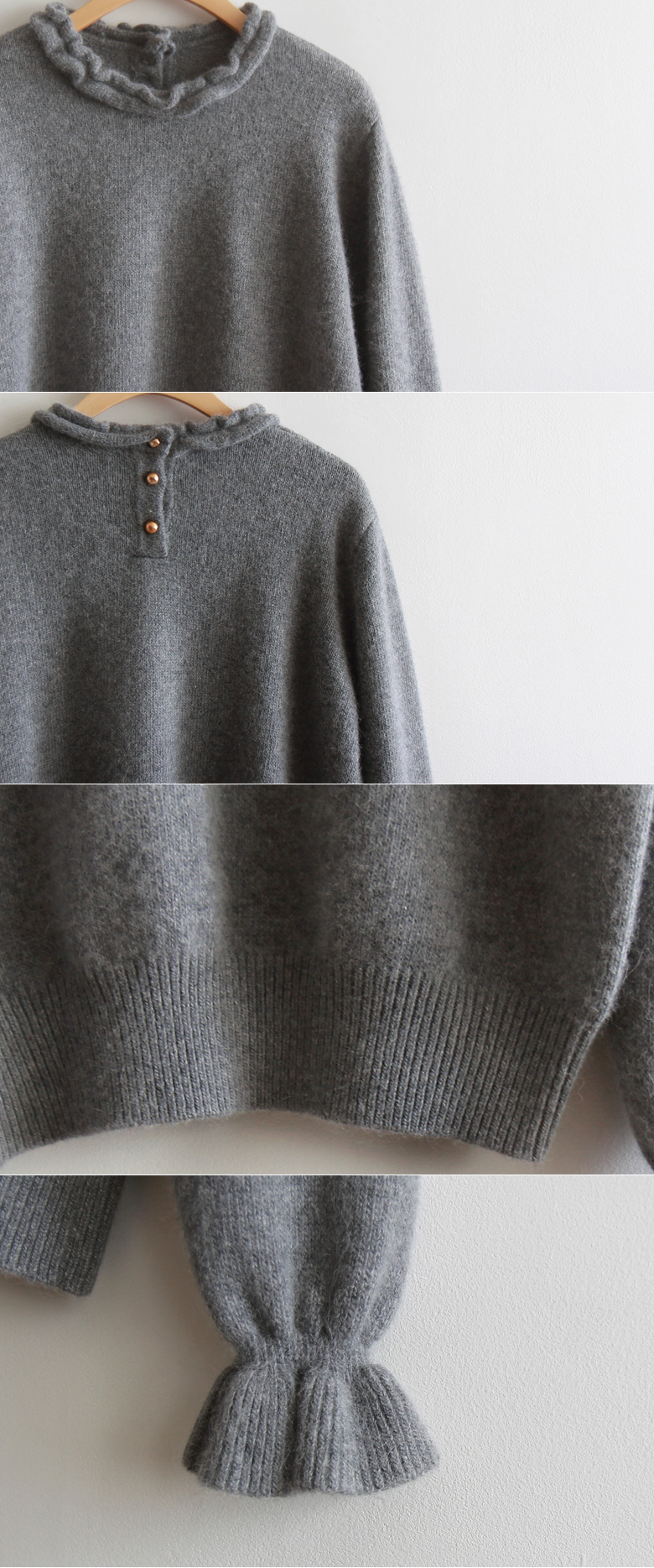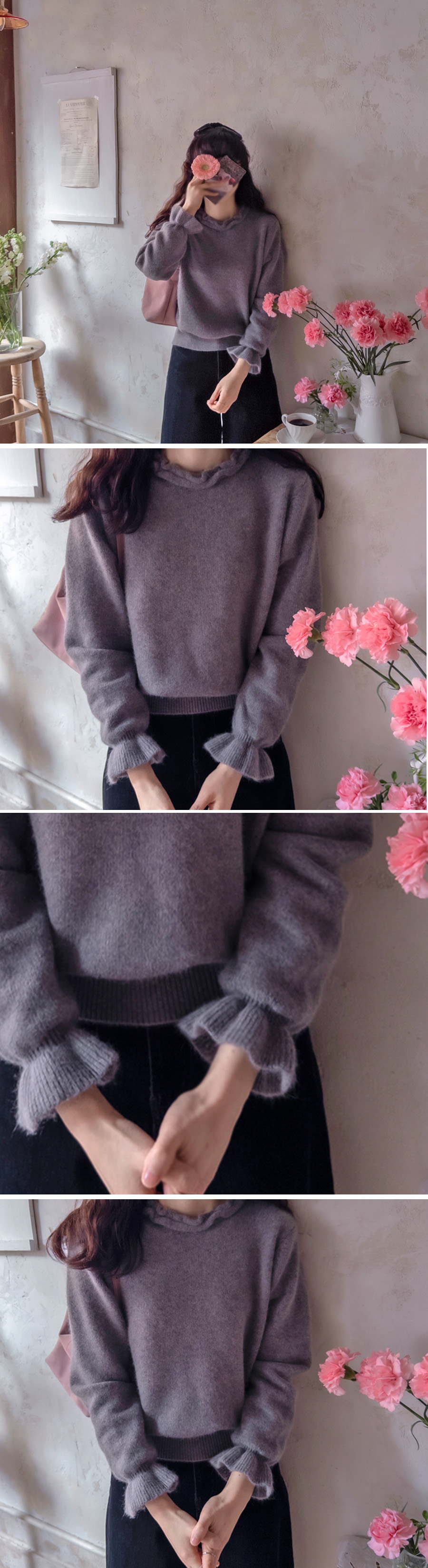 넥 프릴이 과하지 않게 씸플한 디자인에 포인트로~ 부드럽고 유연한 니트로 고급스러움이 담뿍이 따스하게 입으시는 니트였어요~ 아랫단 시보리 있어 깔끔한 아웃핏 가능하구요~ 사이즈 프리로 55-66까지 좋으시구요` 전혀 문제없이 착용 가능하신 니트랍니다~ 포슬한 특유의 고급스러움이 느껴지는 니트로! |