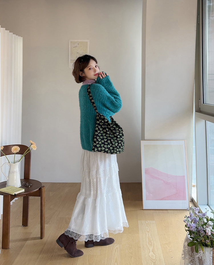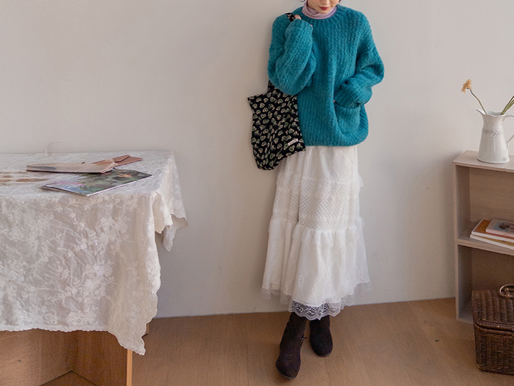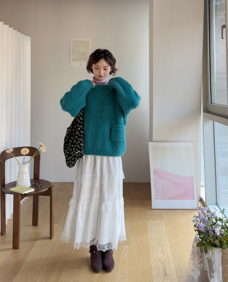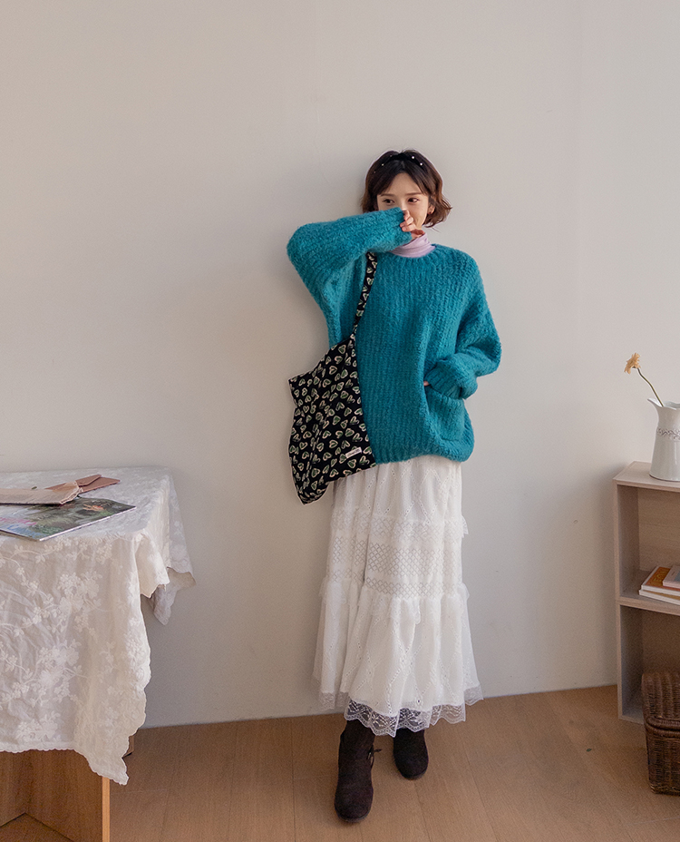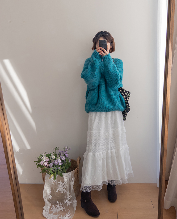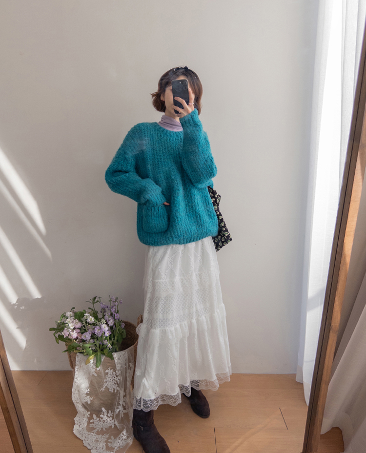 몽글몽글한 컬러감이 매력적인 니트 보여드릴게요♡ 루즈하게 떨어지는 핏으로 상체 여기저기 군살을 자연스럽게 커버해준답니다 한쪽에만 포켓을 더해주어 귀여운 포인트 UP! 간단한 수납까지 가능해요! 오묘하면서도 따뜻한 컬러감으로 기본 팬츠에 이 니트만 걸치셔서 포근한 겨울감성룩으로 스타일링하시길 추천드릴게요 ;D