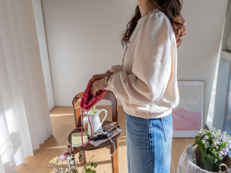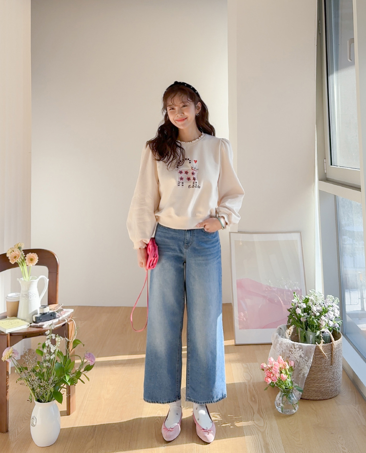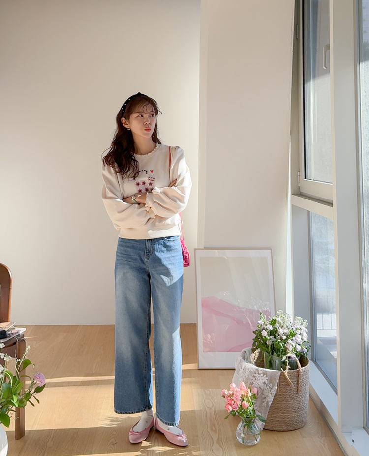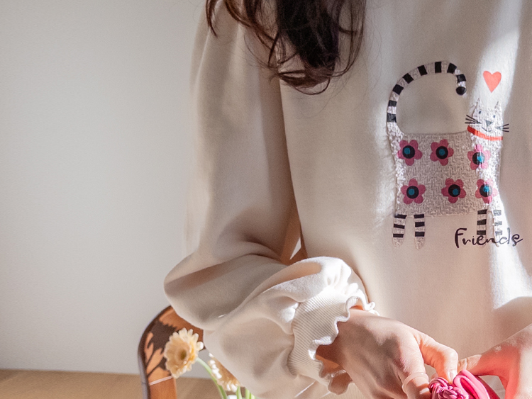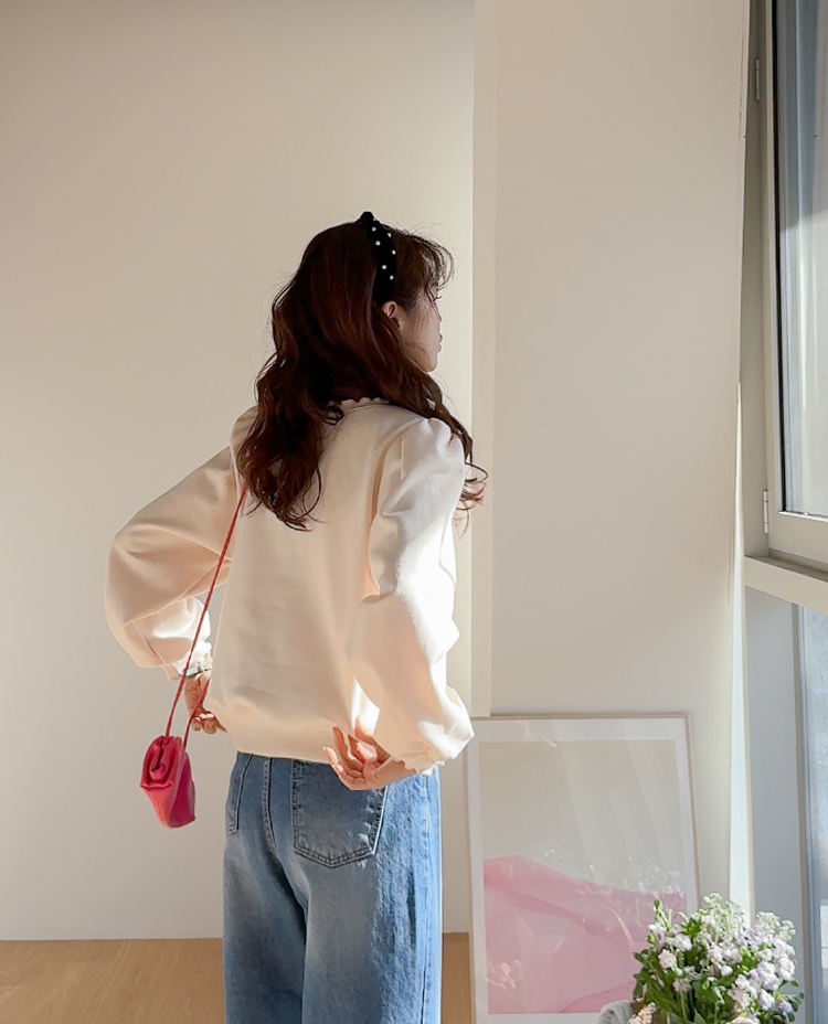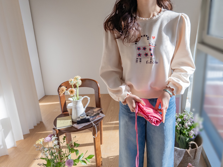 부드러운 속기모로 한겨울엔 아우터안에 쏙~ 따뜻하게 입기 좋구요~ 맨투맨이라고 후줄근~해 보이지 않은 포인트들이 넘 유니크해서 소장 가치 높은↑아이템인데요~ 소매와 넥라인에 프릴 블라우스를 입은듯~ 웨이브를 주어 더욱 사랑스럽게! 또, 여유로운 품과 어깨 셔링으로 미운 군살을 쏘옥~ 가려주어 고마운 아이템 ㅎㅎ 사랑스러운 냥이 프린팅으로 포인트 톡!톡! 하니~ 굿초이스 해주세요 ^^