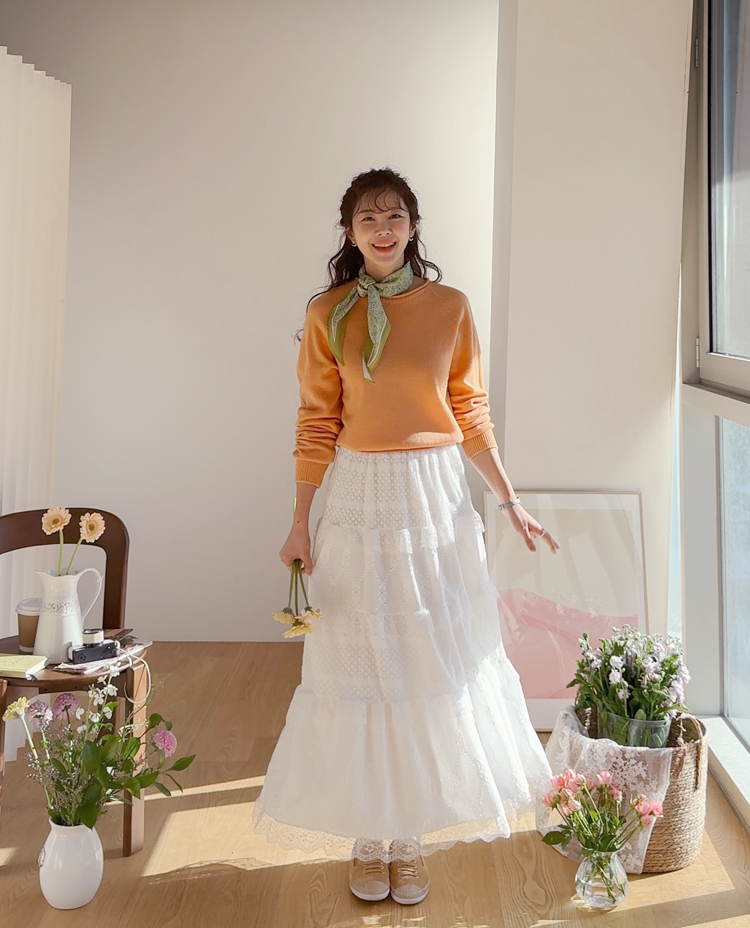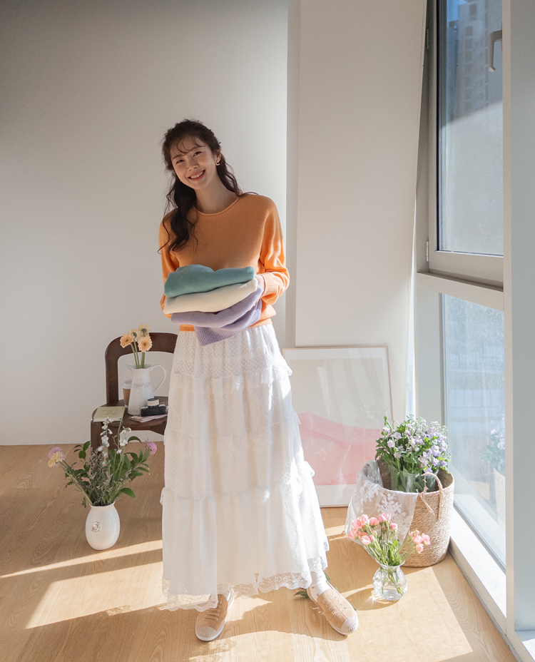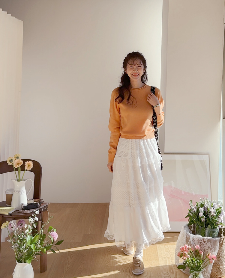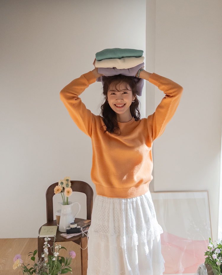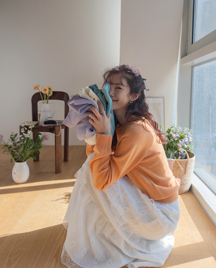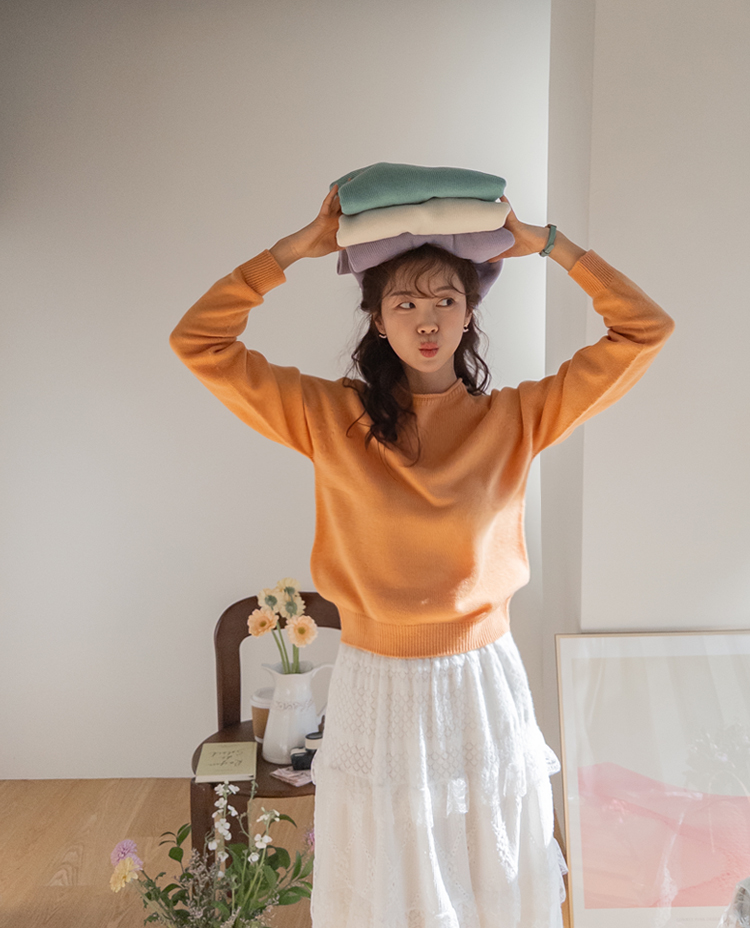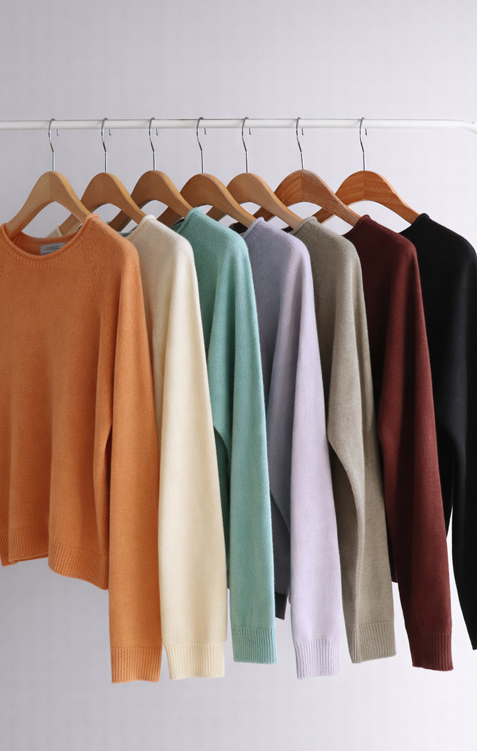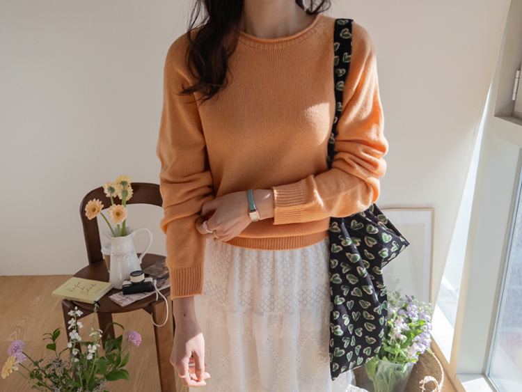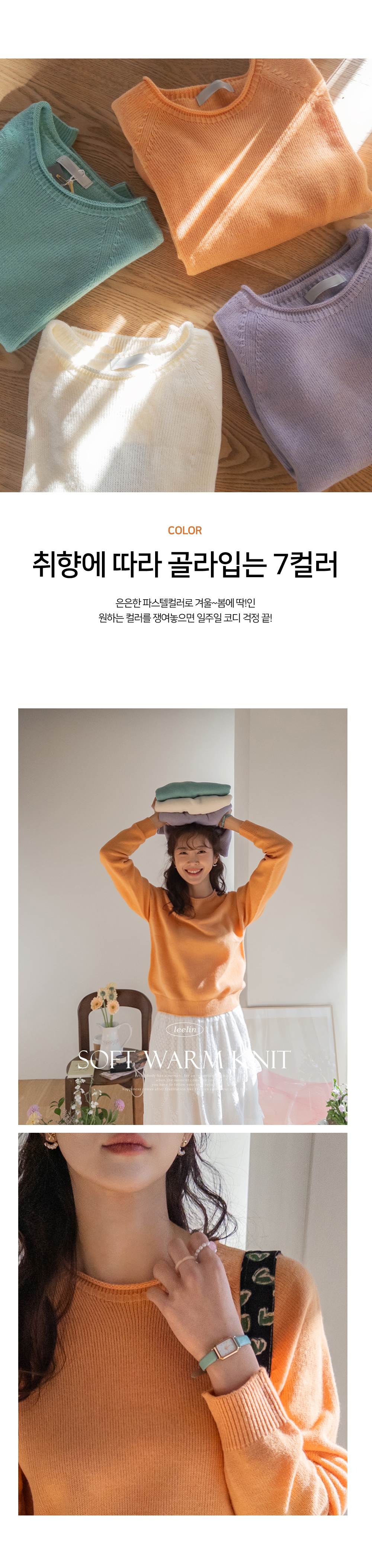 무봉제 가공법으로 편안한 움직임과 자연스러운 실루엣을 자랑하는 데일리 니트 소개드려요 ^^ 울이 블랜딩된 원단으로 가볍고~ 울의 포근함이 더해져 봄/가을 데일리 템으로 추천드려요 :) 돌돌~ 말린 끝단이 기본 템에 디테일이 더해져 더욱 소장가치 높은 아이템 ㅎㅎ 깔끔한 라운드 넥라인과 여리~여리해보이게 만들어준 롱한 소매 기장으로 날씬해 보인답니다 *.* 컬러로 취향따라 고를 수 있게~ 다양하게 준비했으니 굿초이스 해주세요 ♥
