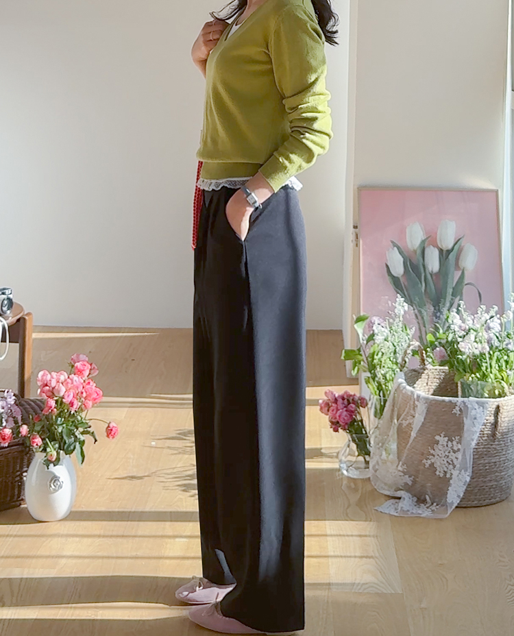 지난 겨울 많은 사랑을 받았던 '브링스 핀탁 따스미기모 치즈스판 맵시핏 팬츠' 기억하실까요~? 따뜻해질 계절에 맞춰 봄 버전도 나왔어요 ^^ 후들후들~ 가벼운 소재감과 10%의 미친듯이 쫀-득한 스판감이 트레이닝처럼 편안한 착용감을 자랑하는 팬츠랍니다 :) 투핀턱와 레직기 라인으로 레그라인을 쭉~ 뻗어 보이게 만들어줘요! 허리 안쪽에 숨겨진 히든 밴딩으로 나만 아는 편안함까지 더해주니 요건 사심 담아 꼭! 추천드려요 ㅎㅎ 봄버전 답게! 밝은 컬러들도 추가 되었으니 취향에따라 굿초이스 해주세요!