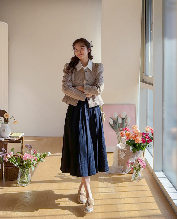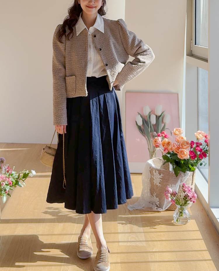 이제 곧 새로운 시즌에 접어들면서 린메이드 아이템들도 많이 기대해 주고 계실텐데요..♡ 오늘은 뜨개 느낌이 더해져 더욱 특별하고 리린무드가 물씬 느껴지는 트위드 자켓 보여드려요~ 요 아이템, 스탠다드한 실루엣으로 어느 체형에나 부담없이 편하면서도 담백하게 착용이 가능한데요~ 매트하면서도 뜨개처럼 입체감이 느껴지는 트위드 원단으로 컬러감도 매력적인데다 유연한 가디건같은 느낌으로 편하게 착용하기 좋답니다! 어깨부분에는 은근한 셔링으로 여성스러운 포인트를 더해주었고 포켓도 끝부분이 살짝 라운드쉐입으로 되어있어서 사랑스러운 포인트가 되어주어요 ㅎㅎ 자켓인듯 가디건인듯~ 편하면서도 예쁘게 착용하기 좋은 아이라 하나 소장하셔서 다가오는 시즌까지 예쁘게 즐겨주세요!