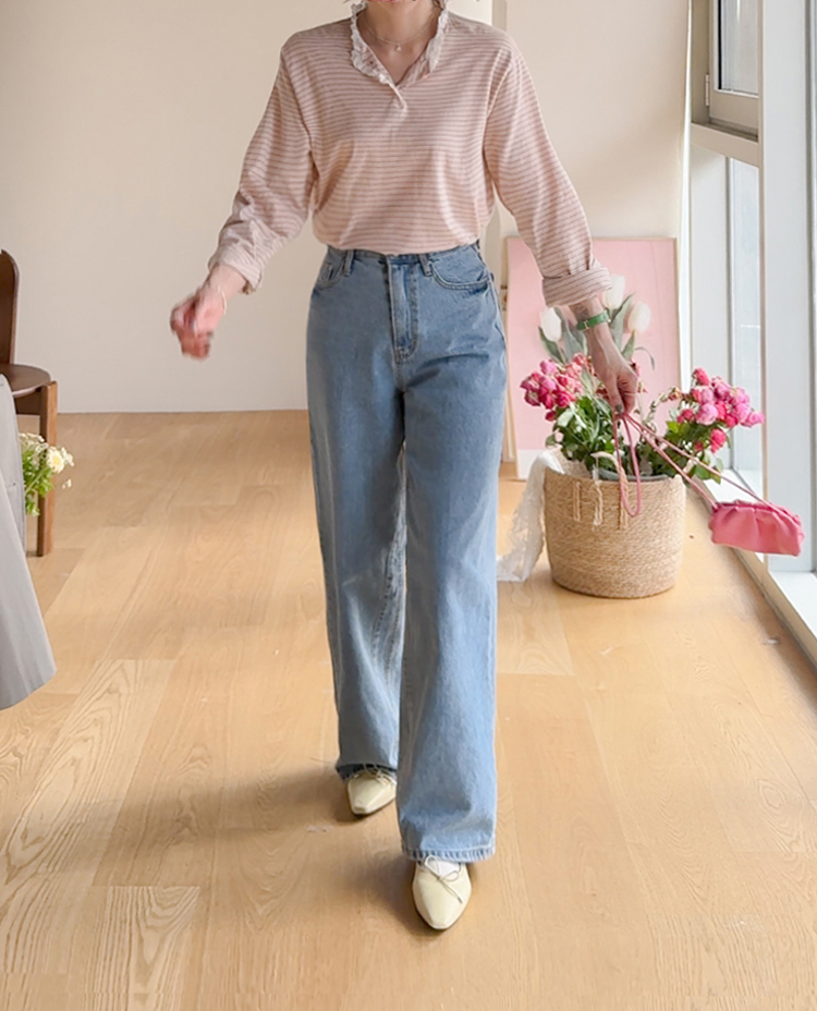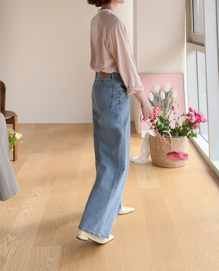 베이직한 데님 팬츠처럼 보이지만 은근한 디테일이 숨어있어서 스타일리쉬하게 즐기기 좋은 LIN.MADE 데님 팬츠 보여드릴게요~!! 봄이 성큼 다가온 만큼 산뜻한 컬러감으로 다양한 상의와 함께 매치하기도 좋구요 요 팬츠의 포인트! 바로 절개인데요~ 절개가 안쪽 라인에 들어가 있어서 다리라인도 얄쌍해 보이는건 물론이구요 활동시 살짝 보이는 절개라인덕에 디테일 포인트가 되어주어요:) 와이드한 실루엣으로 체형을 커버해주는건 물론이구요 편하게 착용까지 가능해서 하나 소장하시면 매일매일 찾게 되실거에요 ㅎㅎ 탄탄한 난스판 원단으로 늘어짐 없이 착용 가능해서 매년마다 꺼내어 입어도 처음과 같은 상태 그대로 즐기기 좋기까지! 베이직한 데님 팬츠인데 은근한 포인트가 더해져 다양한 스타일링에 활용하기 좋은 아이템이니 소장하셔서 간절기 내내 즐겨주세요~