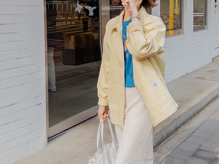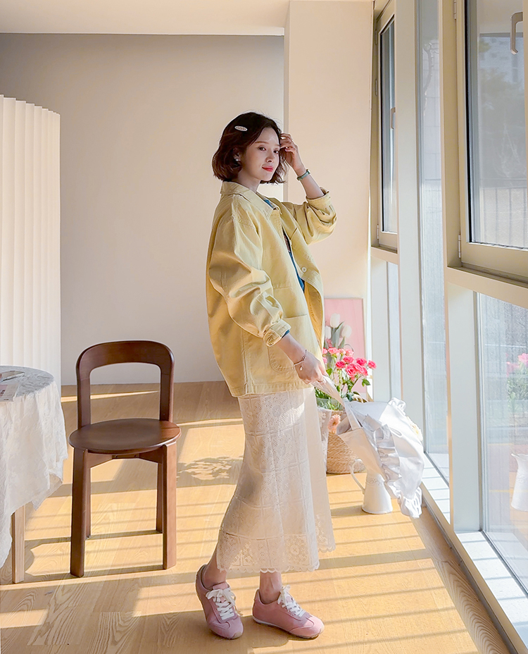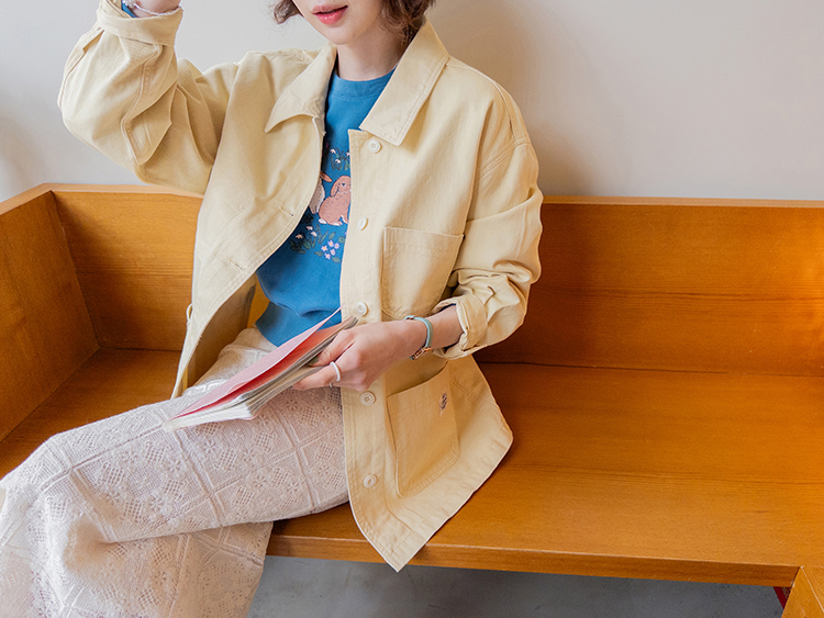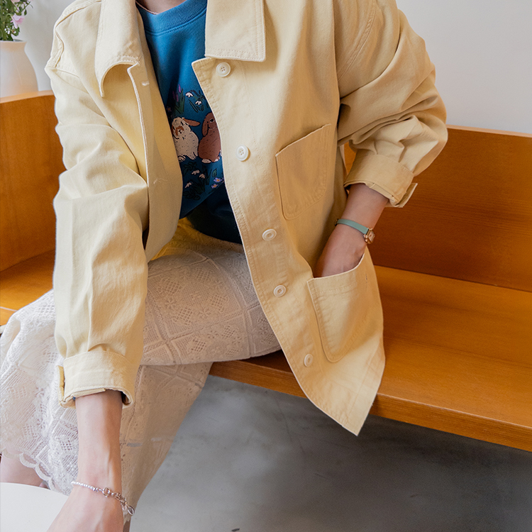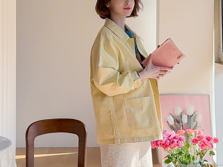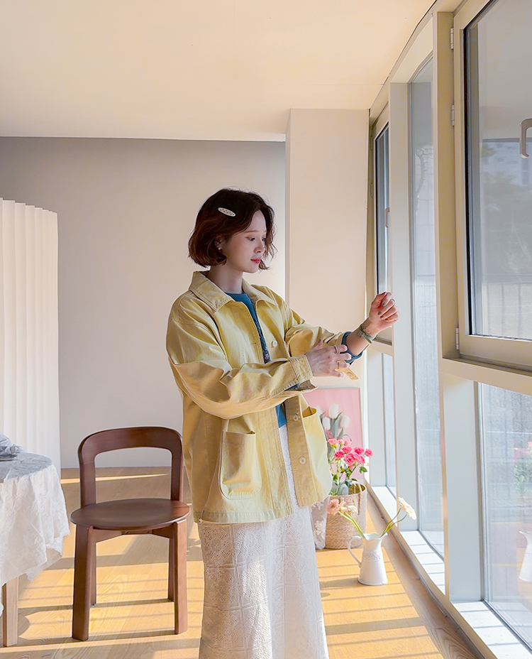 내추럴하게 떨어지는 루즈 핏으로 가볍게 툭- 걸치기 좋은 자켓이에요 :) 앞면의 큼직한 아웃포켓과 패치 디테일이 밋밋하지 않게 포인트가 되어주구요. 힙을 충분히 덮는 기장이라 체형 커버에도 좋고 안정감 있게 착용돼요. 단추를 모두 잠가 셔츠처럼 연출해도 예쁘고, 오픈해서 아우터처럼 활용해도 멋스러운 데일리 자켓이에요 ♡