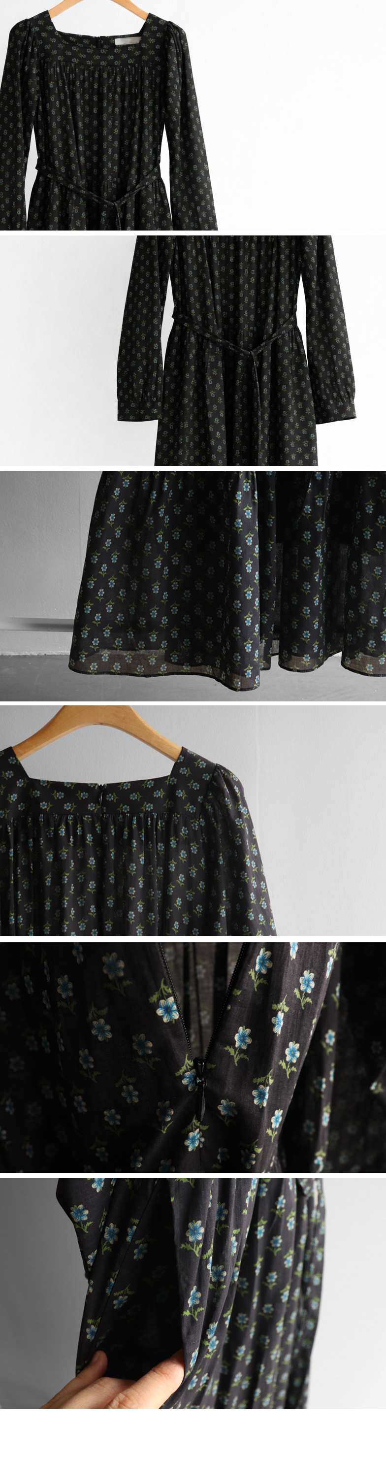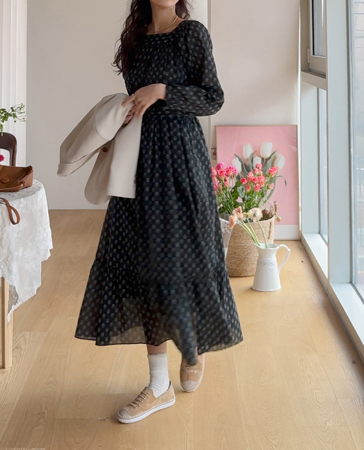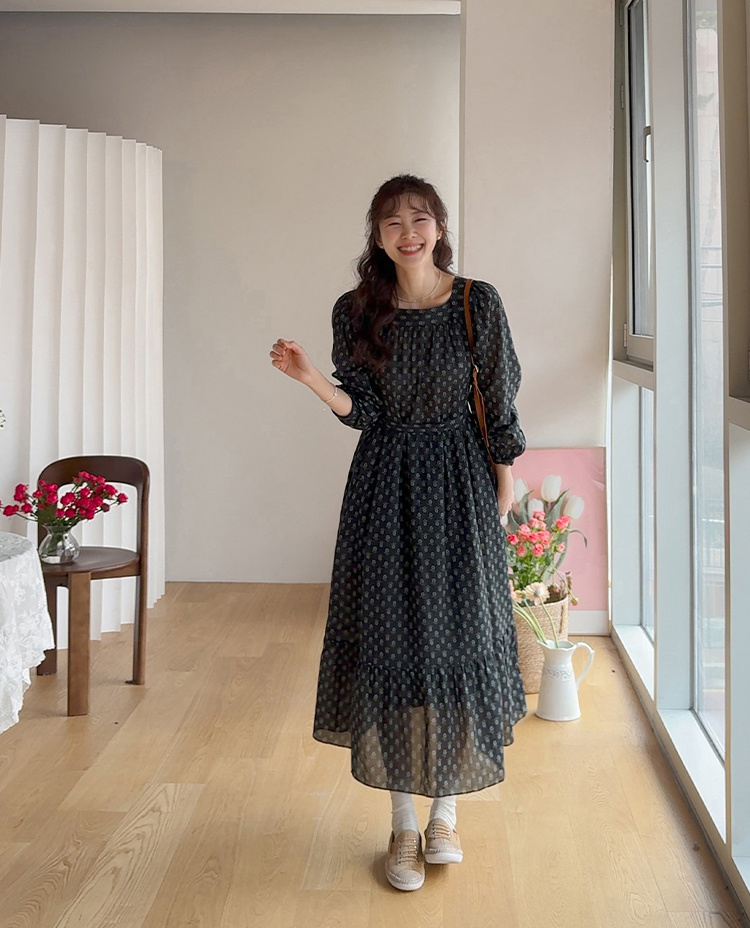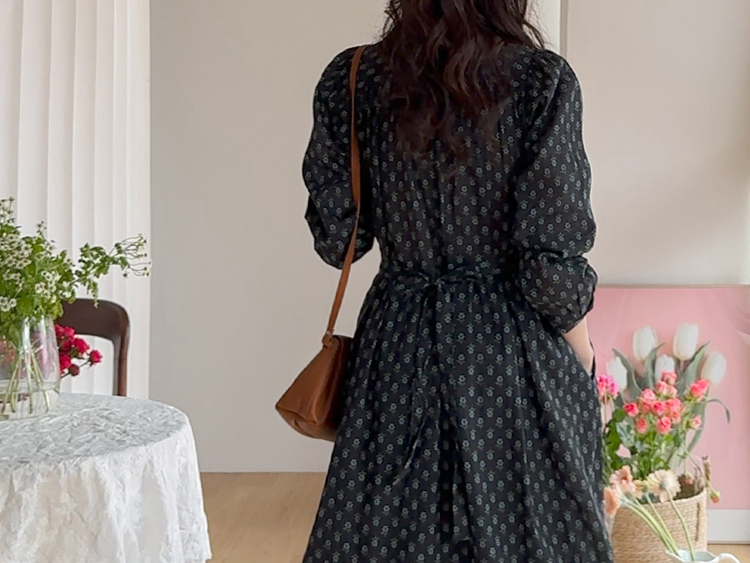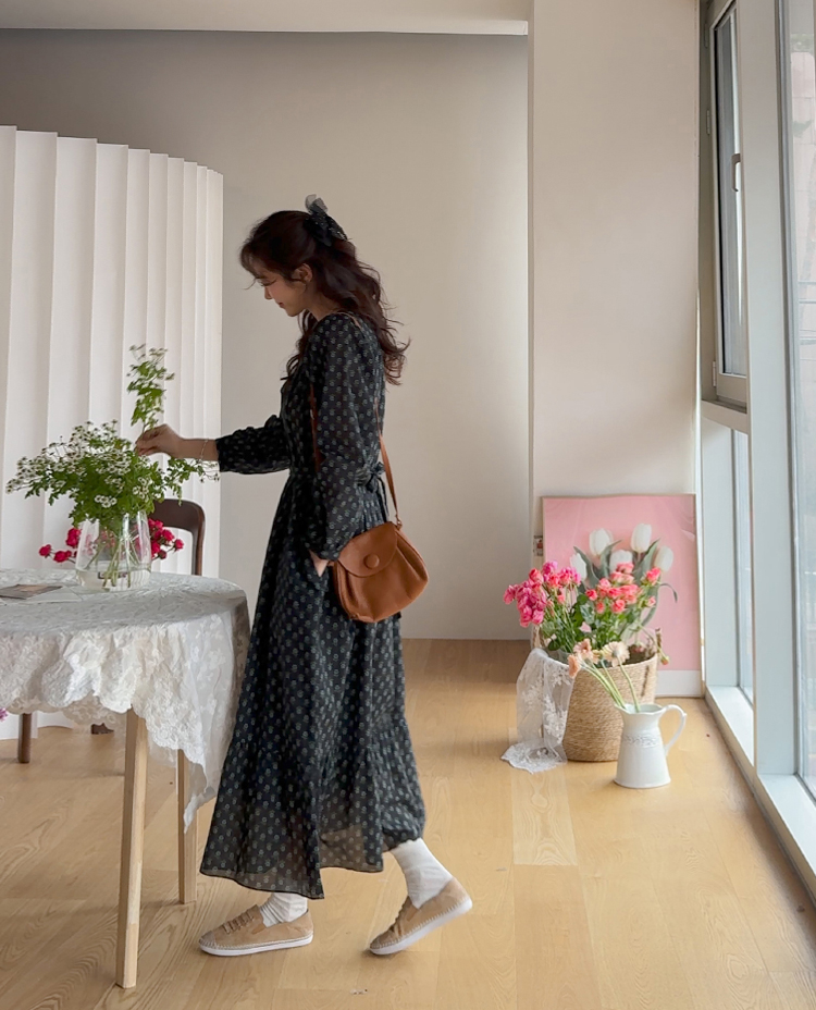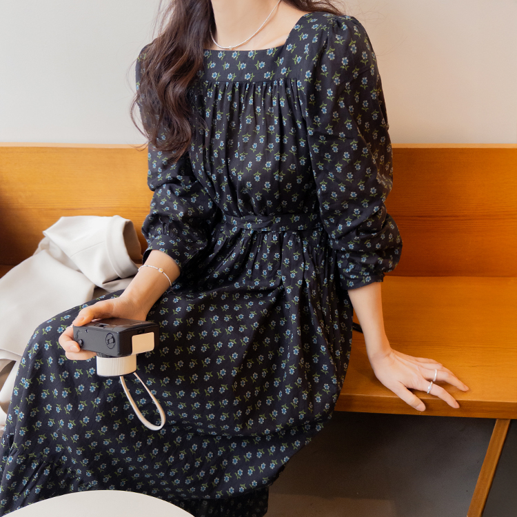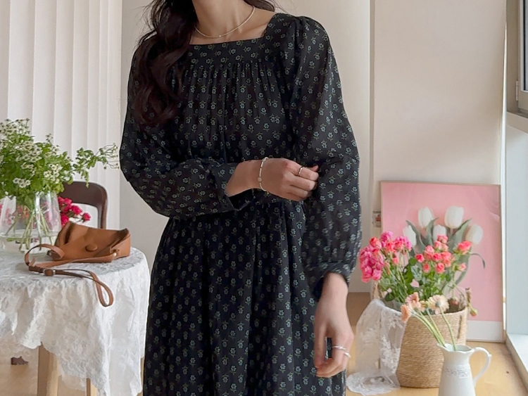 잔꽃 패턴이 전체적으로 들어가 과하지 않으면서도 러블리한 무드가 돋보이는 원피스예요. 넥라인에 자연스럽게 잡힌 셔링이 상체 라인을 부드럽게 표현해주고 소매 볼륨감으로 팔 라인이 여리여리해 보여요. 허리 스트랩으로 핏 조절이 가능해 체형에 맞게 연출할 수 있고, 단독으로 입어도 충분히 포인트 되는 아이템이에요.