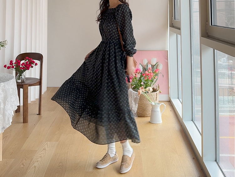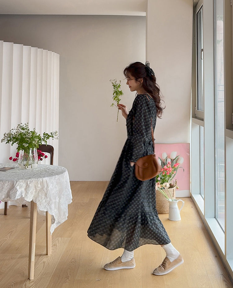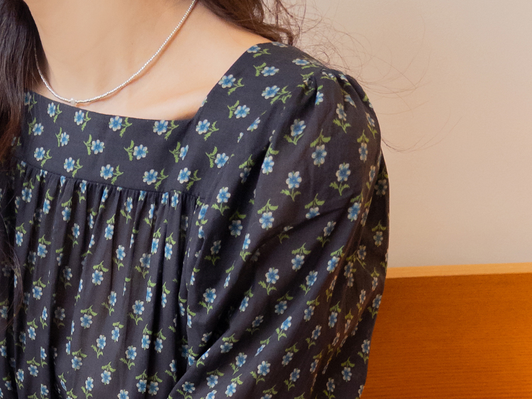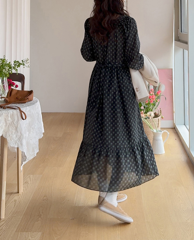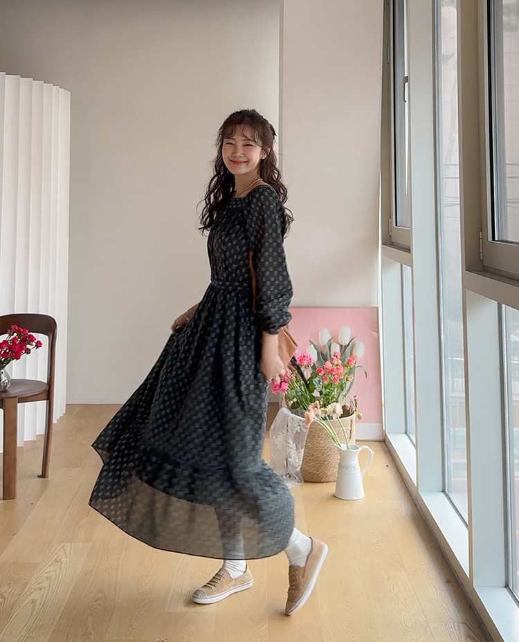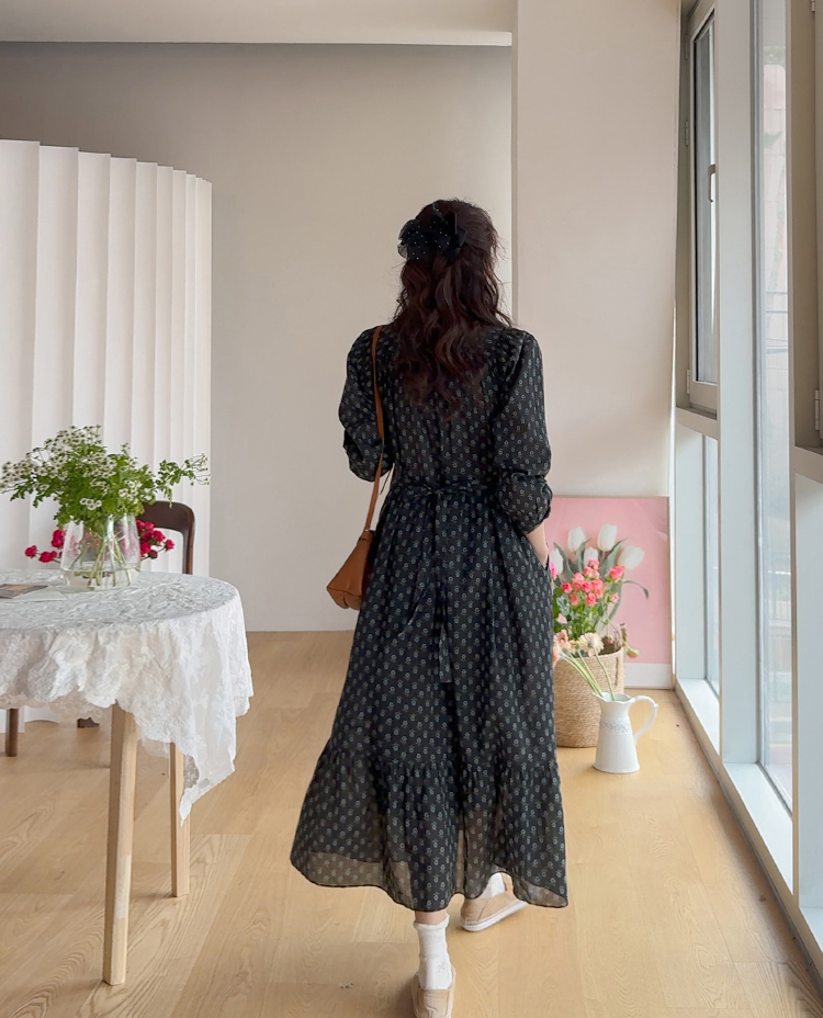 잔꽃 패턴이 전체적으로 들어가 과하지 않으면서도 러블리한 무드가 돋보이는 원피스예요. 넥라인에 자연스럽게 잡힌 셔링이 상체 라인을 부드럽게 표현해주고 소매 볼륨감으로 팔 라인이 여리여리해 보여요. 허리 스트랩으로 핏 조절이 가능해 체형에 맞게 연출할 수 있고, 단독으로 입어도 충분히 포인트 되는 아이템이에요.
