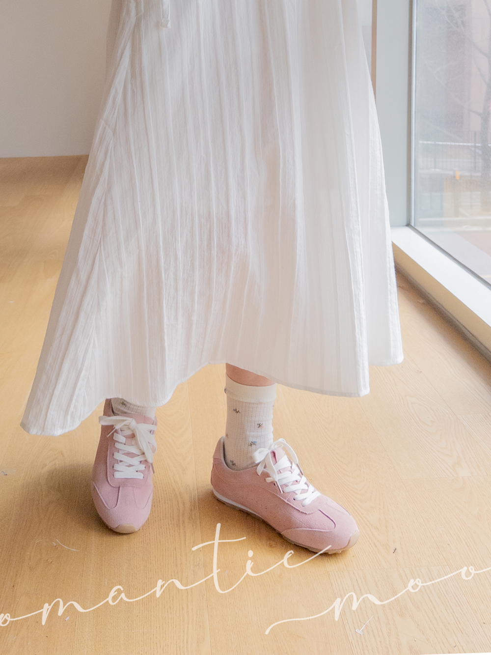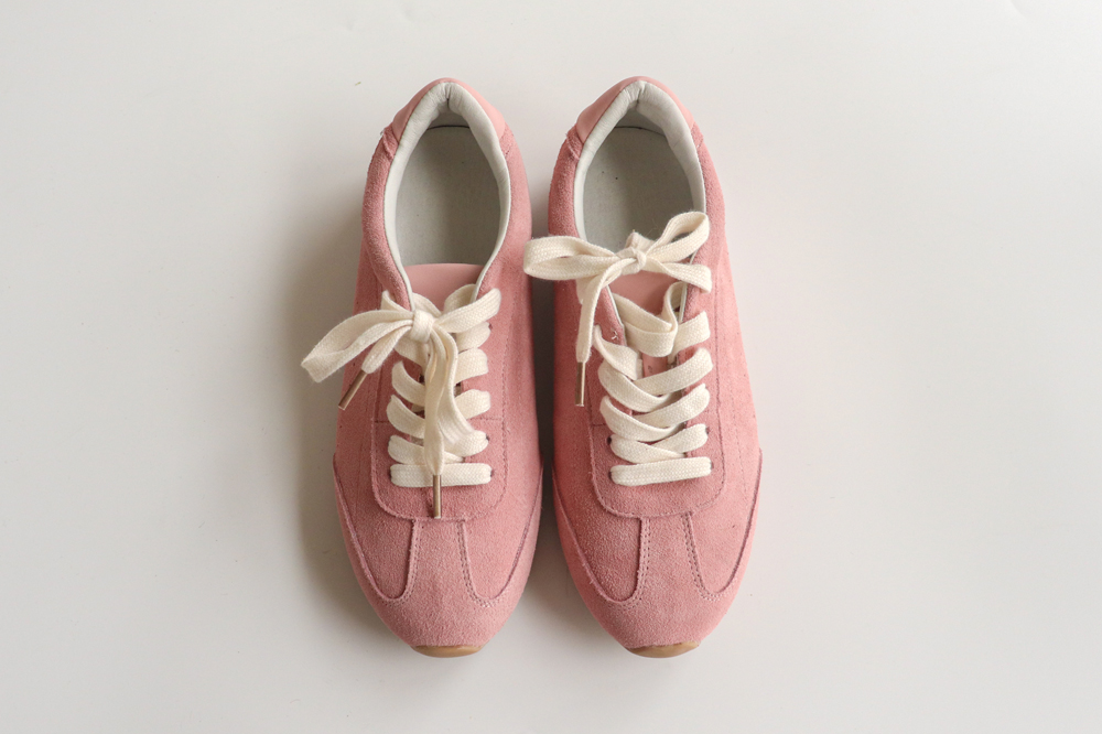 사랑스러운 핑크 컬러가 매력적인 스니커즈 보여드릴게요♡ 은은한 크림 컬러의 슈레이스가 더해져 러블리한 감성이 한층 UP! 봄 느낌이 가~득 느껴져요^.^ 바닥에는 별 패턴 아웃솔로 보이지 않는 곳까지 귀여운 포인트를 더해주었답니다★ 가벼운 착화감으로 오래 신어도 부담 없고, 데님은 물론 스커트, 원피스와도 잘 어울려 데일리 슈즈로 활용하시기 좋아요 :) 심플한 룩에 요 아이 하나만 더해주셔도 화사한 감성이 느껴지는 코디 완성-♡