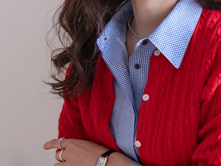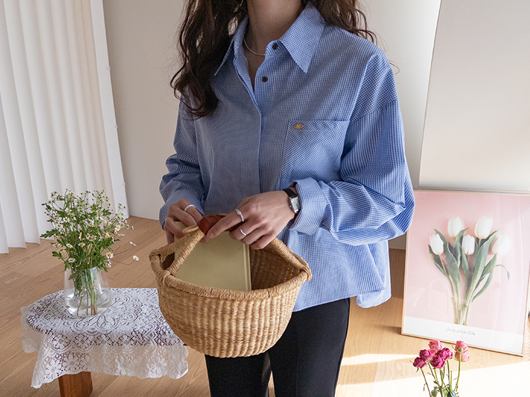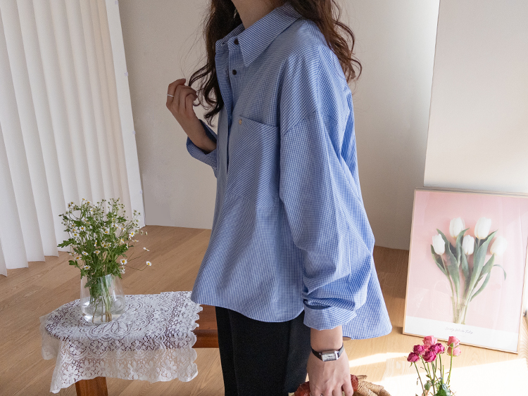 잔잔한 체크 패턴이 매력적인 코튼 체크 셔츠 소개드려요 ^^ 면 100% 소재로 제작되어 피부에 부담 없이 편안하게 착용 가능하고요, 가볍게 툭 걸쳐도 내추럴한 무드가 살아나는 아이템이에요. 앞 여밈은 히든 버튼 디자인으로 단추가 드러나지 않아 전체적으로 더 깔끔하고 단정한 실루엣을 연출해줘요. 가슴 한쪽에는 아웃포켓 디테일이 더해져 캐주얼한 포인트를 살려주며 데님, 슬랙스, 스커트 어디에나 쉽게 매치 가능해요. 소매 밑단 커프스가 넓게 디자인되어 살짝 롤업해주기만 해도 멋스럽게 연출되는 데일리 셔츠로 추천드릴게요 ♥