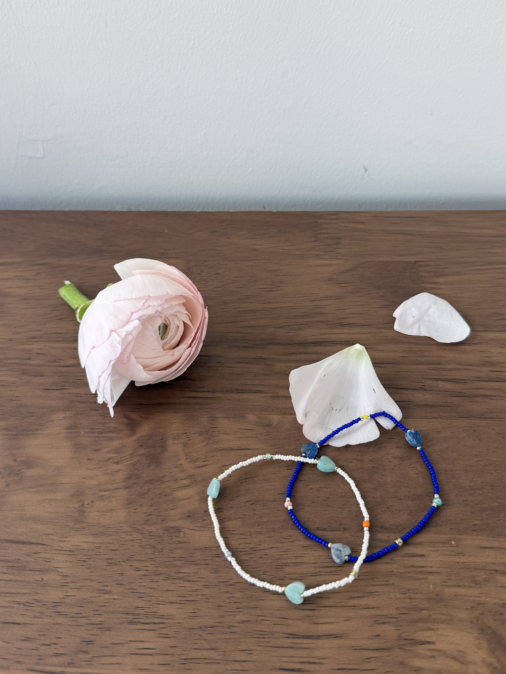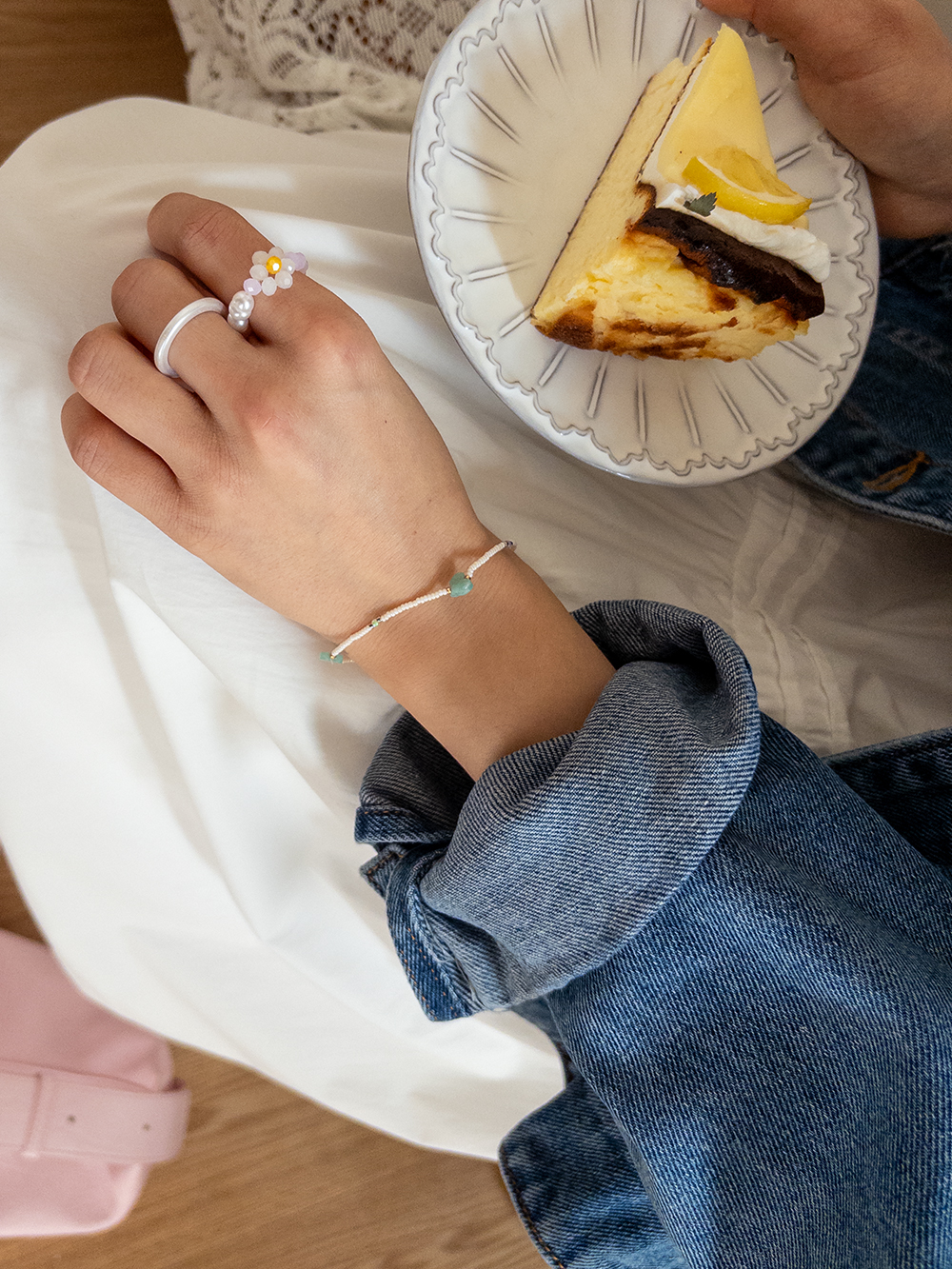 심플한 룩에 가볍게 포인트 주기 좋은 비즈 팔찌 소개드려요 :) 맑은 아크릴 비즈에 은은한 컬러 원석을 더해 부담 없이 착용하면서도 확실한 포인트가 되어줘요. 슬림한 디자인으로 단독 착용은 물론, 다른 팔찌와 레이어드해도 자연스럽게 어우러져요. 데일리로 활용하기 좋은 산뜻한 무드의 아이템으로 추천드려요 ♥
