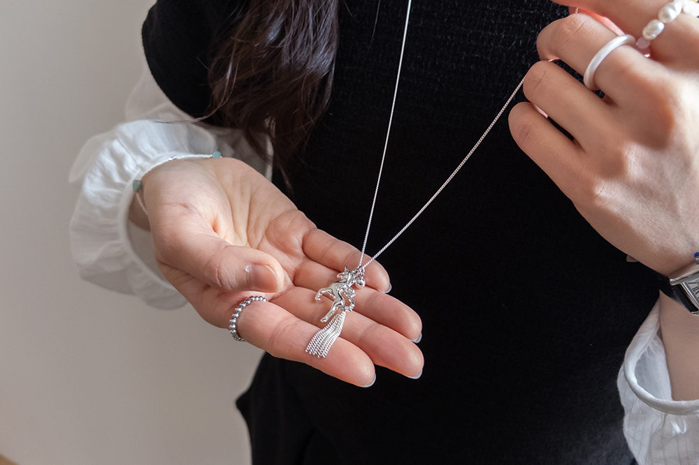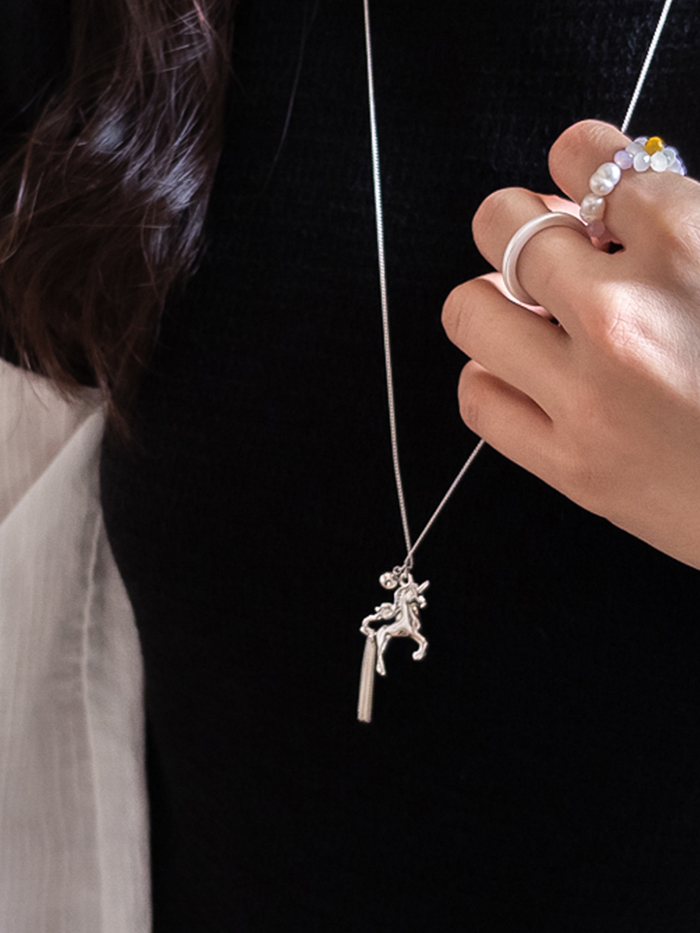 가볍게 포인트 주기 좋은 체인 목걸이 소개드려요 :) 슬림한 체인에 말 모양 펜던트를 더해 유니크하면서도 은은한 포인트가 되어줘요. 부담 없이 착용하기 좋은 디자인으로 단독은 물론 다른 목걸이와 레이어드하기에도 좋아요. 티셔츠부터 셔츠, 원피스까지 다양한 룩에 매치하기 좋은 데일리 아이템으로 추천드려요 ♥