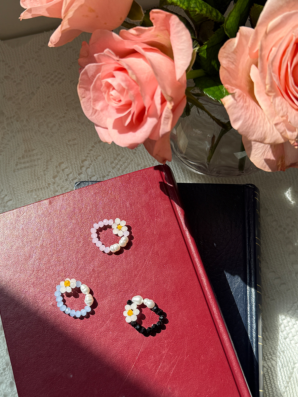 꽃 중심에는 컬러 비즈로 포인트를 주고
