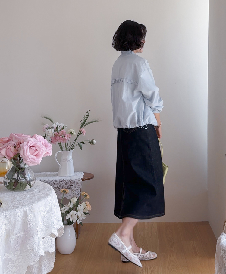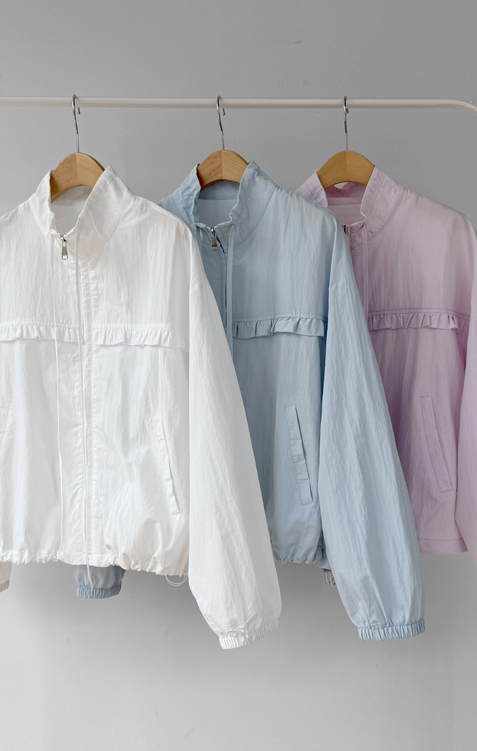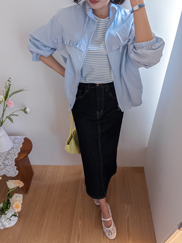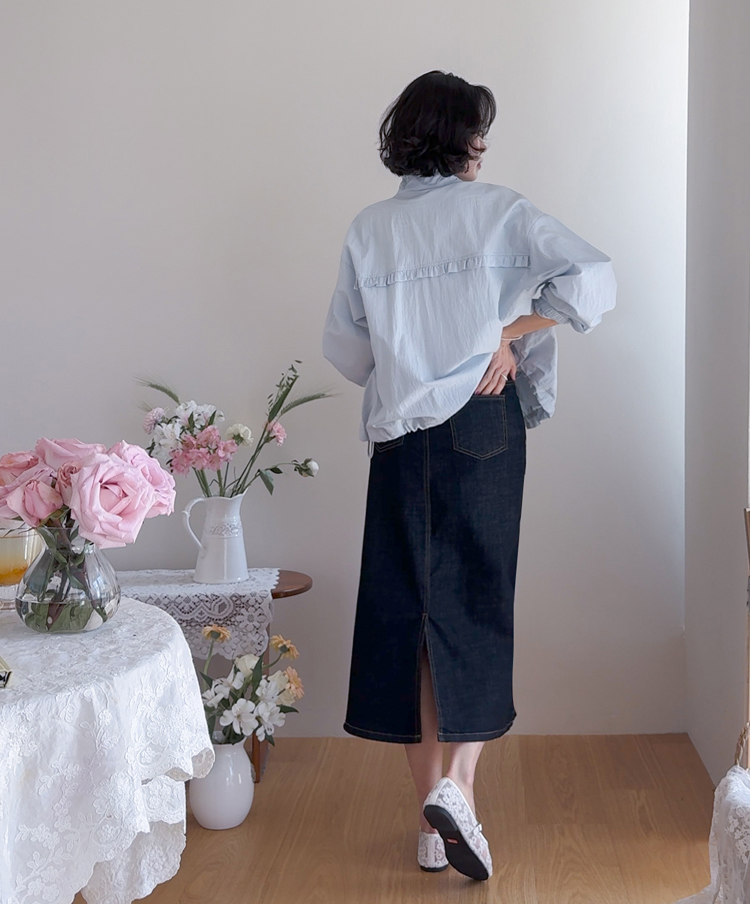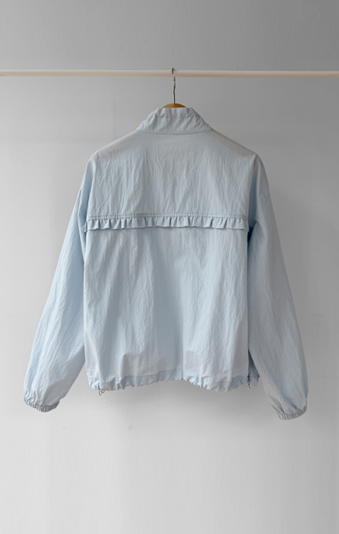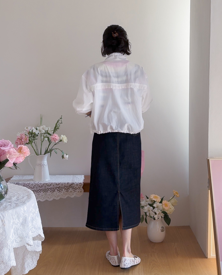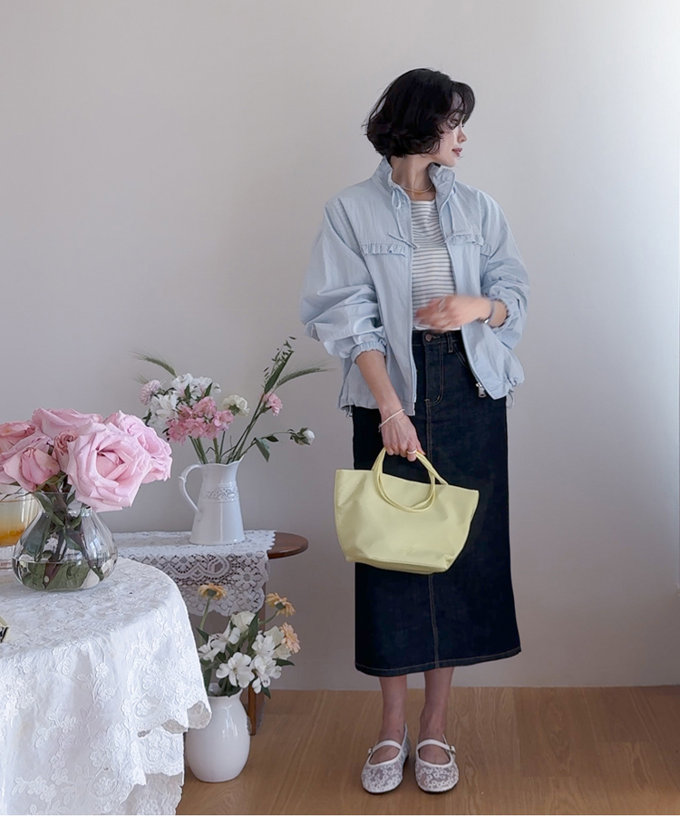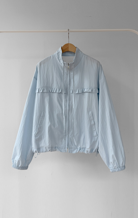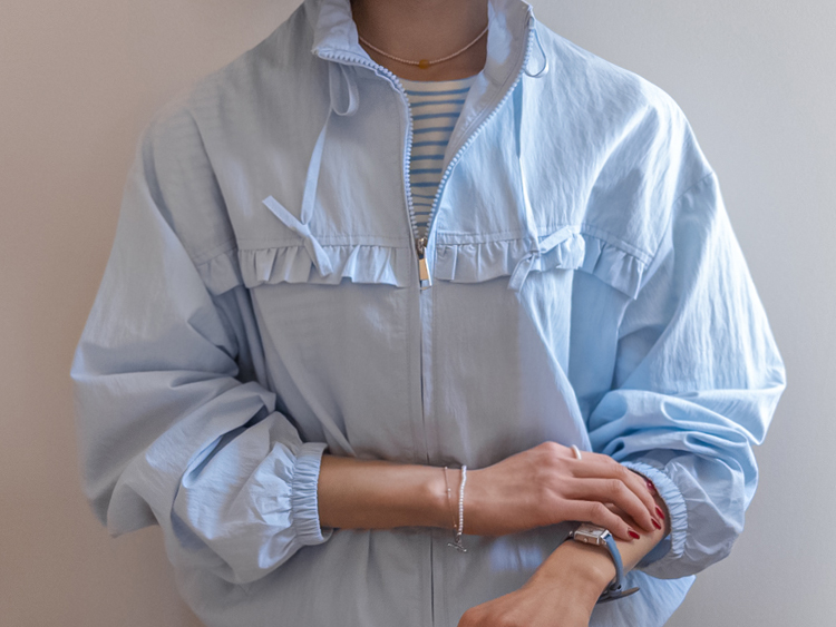 가볍게 걸치기 좋은 하이넥 점퍼 소개드려요 ^^ 전체적으로 코튼 혼방 소재로 부드러우면서도 가볍게 떨어지는 텍스처라 부담 없이 데일리로 입기 좋은 아이템이에요. 너무 힘있는 원단이 아니라 자연스럽게 유연하게 떨어지면서도 형태는 깔끔하게 잡아주는 느낌이고요, 넥라인은 하이넥 디자인에 스트링 디테일이 더해져 올려서 연출하면 단정하게, 풀어서 입으면 내추럴한 무드로 연출할 수 있어요. 가슴 라인에는 잔잔한 셔링 디테일이 들어가 은은하게 포인트가 되어주며 앞, 뒤 모두 디테일이 살아 있어요. 소매와 밑단 밴딩으로 입었을 때 자연스럽게 볼륨이 잡히면서 편안하고 안정감 있는 핏을 만들어줍니다. 데일리로 가볍게 걸치기 좋은 활용도 높은 아우터로 추천드릴게요 ♥